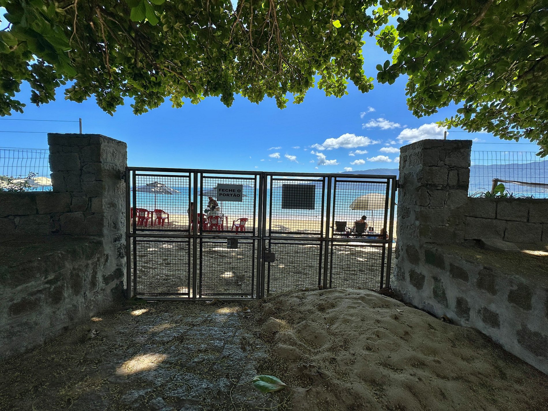 - Seguro e cercado, com portão de entrada de veículos e portão de acesso à praia;