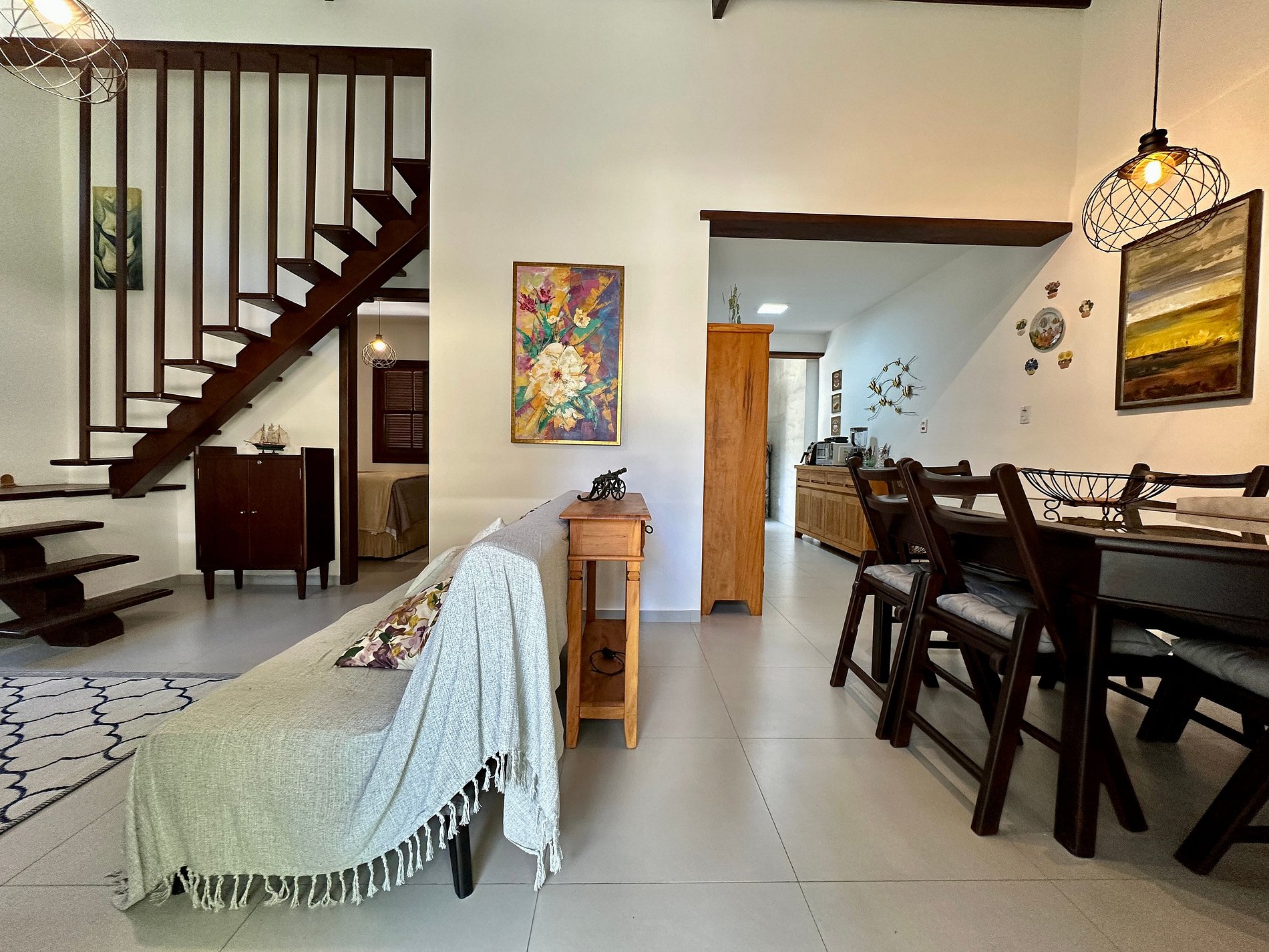 - Salas de estar, TV e jantar integradas, contam com um lavabo;