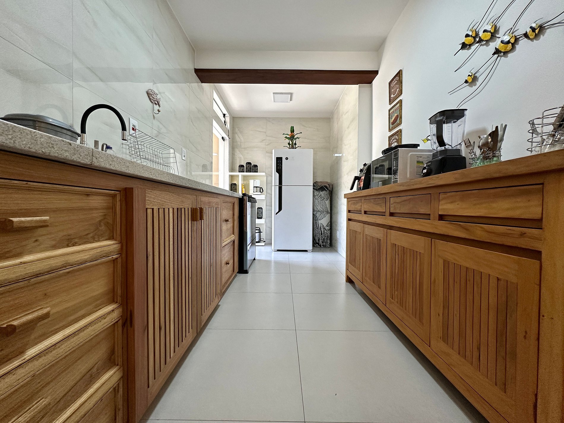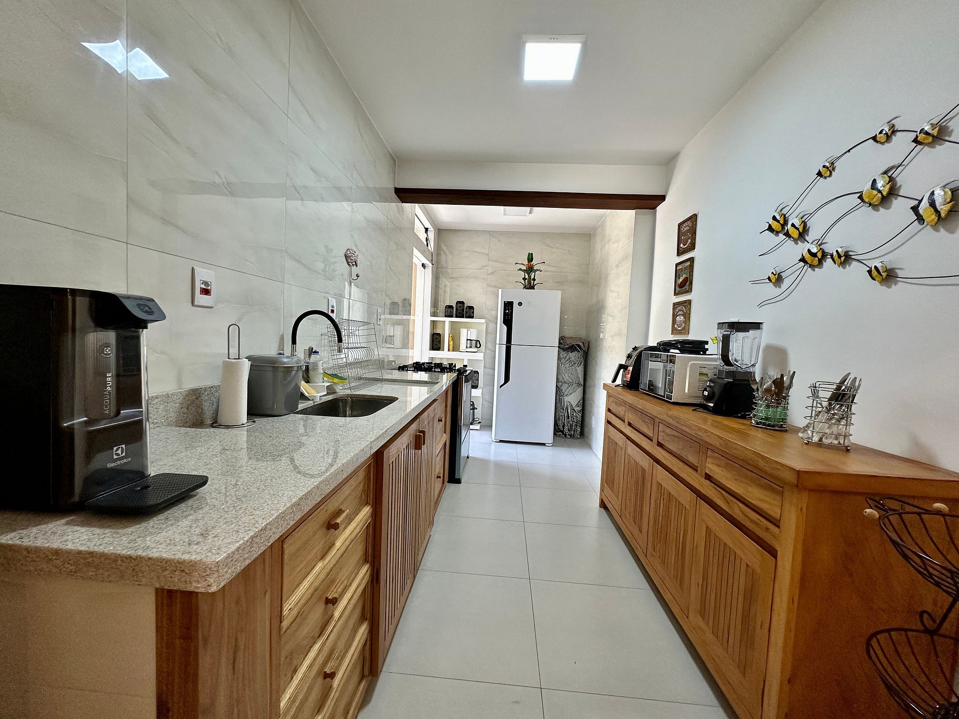 - Cozinha compacta, mas muito bem equipada, com todo os utensílios necessários para uma estadia perfeita;