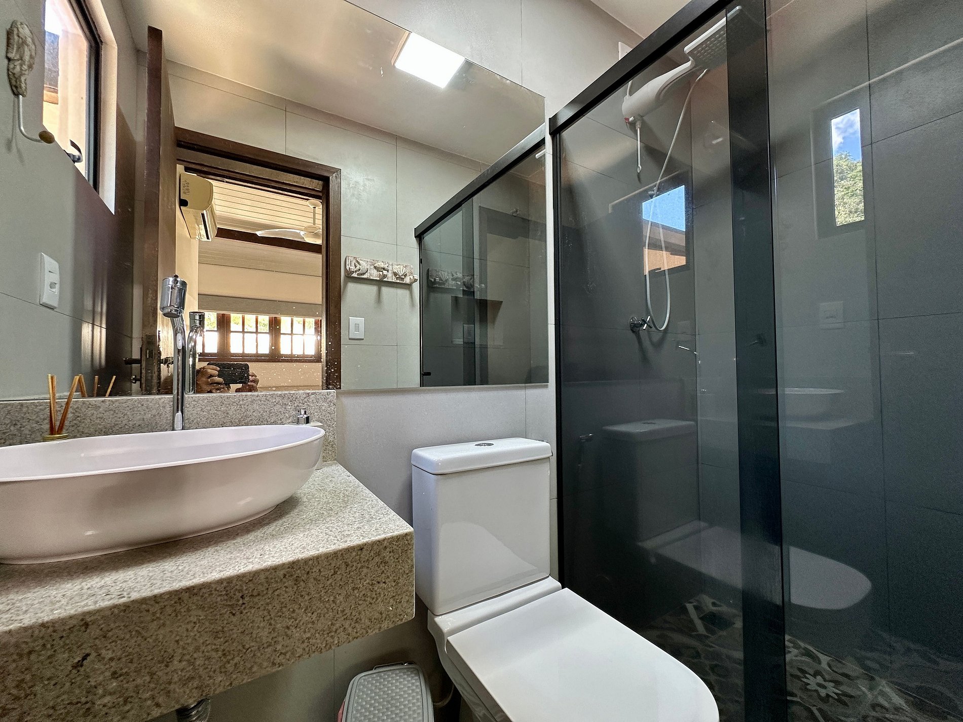 casa exatamente como anunciado. Estava tudo limpo e arrumado. tivemos um problema com o chuveiro no dia em que chegamos, um curto circuito que desligou a casa toda, o zelador não estava mas fomos prontamente atendidos por uma moça que havia acabado de chegar e já chamou o eletricista. Fora esse imprevisto, nada a reclamar. o ar funciona muito bem e a localização é maravilhosa. Fomos em família com 2 crianças e nos ajudou muito. o condomínio fica ao lado de um quiosque ótimo também, nos serviram muito bem.
