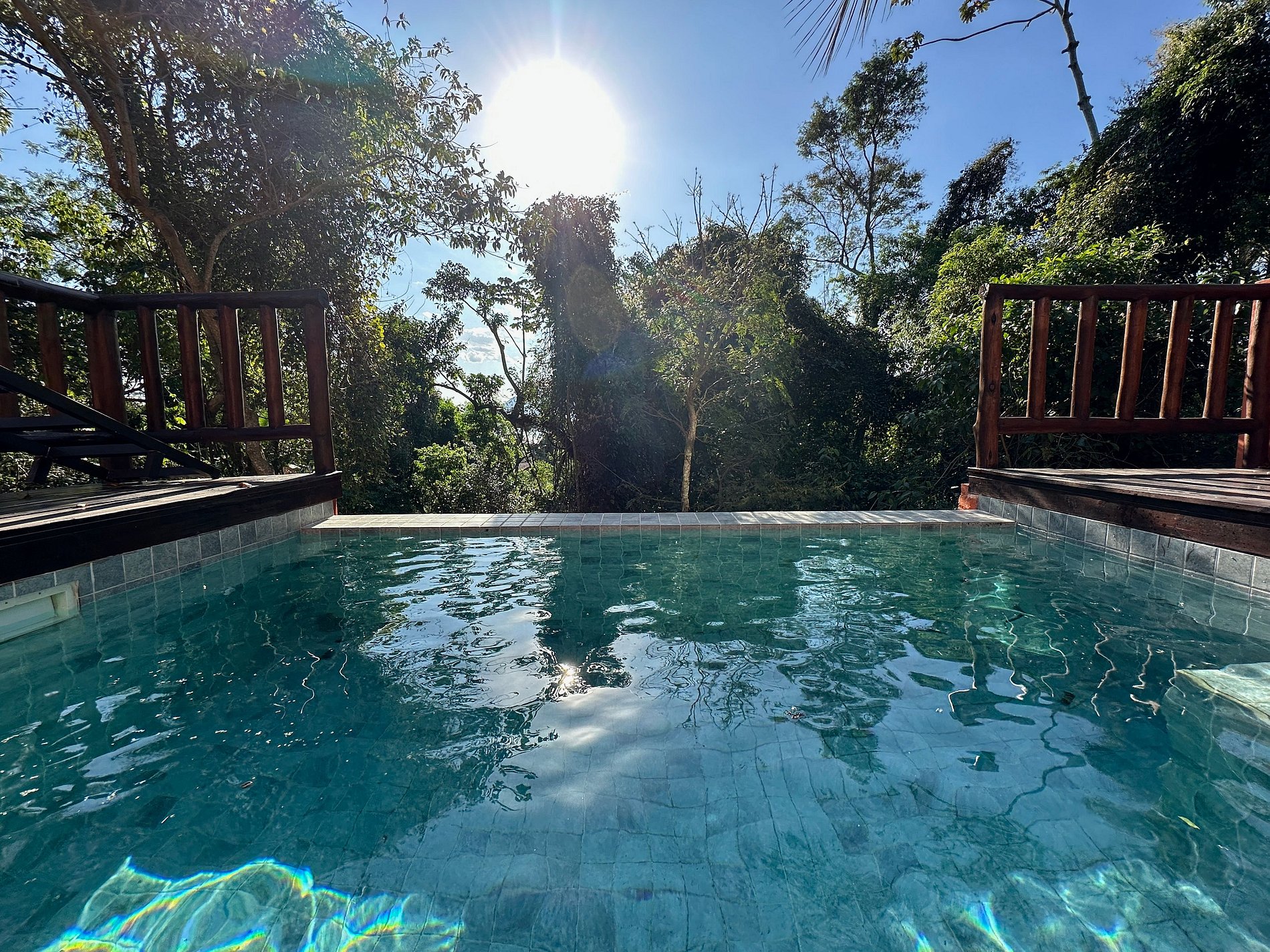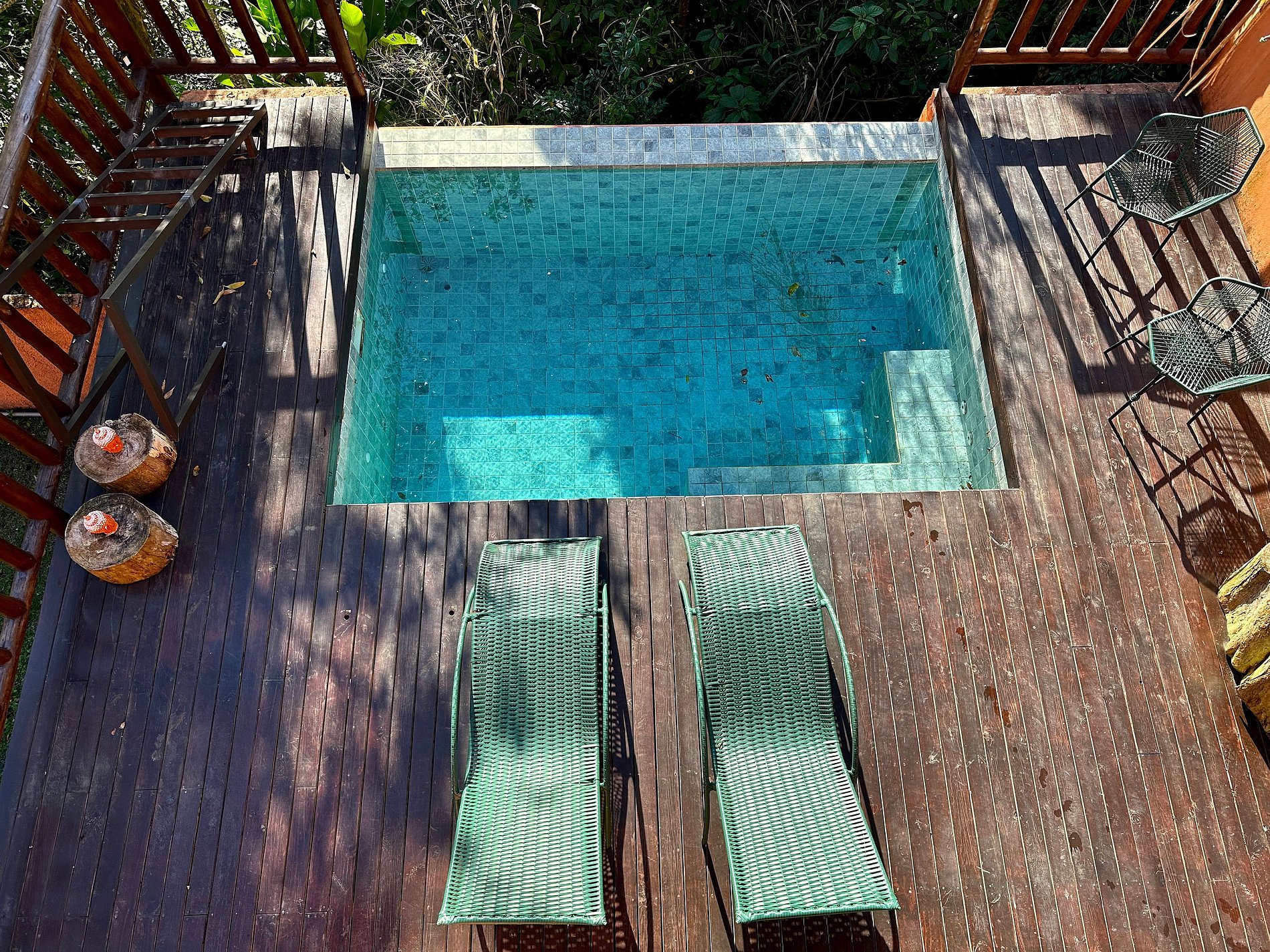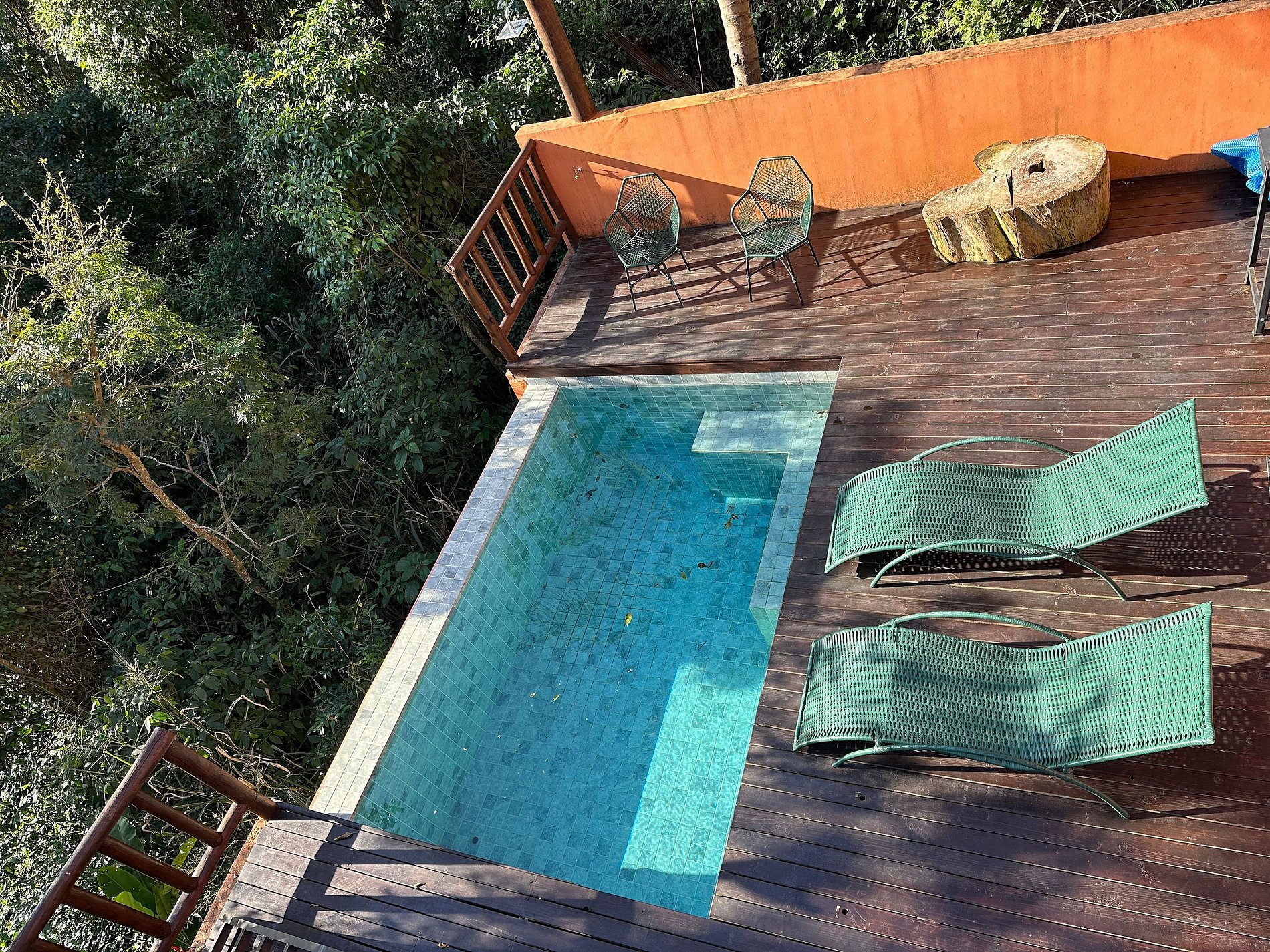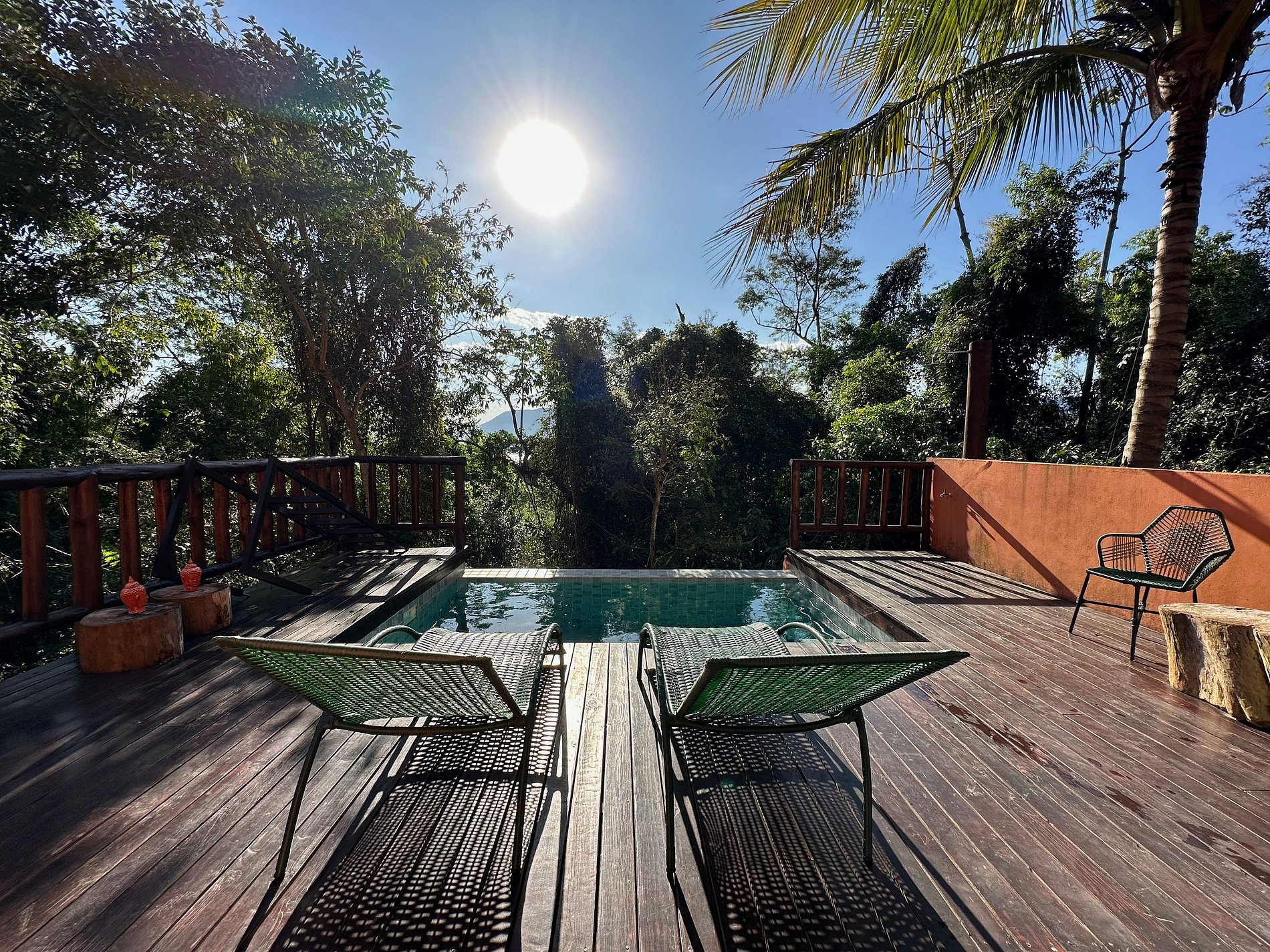 - Área externa sensacional, cercada pela mata, vista para a montanha, uma pequena piscina estilo balinesa, com móveis externos, churrasqueira portátil, deck de madeira, espreguiçadeiras, cadeiras e mesinha de apoio. Perfeito para reunir a todos, curtir o espaço e assistir ao pôr do sol;