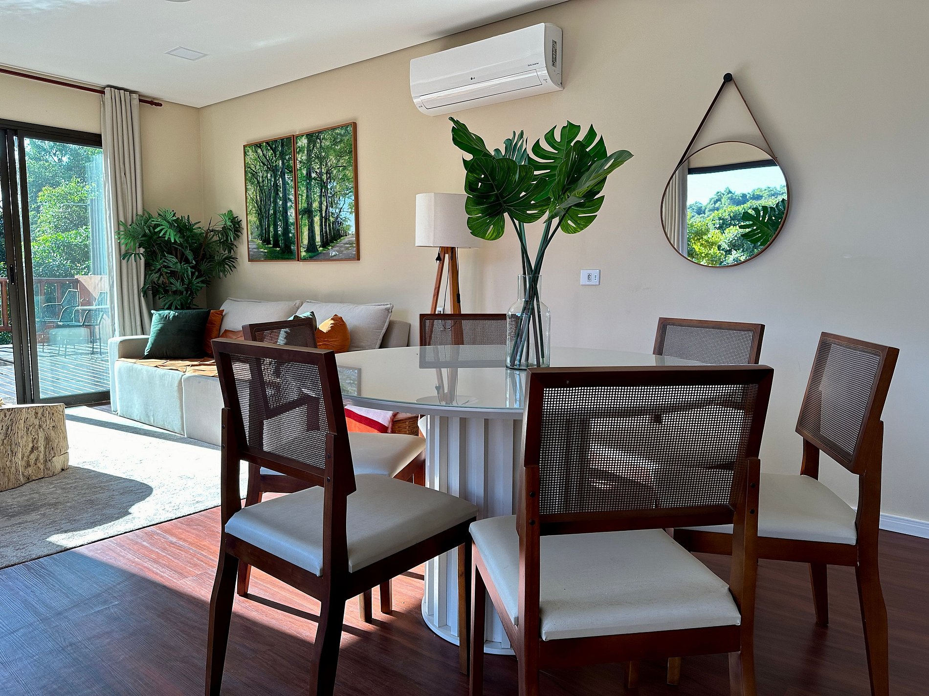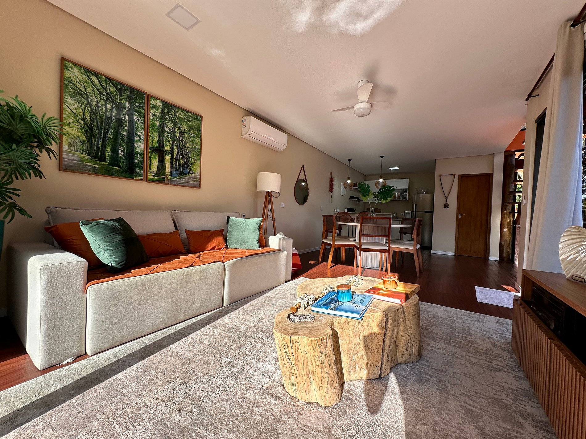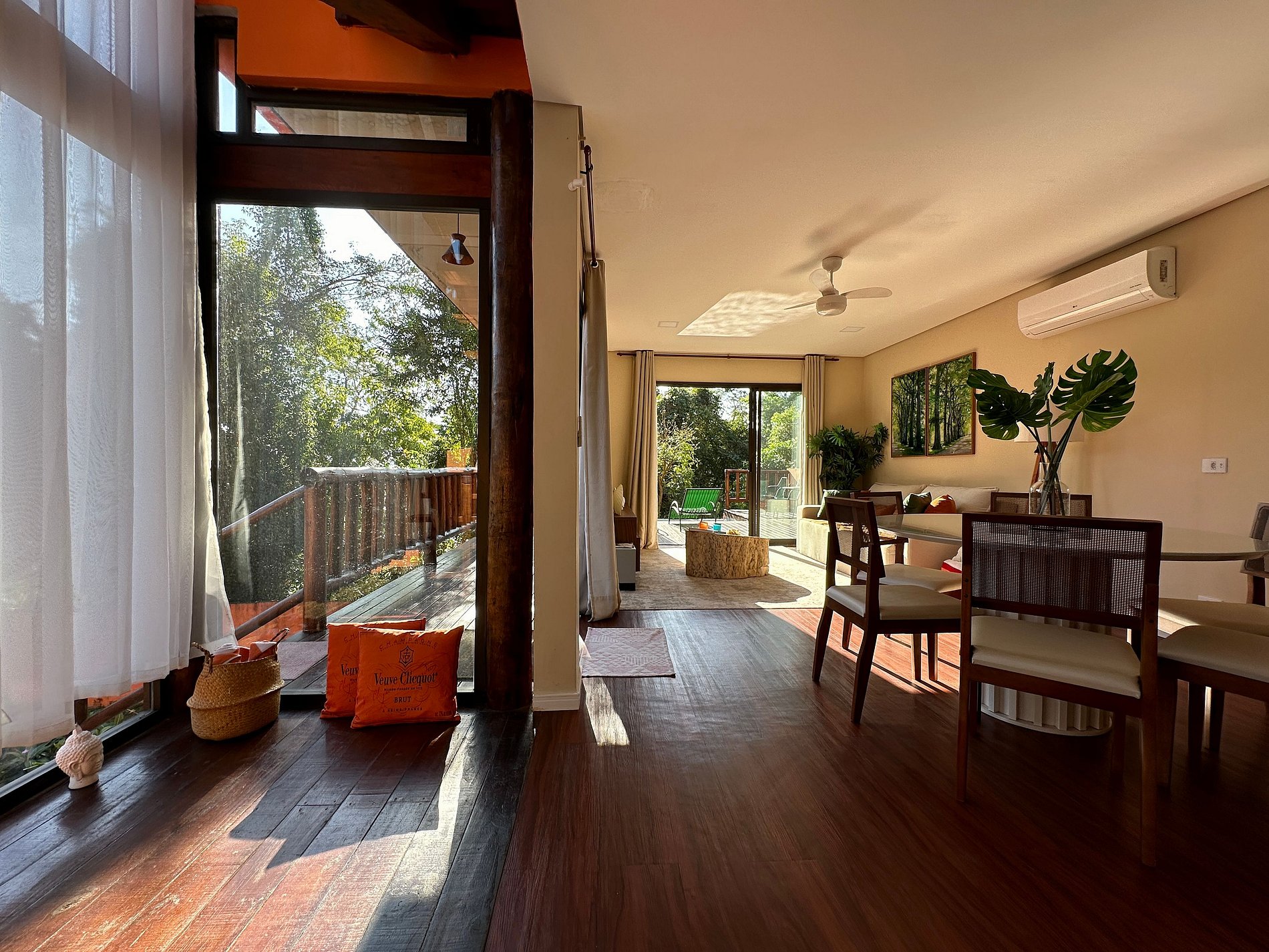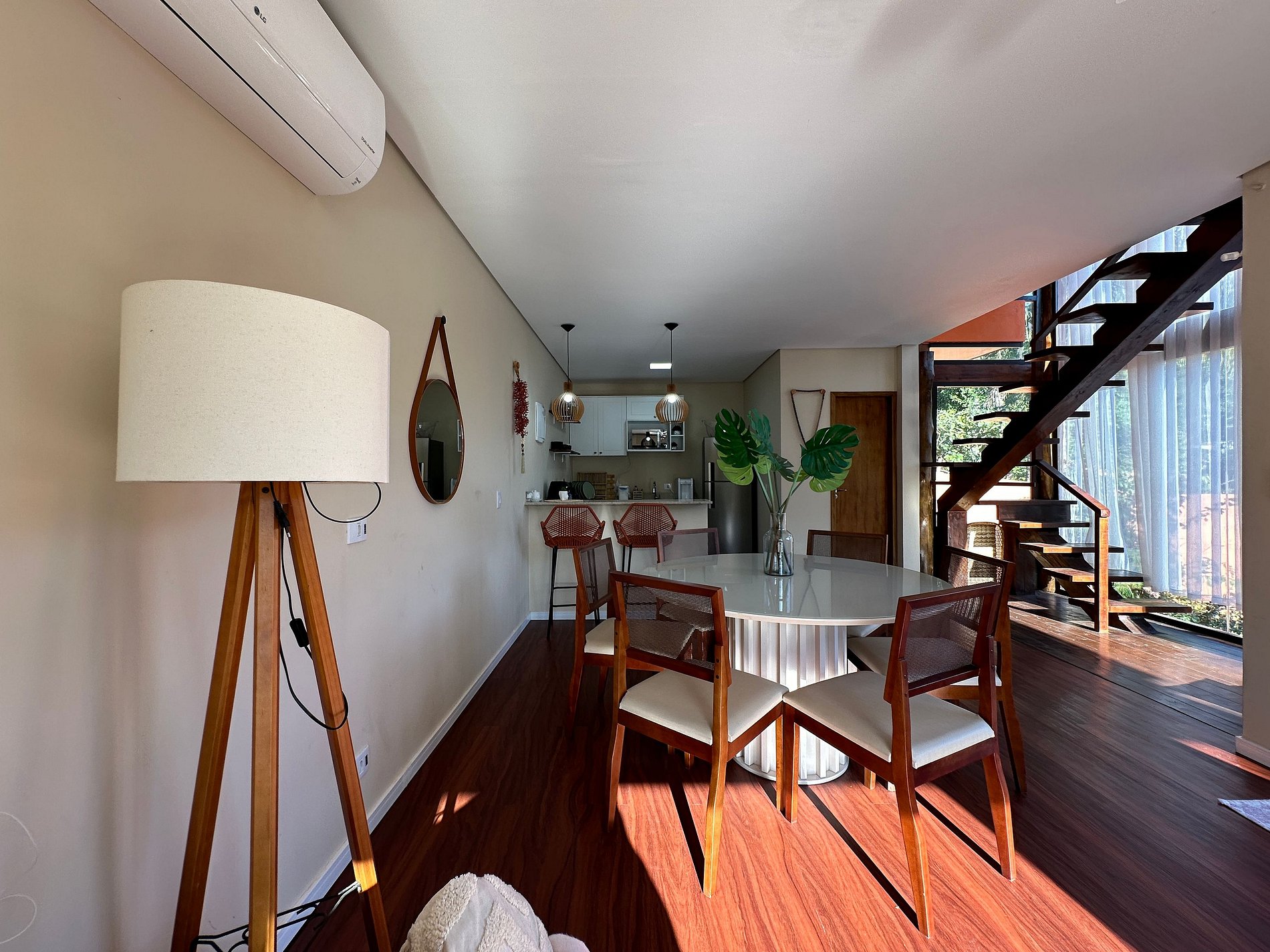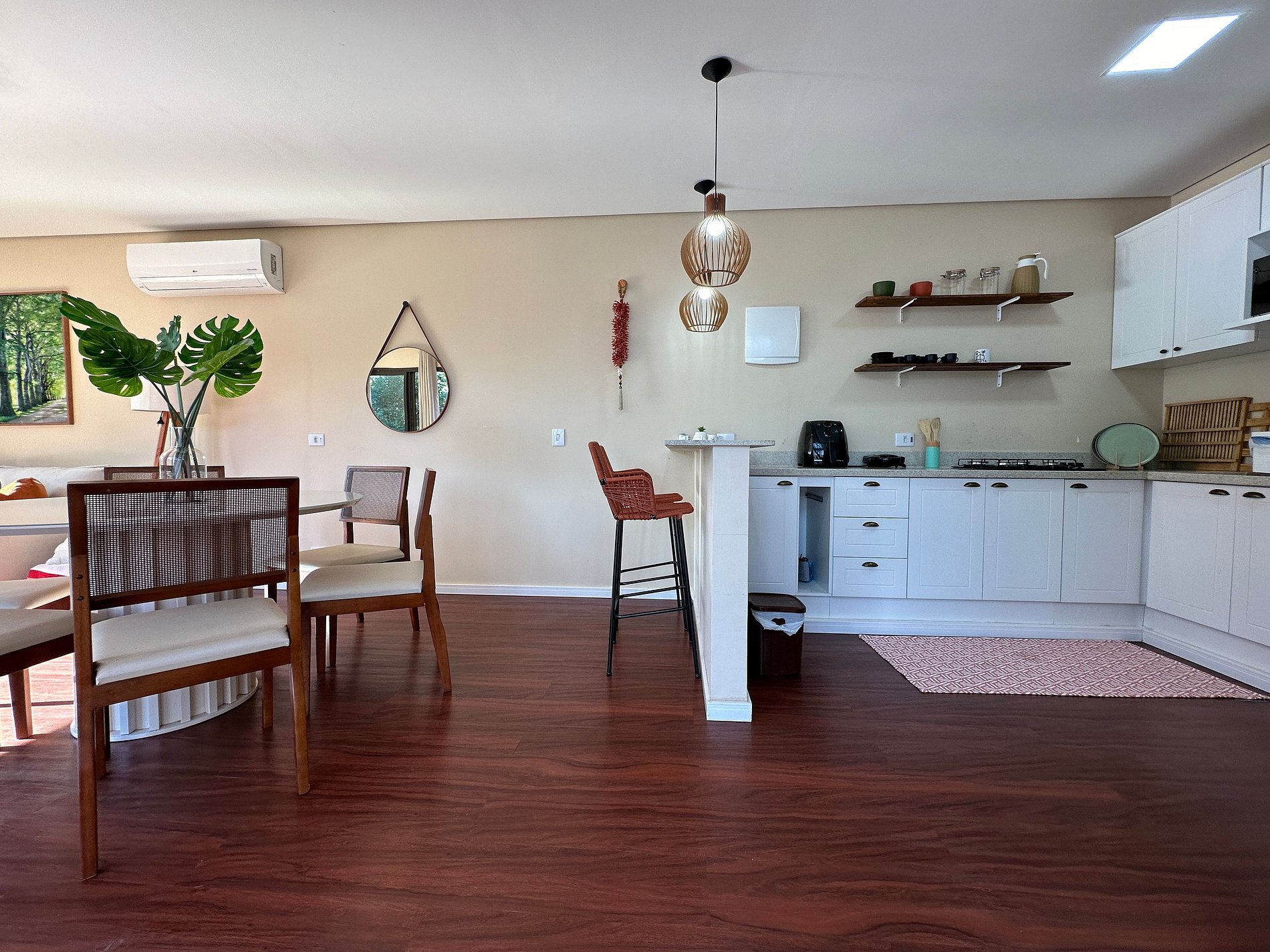- Área interna muito aconchegante e com uma decoração de muito bom gosto, conta com lavabo, salas de estar, jantar e cozinha completa, em ambiente totalmente integrado, com ar-condicionado;