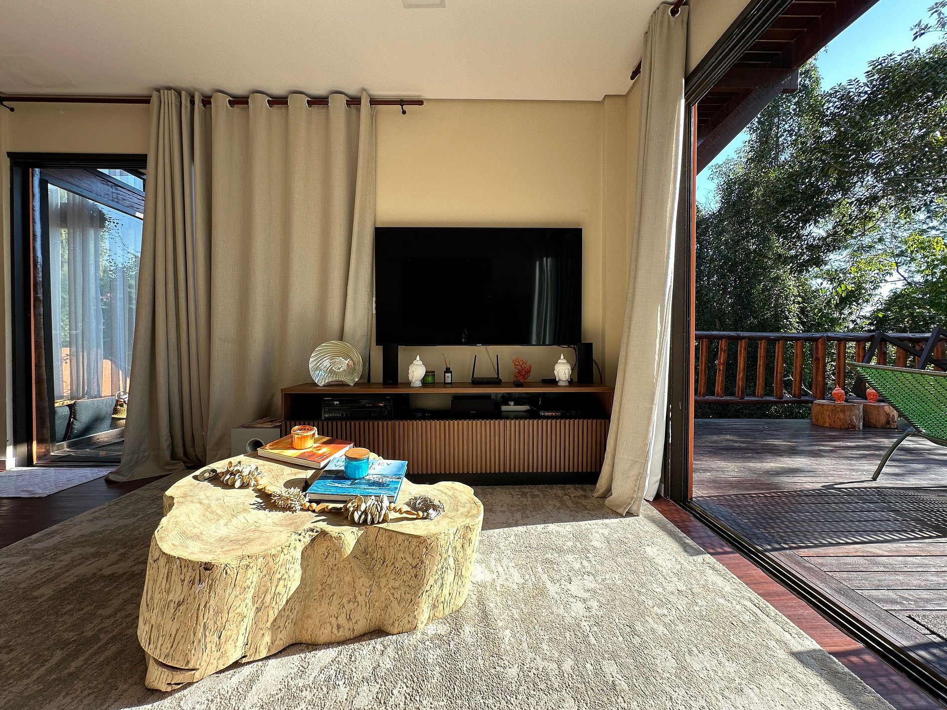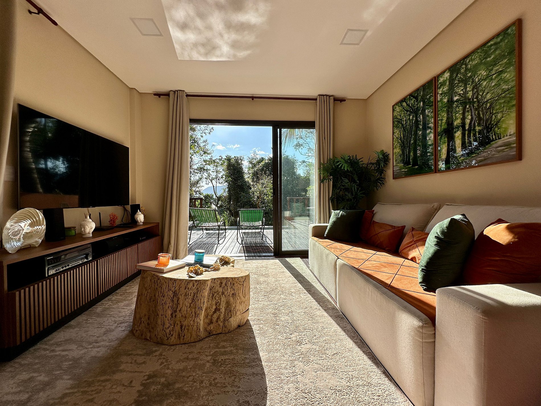 **Os quartos e sala não possuem blackout, apenas cortinas brancas e leves, que não impedem a passagem de sol