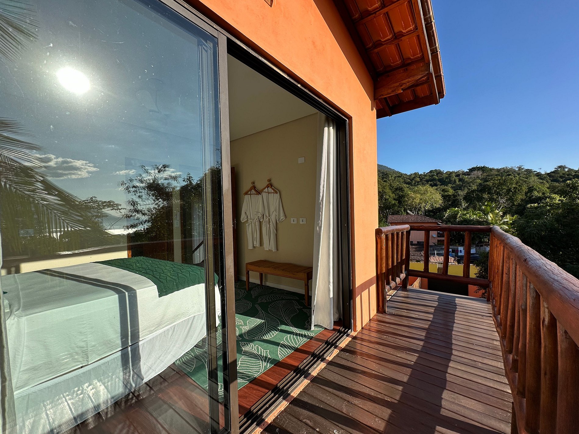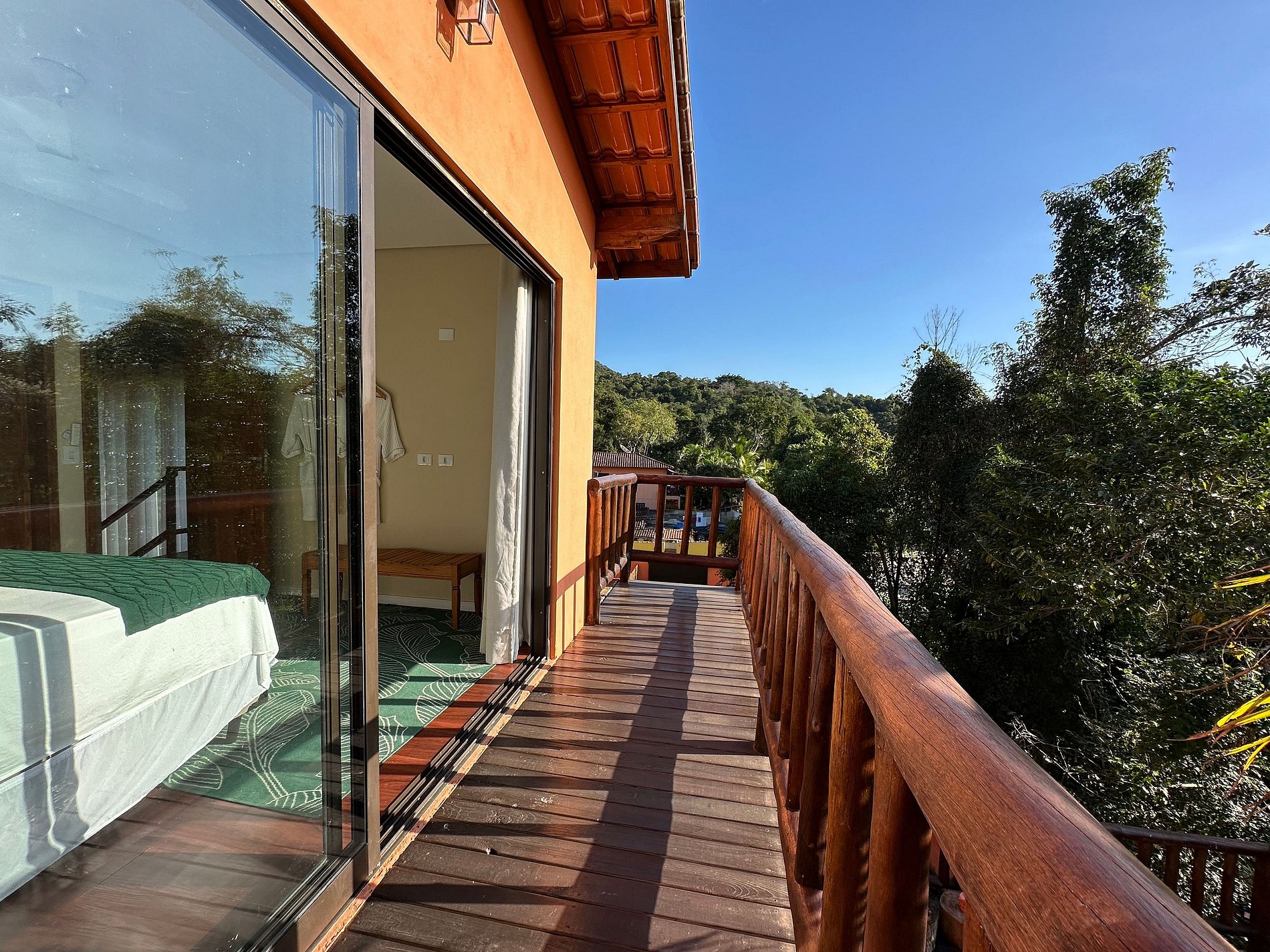 Suíte 2 - 1 cama queen, varanda com vista para montanha.