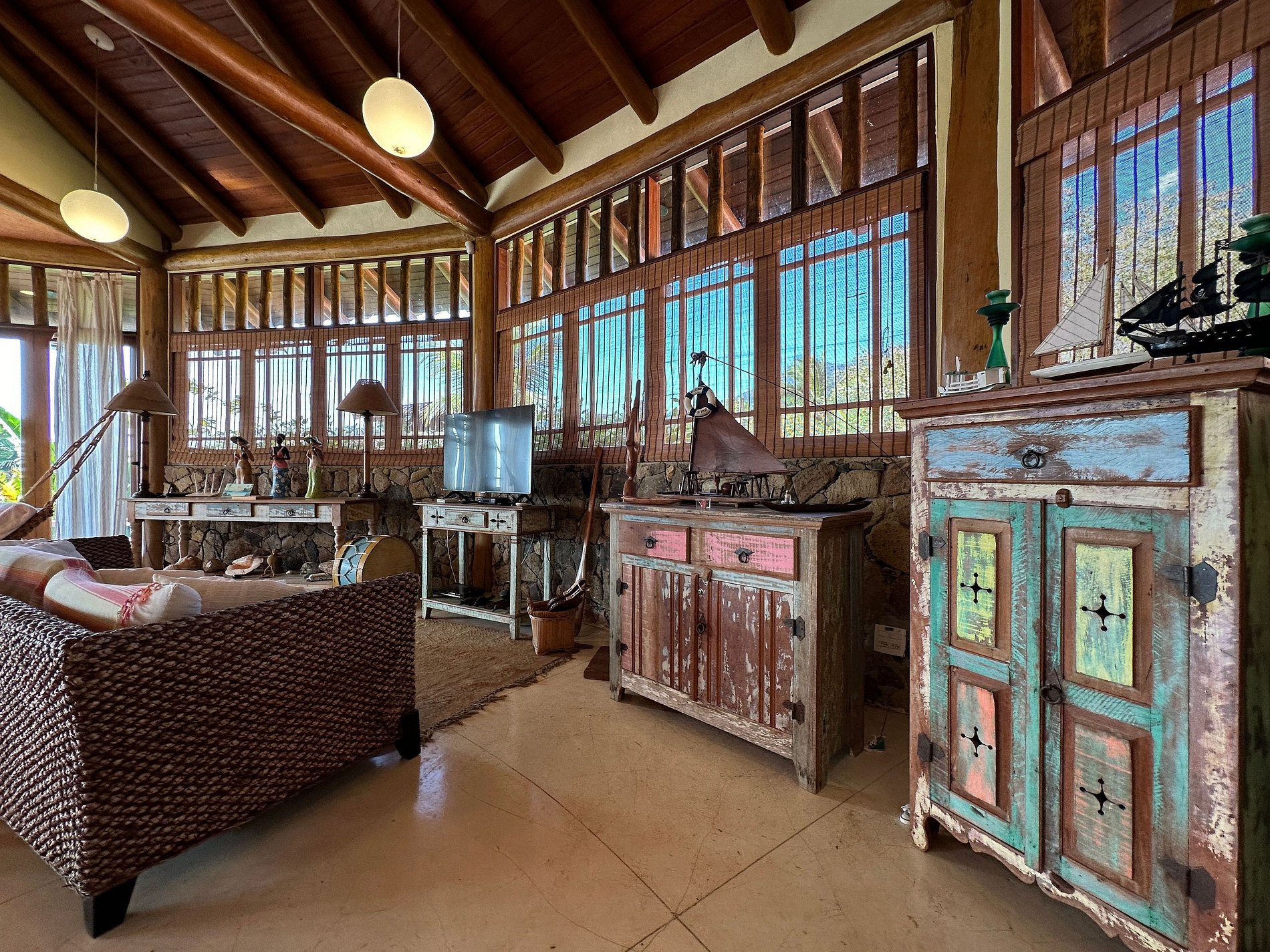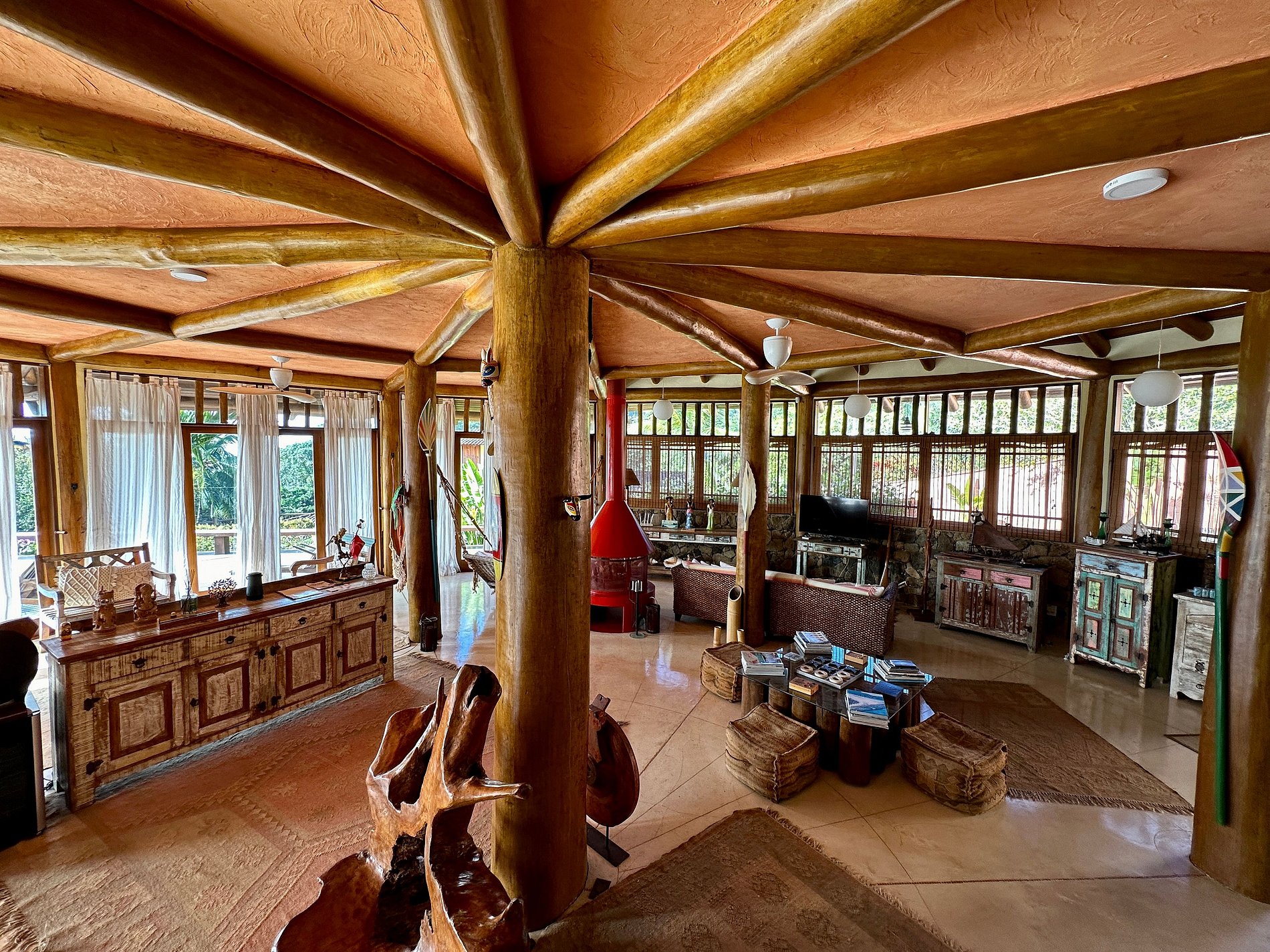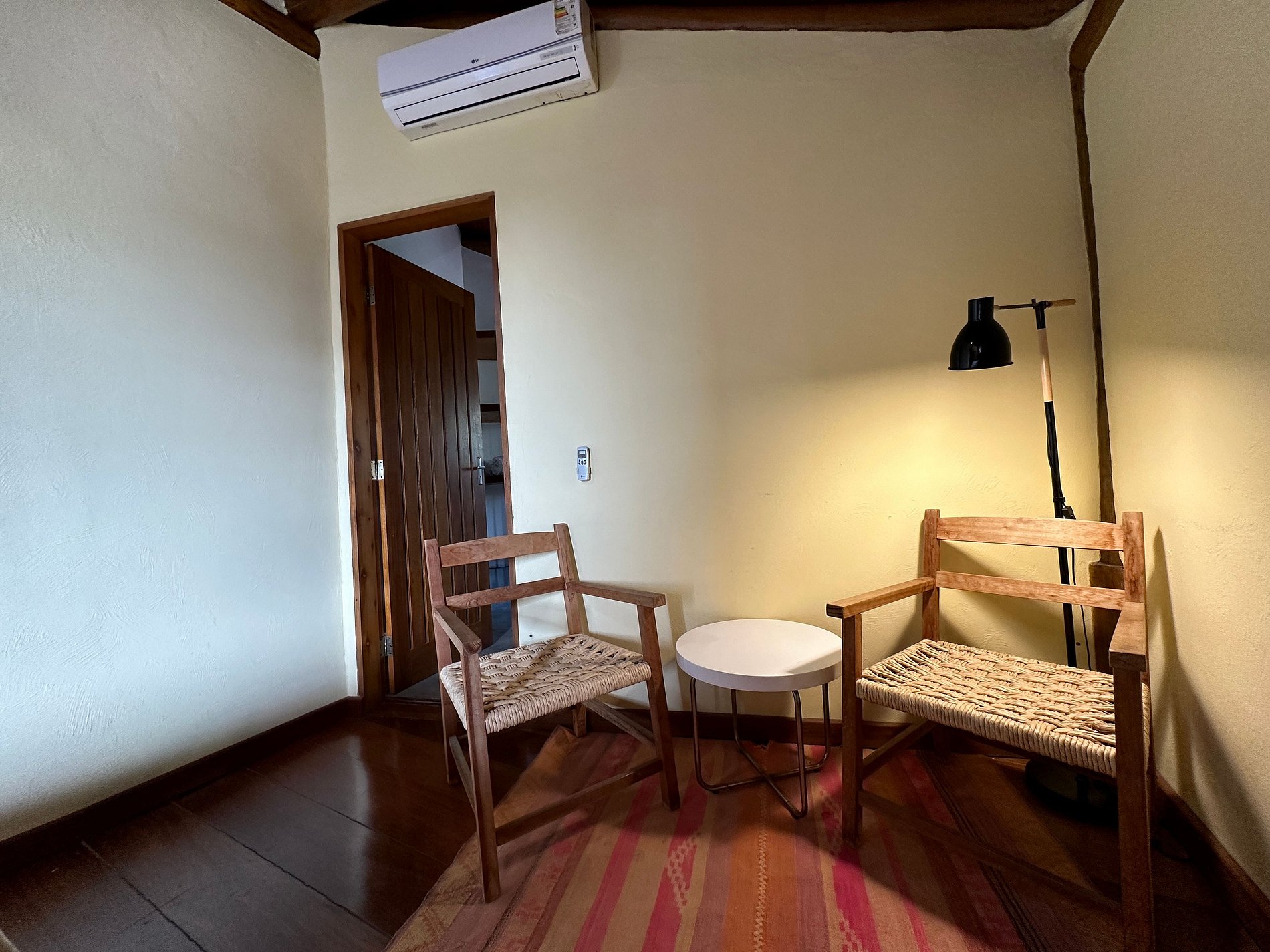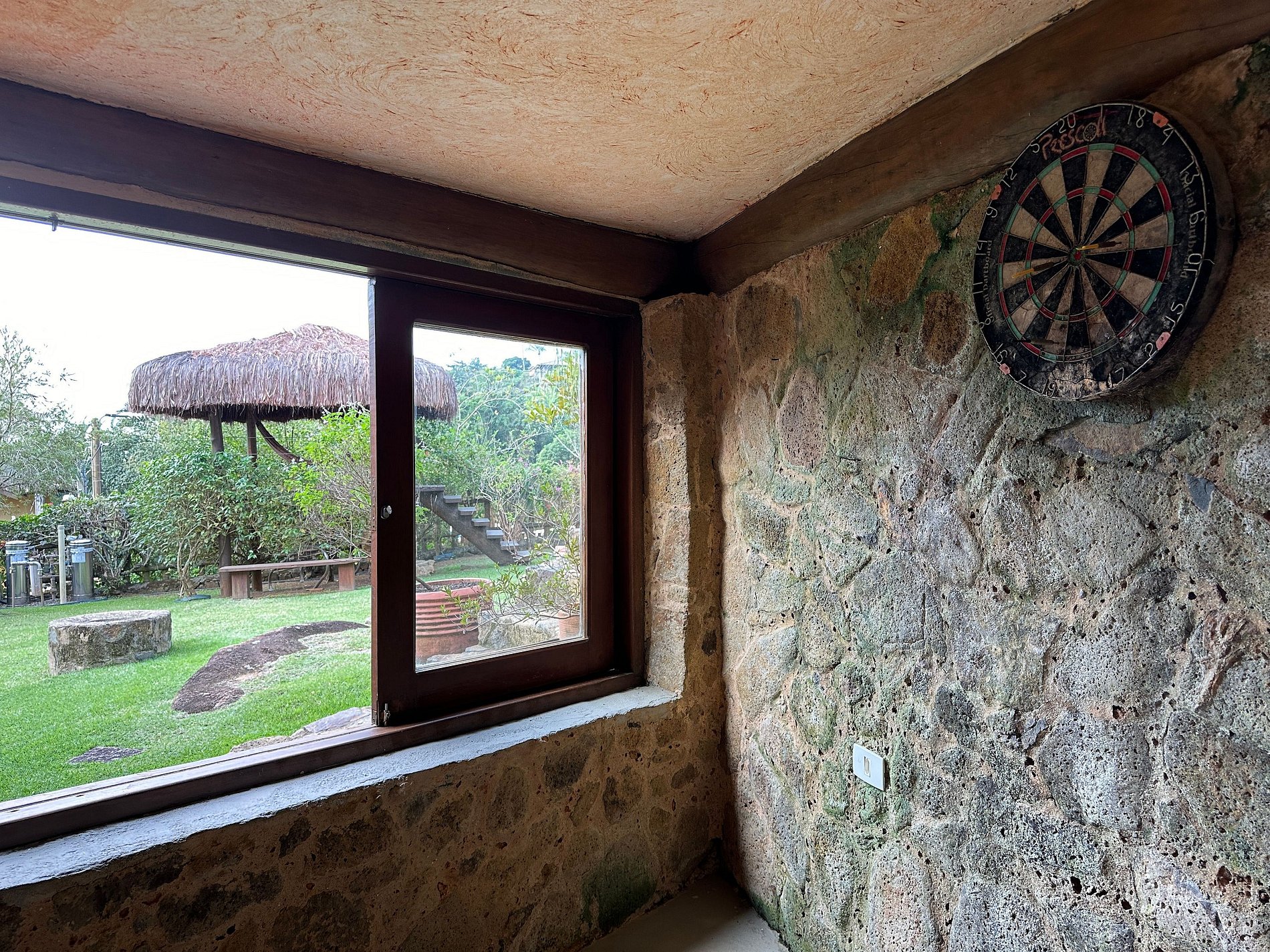 - Ambiente interno com sala ampla e arejada, com claridade natural por todo o espaço, além de lavabo, lareira, decoração rústica e uma Smart TV com acesso a canais a cabo e que permite uso de streamings;