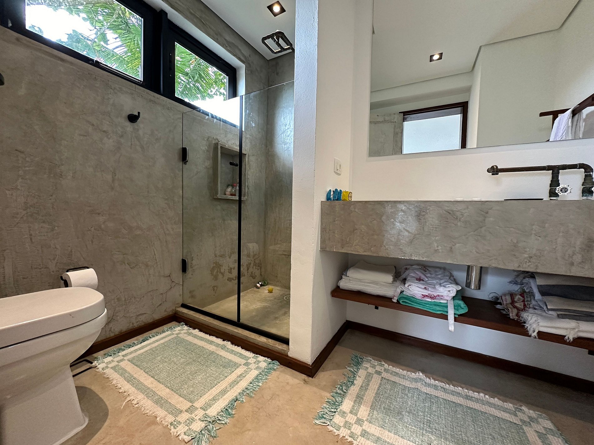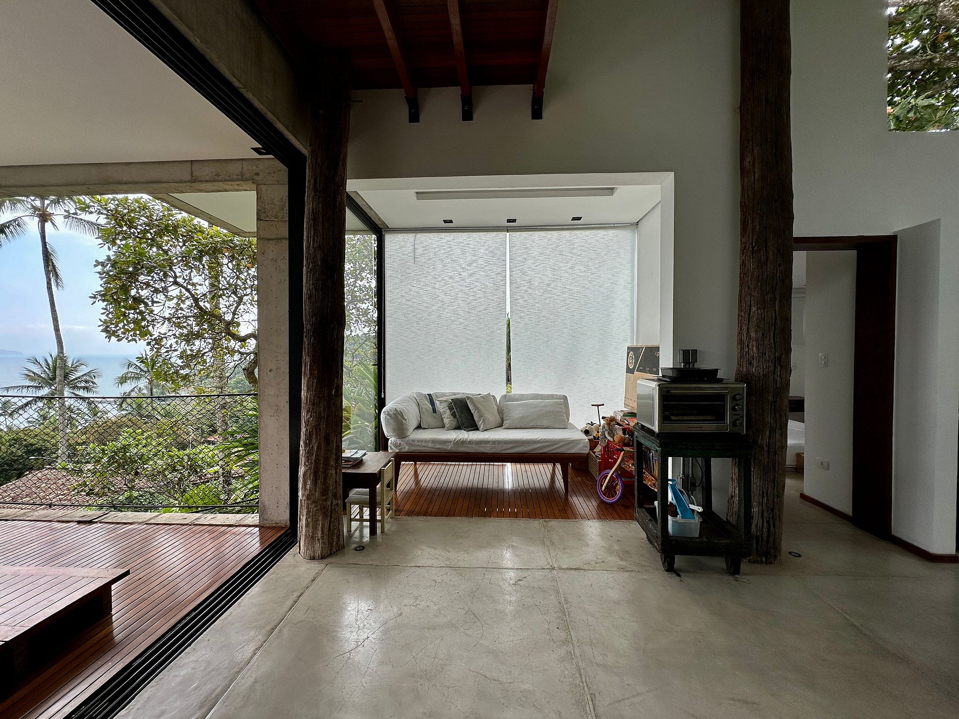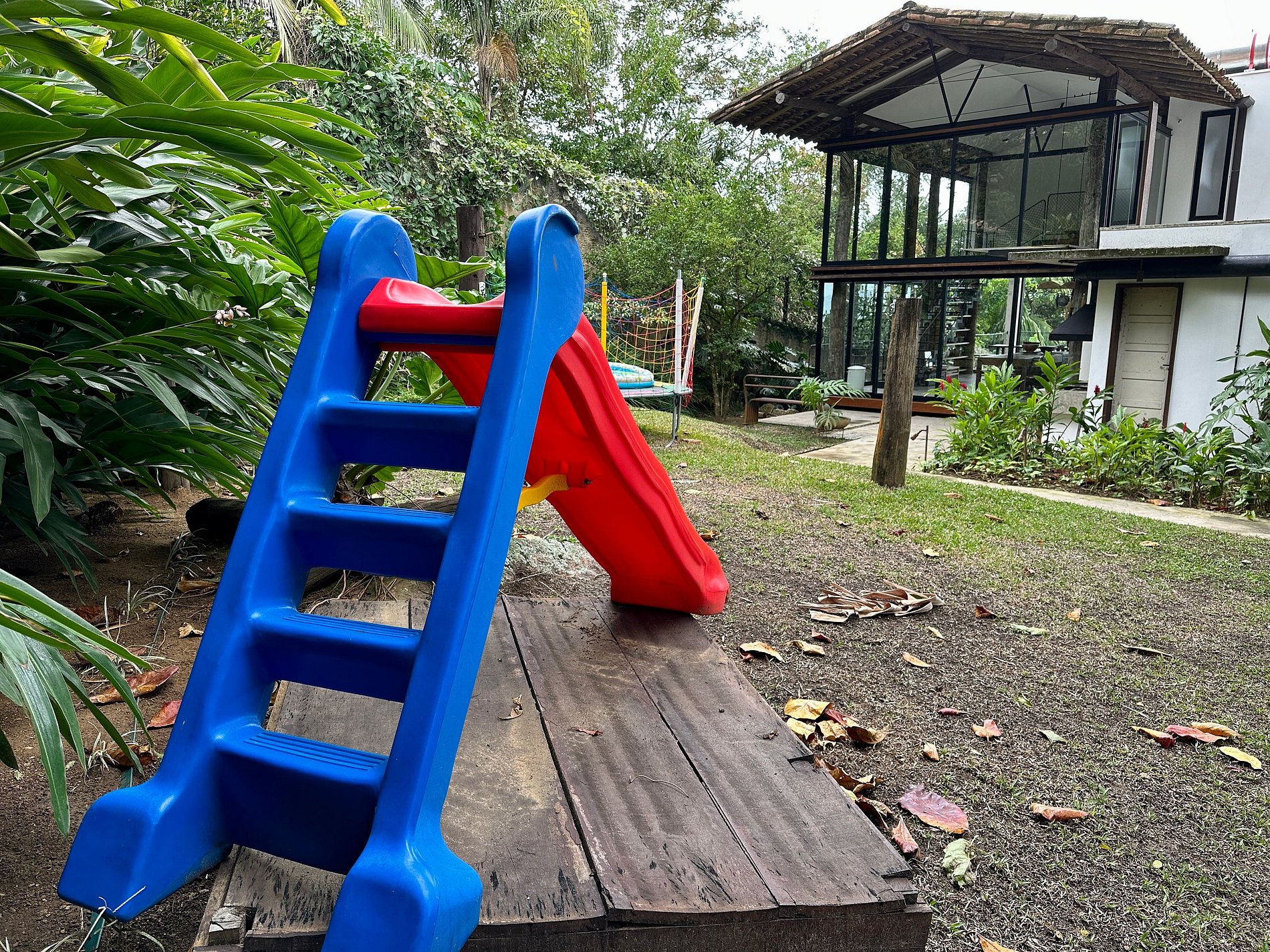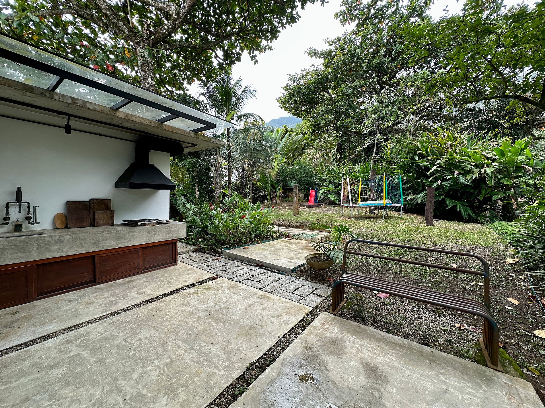 Experiência de integração com a natureza! Localizada em Santa Tereza, um dos bairros mais charmosos de Ilhabela, sentido às praias do Norte. Com bela vista e finais de tarde espetaculares! Ideal para 4 pessoas. São 2 suítes, ambas com ar-condicionado. Salas de jantar e estar, integradas à uma cozinha bem equipada e uma área externa de churrasqueira. Conta ainda com Smart TV e Wi-fi. A área externa é acolhedora, com belo jardim, pula-pula e escorregador infantil. Aceita um pet de pequeno porte!