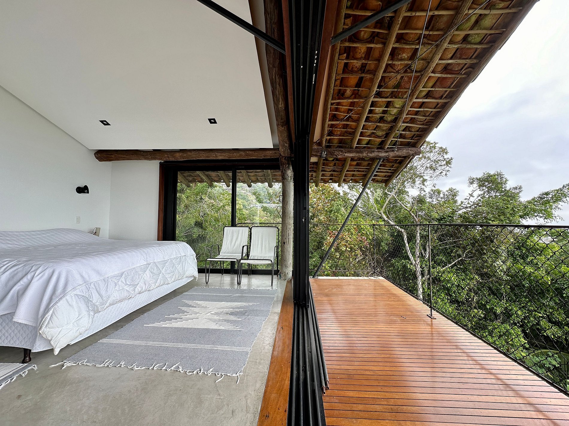 Suíte 1 - 1 cama king, espaço confortável para home office e visão 360 graus para mar e montanha;