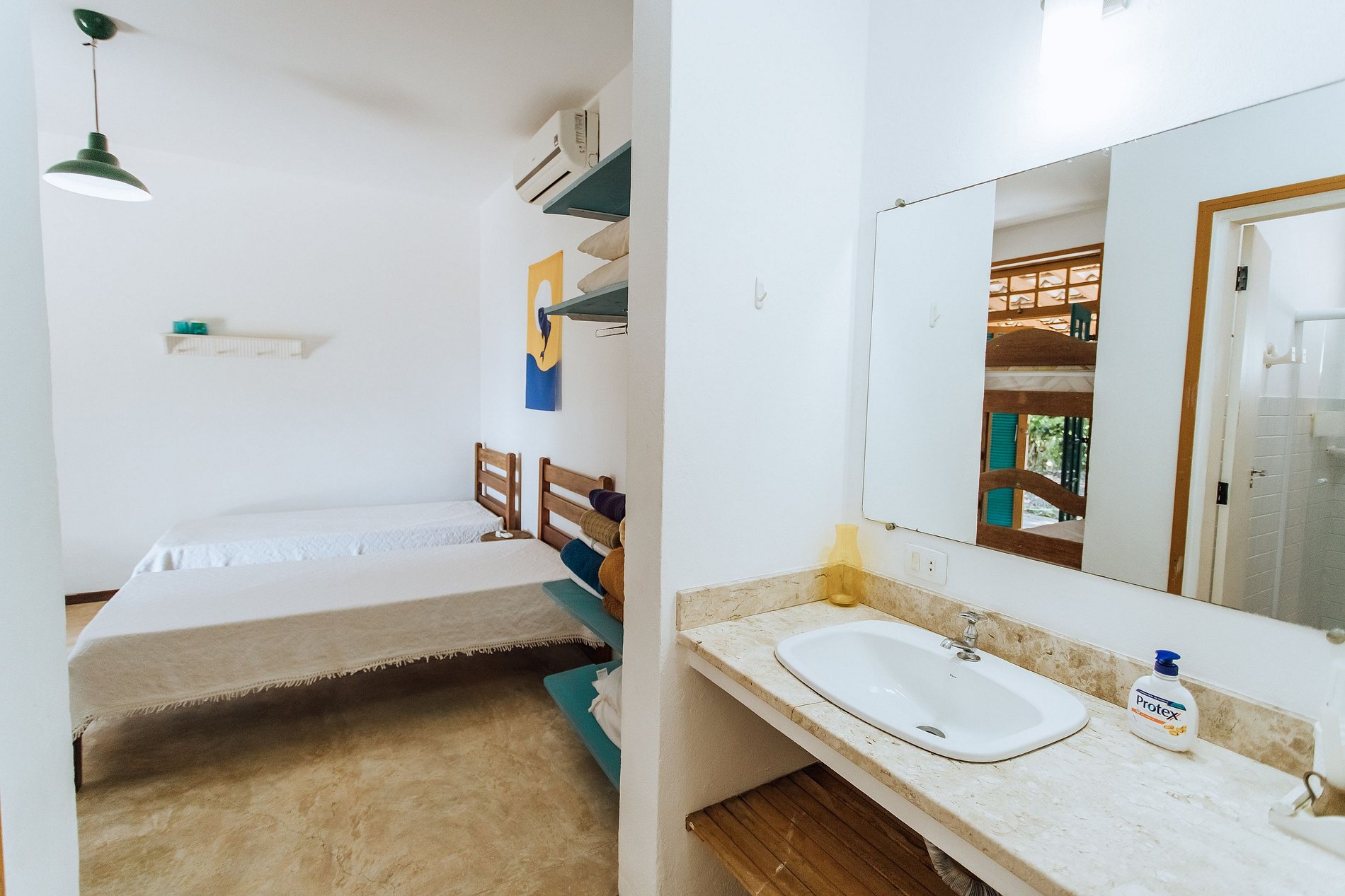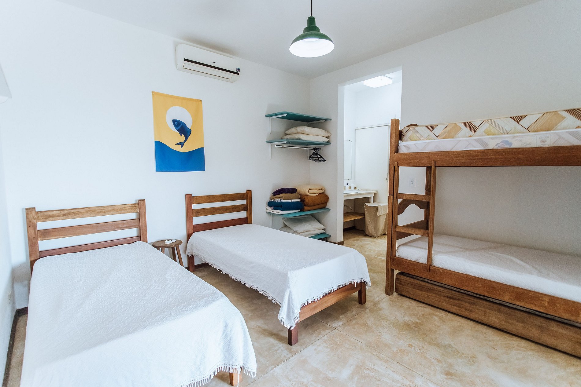 Suíte 2 - 2 camas de solteiro e 1 beliche, enxoval completo e ar-condicionado;