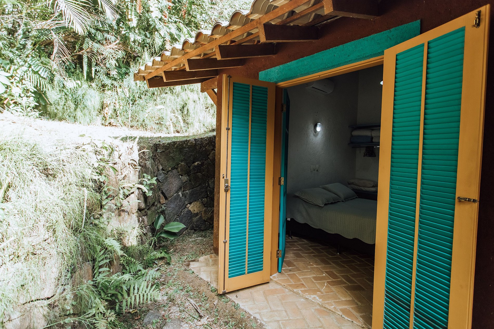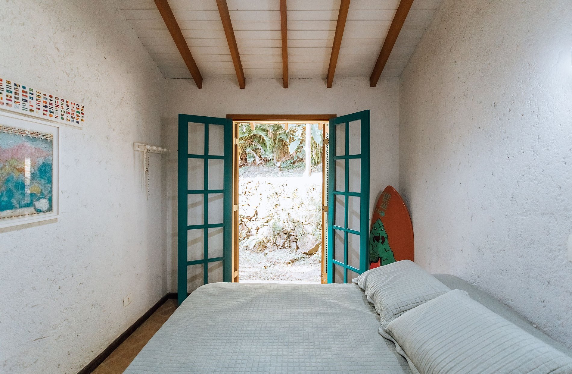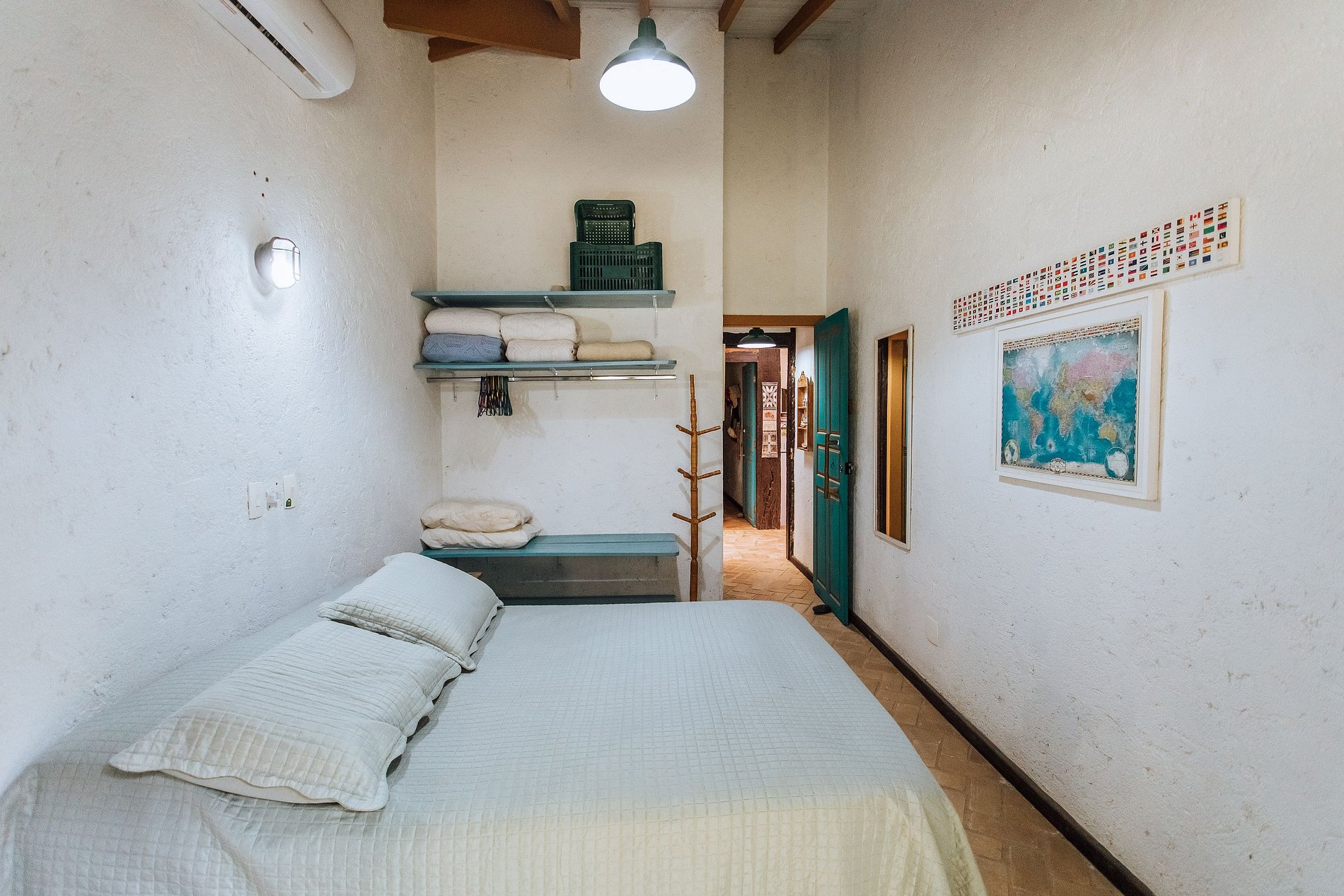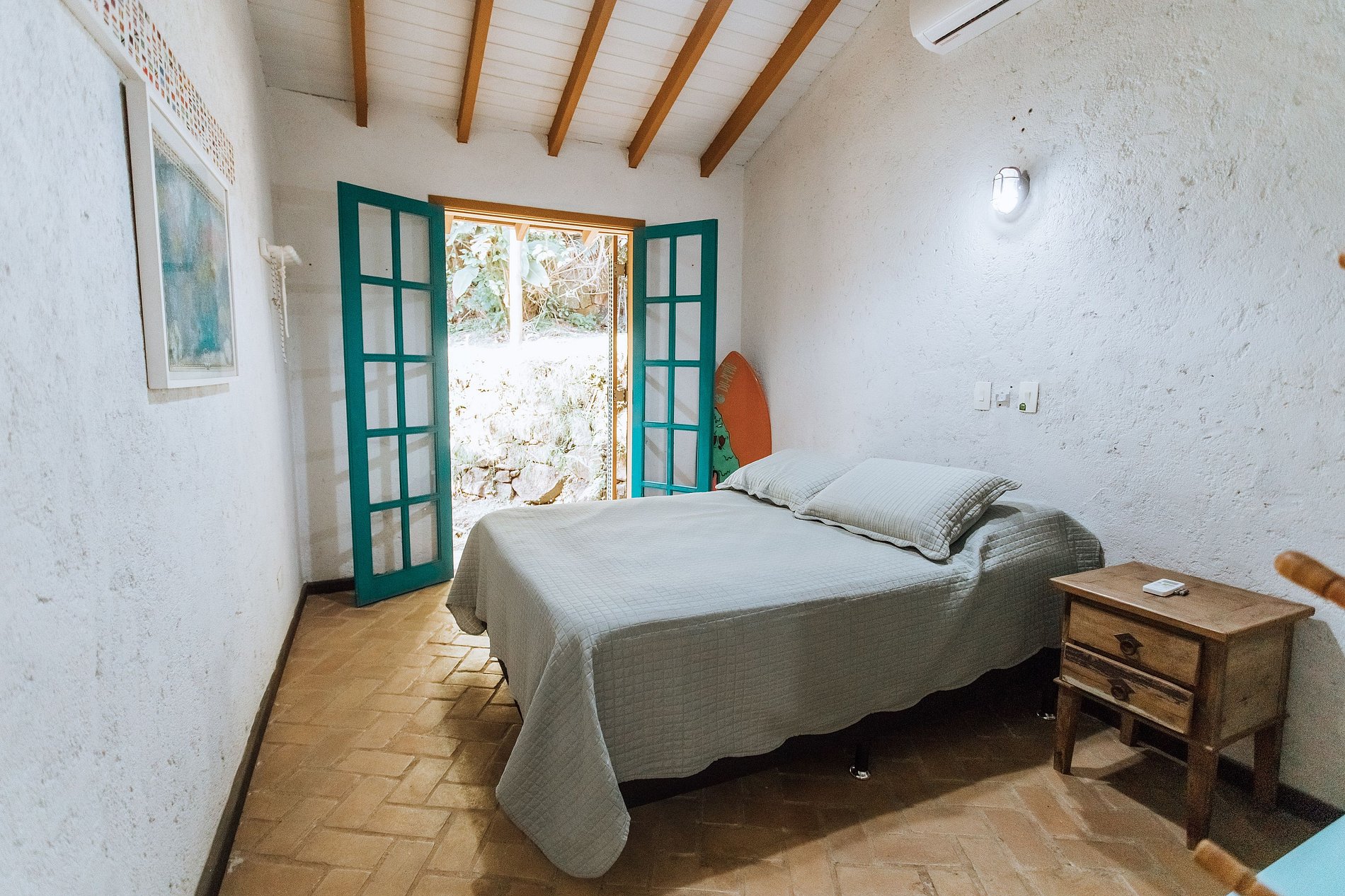 Quarto interno (andar superior) - 1 cama de casal, enxoval completo e ar-condicionado.