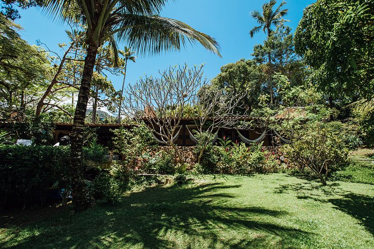 - Área externa sensacional, com ampla varanda com redes, belíssimo jardim, deck de madeira com cadeiras de praia e mesa de apoio, ducha externa e acesso direto à praia e píer;