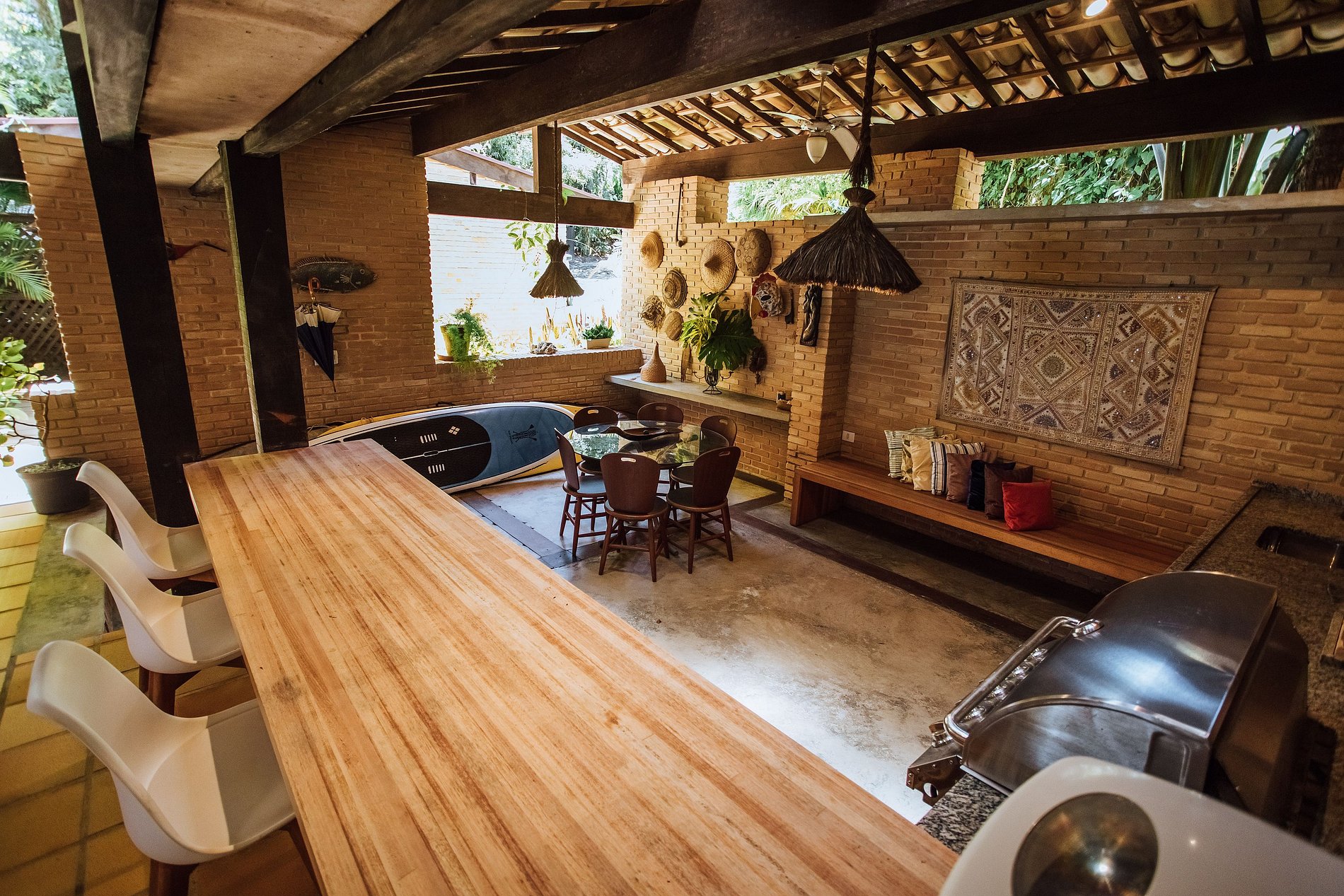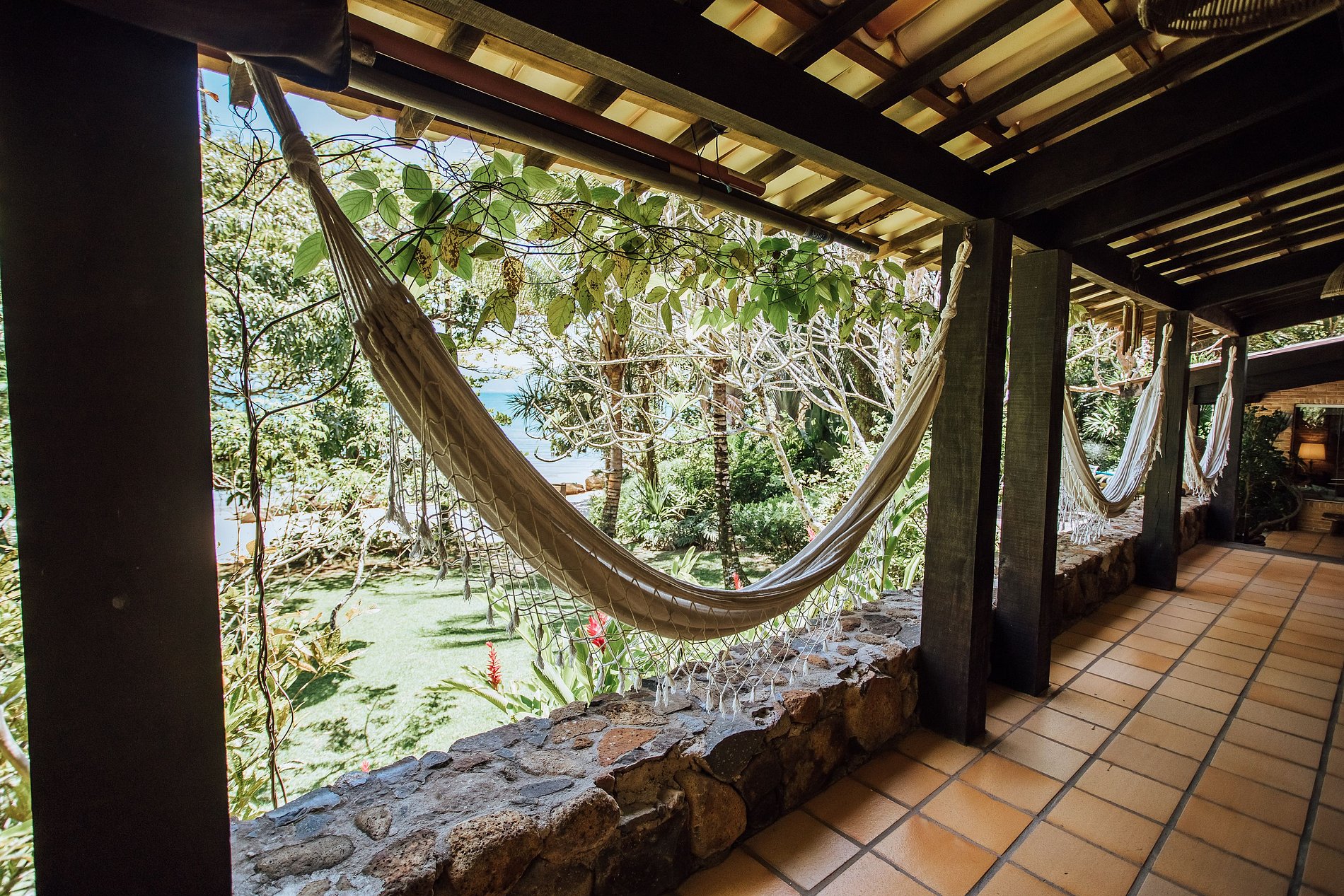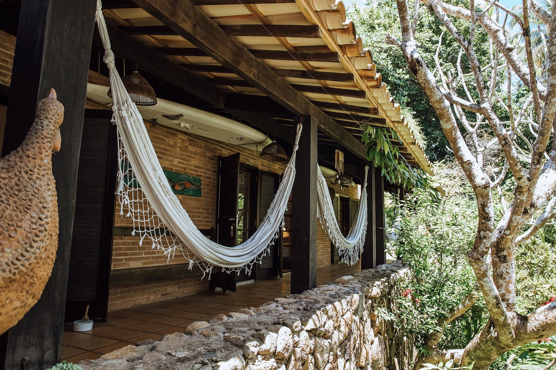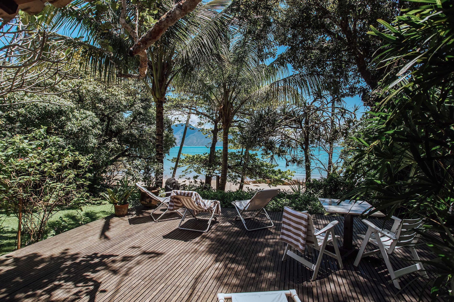 - Área externa sensacional, com ampla varanda com redes, belíssimo jardim, deck de madeira com cadeiras de praia e mesa de apoio, ducha externa e acesso direto à praia e píer;