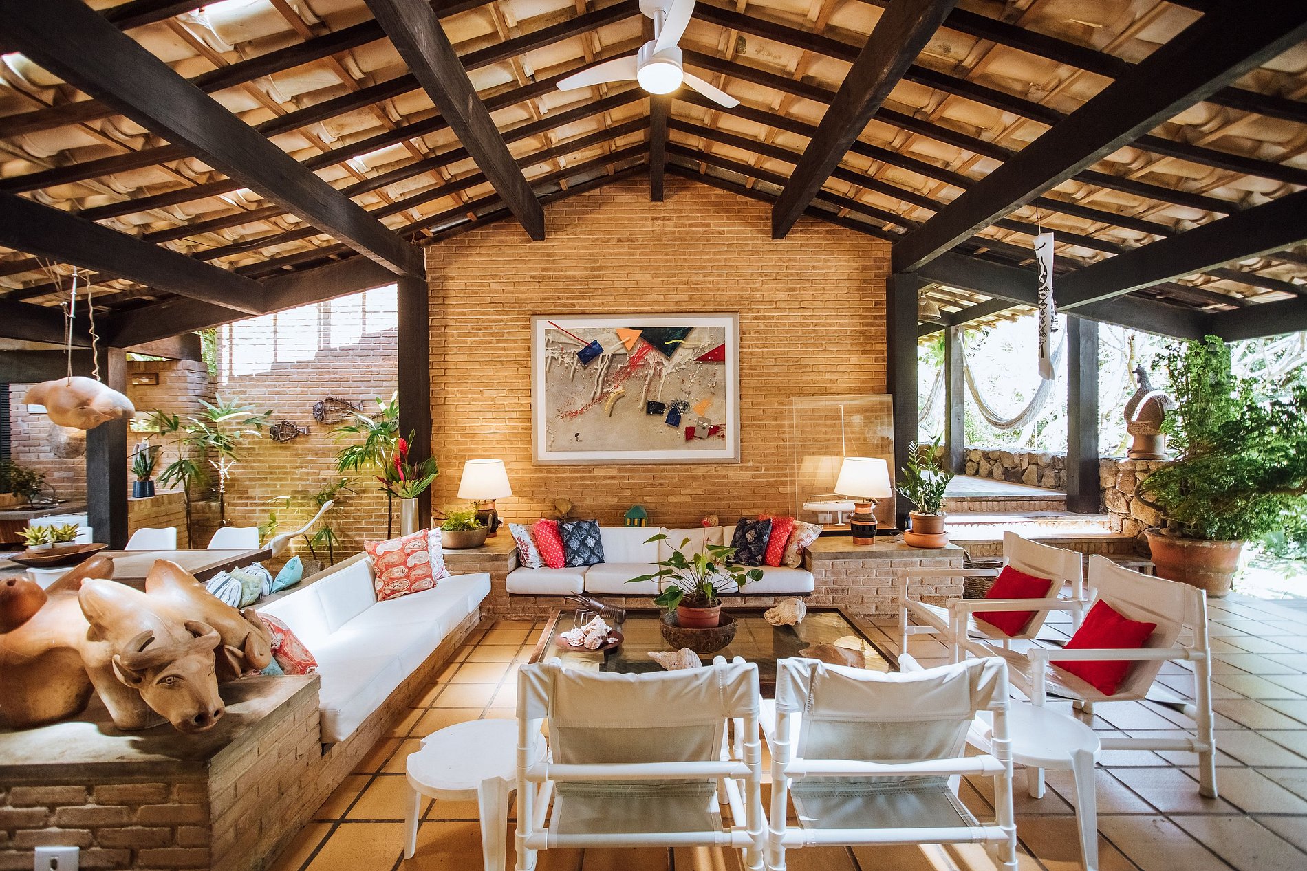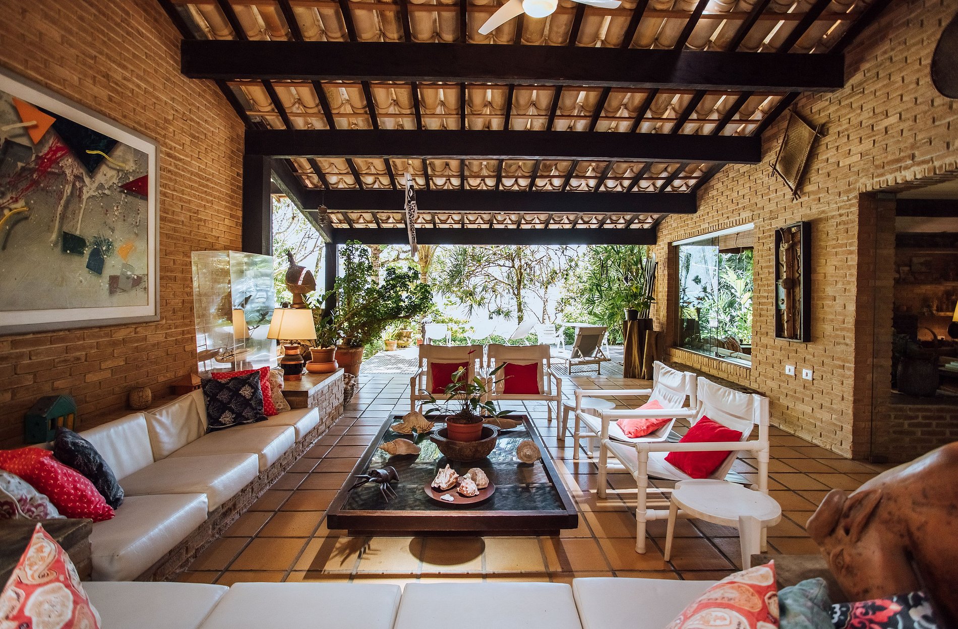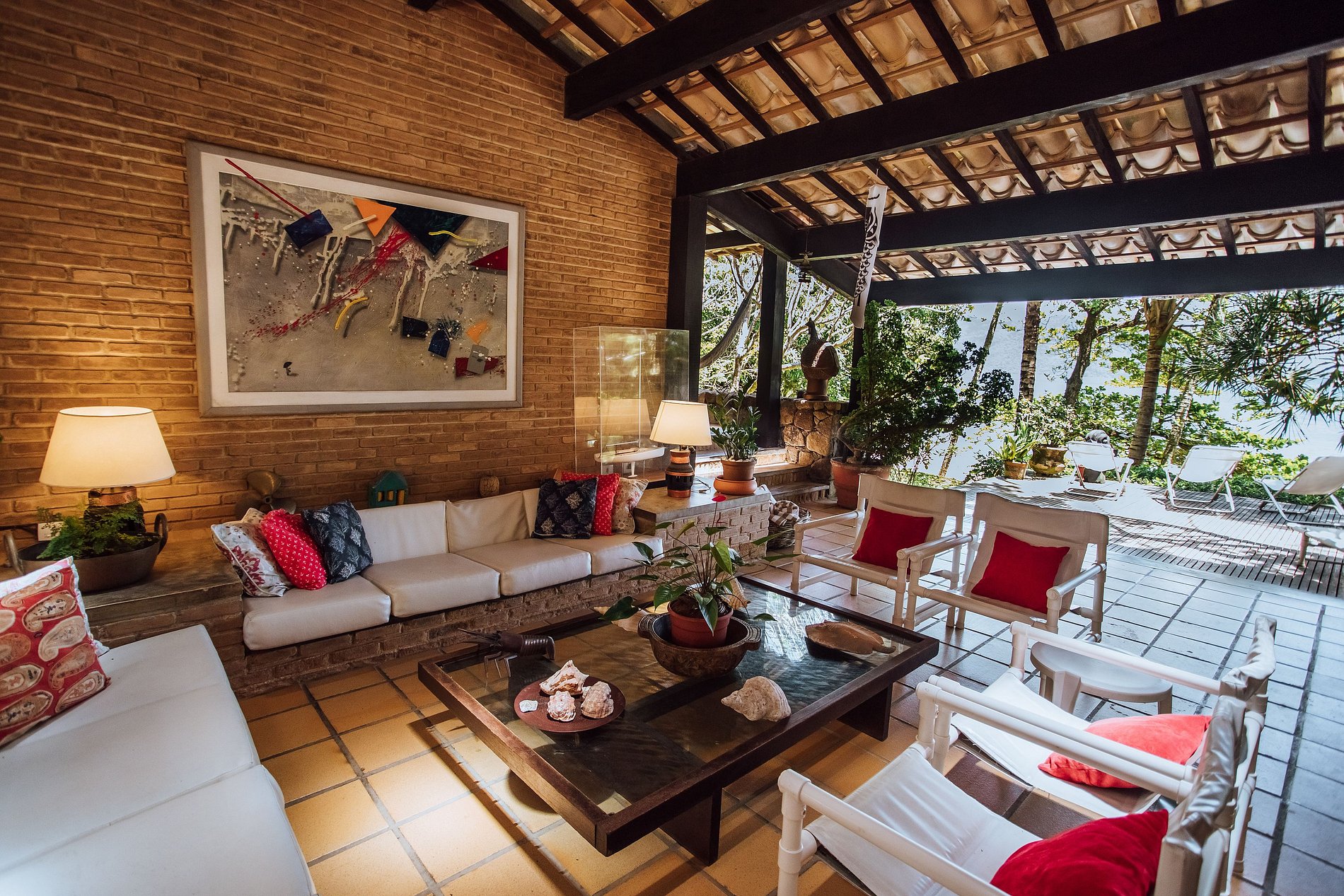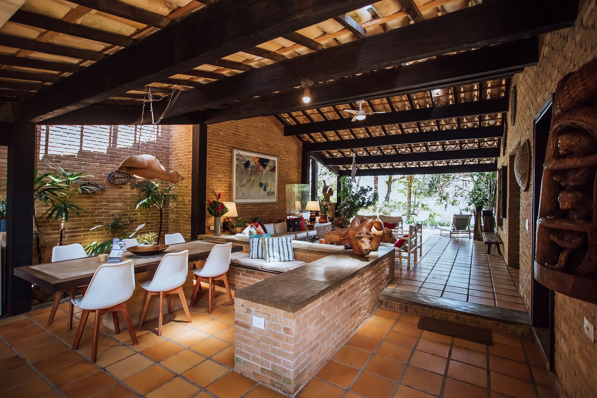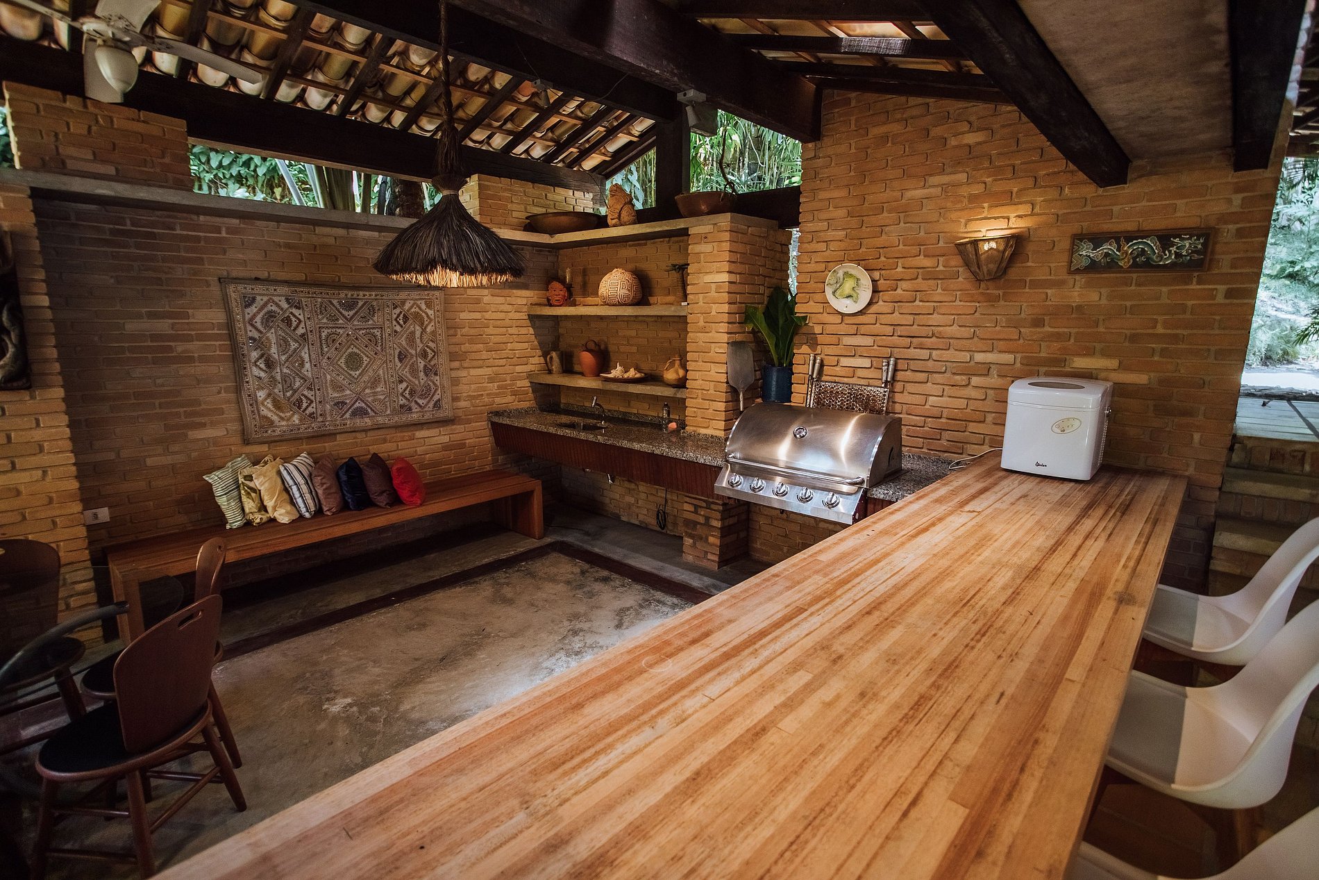 - Área externa sensacional, com ampla varanda com redes, belíssimo jardim, deck de madeira com cadeiras de praia e mesa de apoio, ducha externa e acesso direto à praia e píer;
