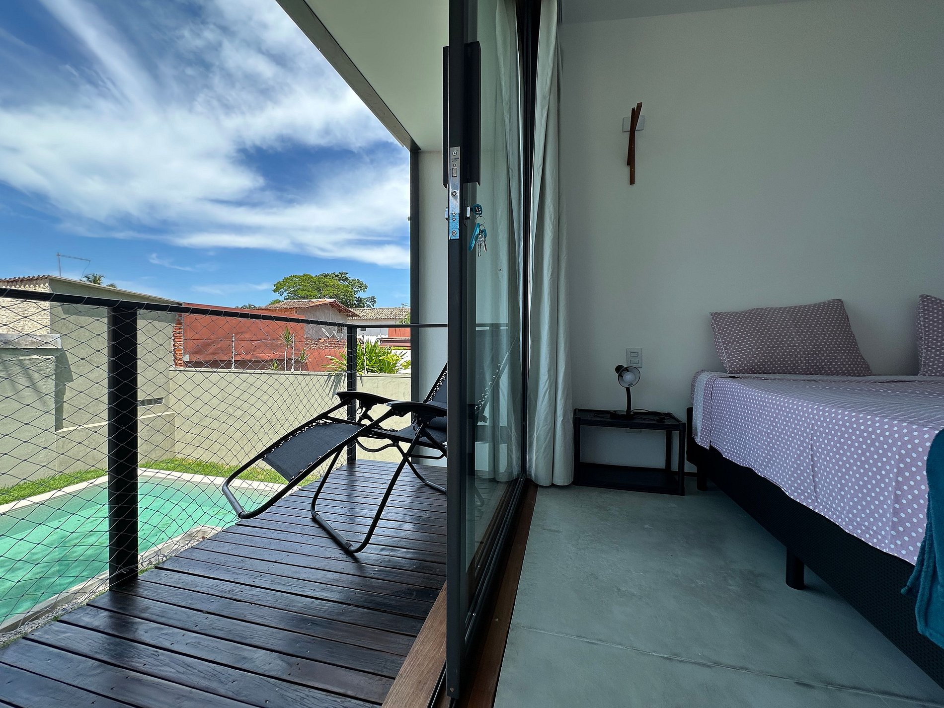 - Há um banheiro extra que serve de apoio à piscina;