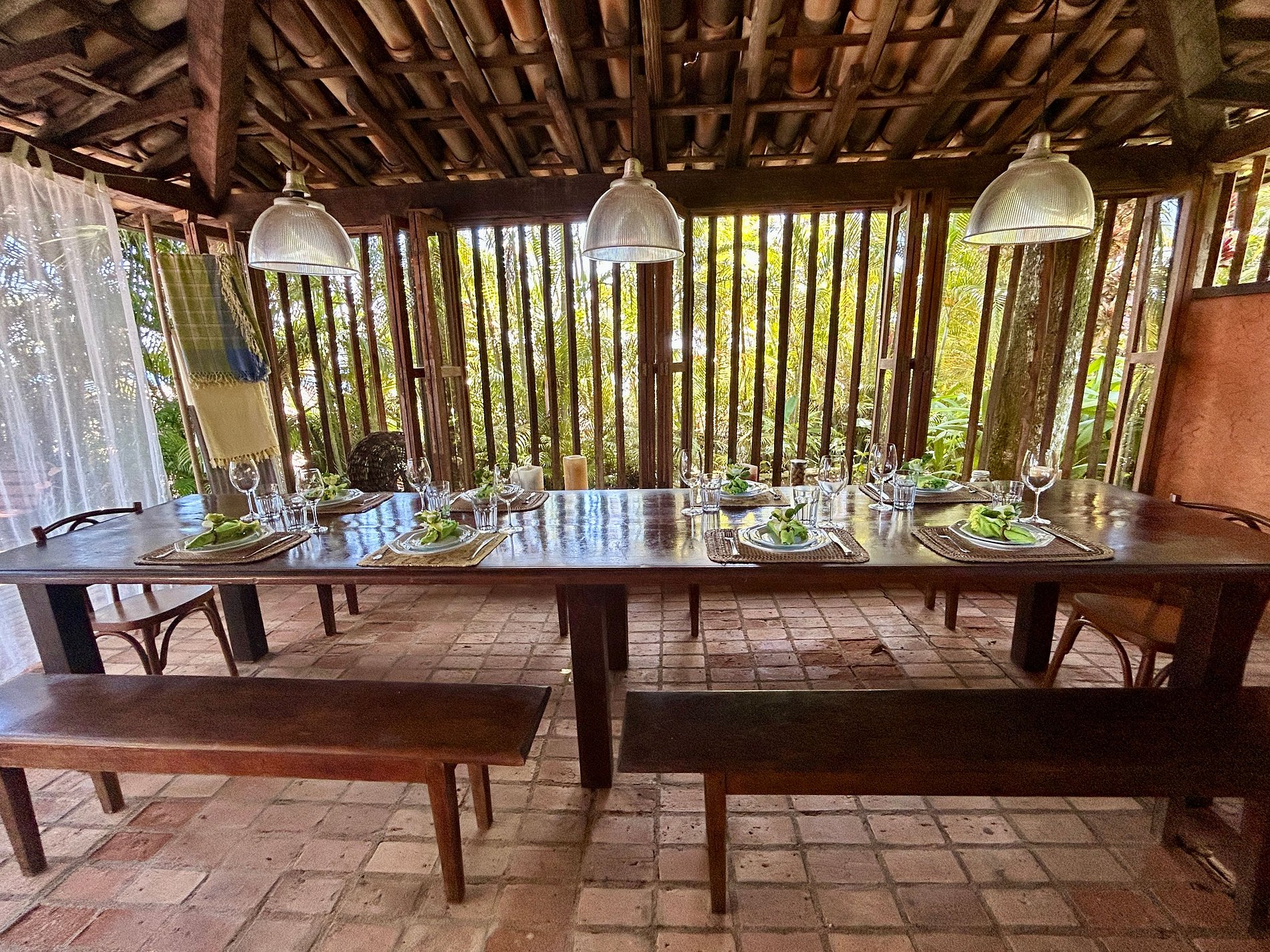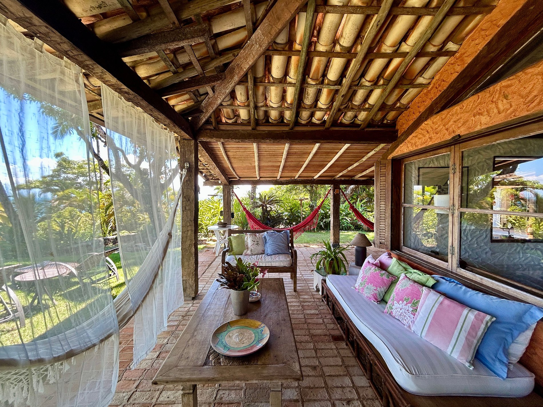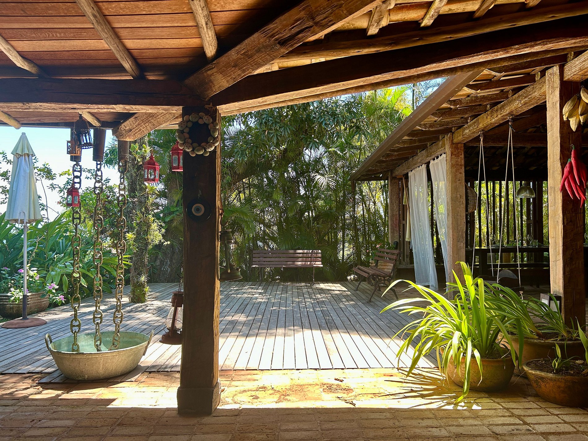 - Área externa sensacional, amplas varandas mobiliadas, belo e bem cuidado jardim, sauna, deck de madeira com espreguiçadeiras e guarda-sol, espaço gourmet completo, com churrasqueira, forno a lenha e pizza, mesa para refeições, mobiliário completo, aconchegante e confortável, que irão garantir momentos inesquecíveis entre familiares e amigos;
