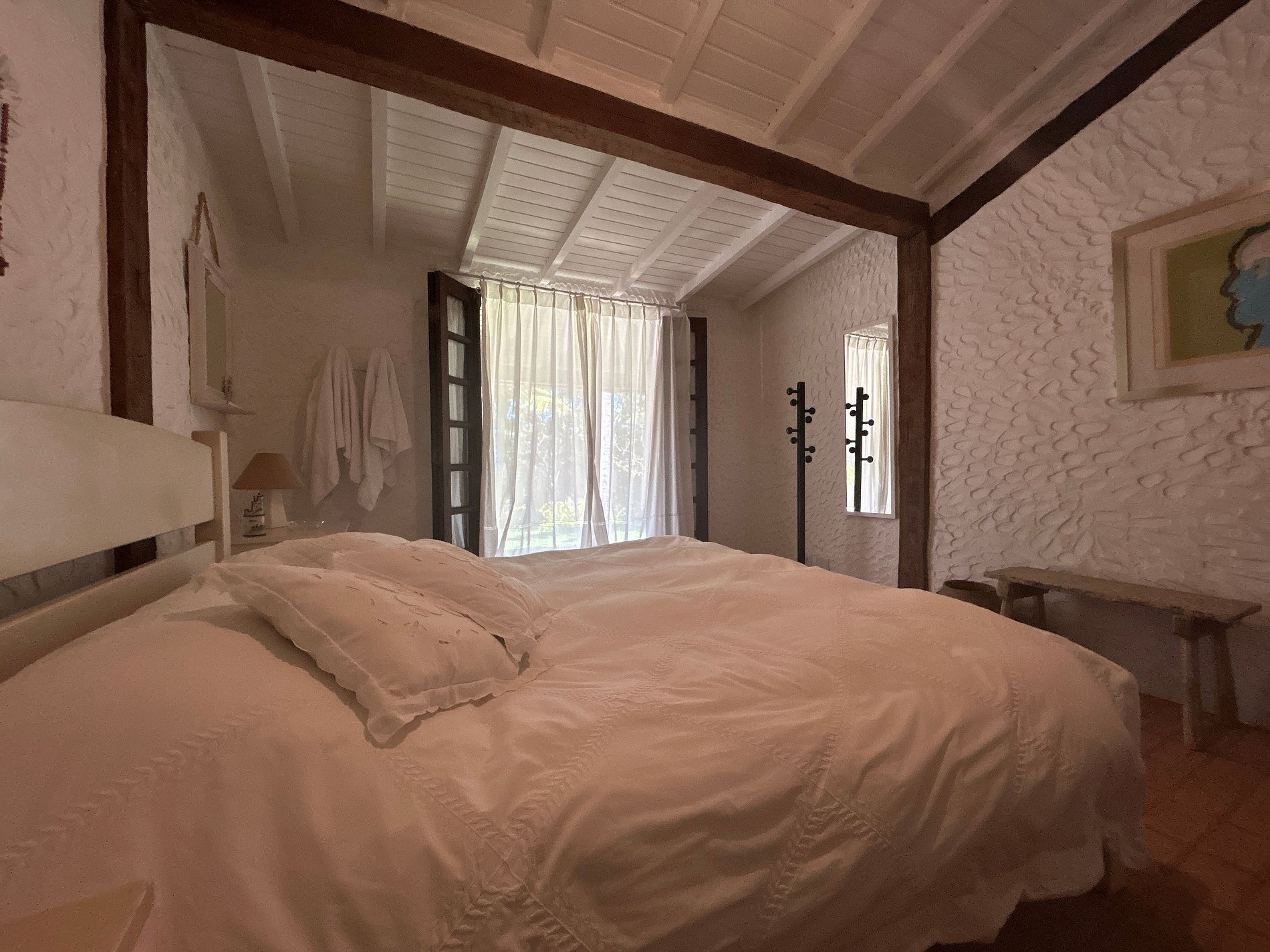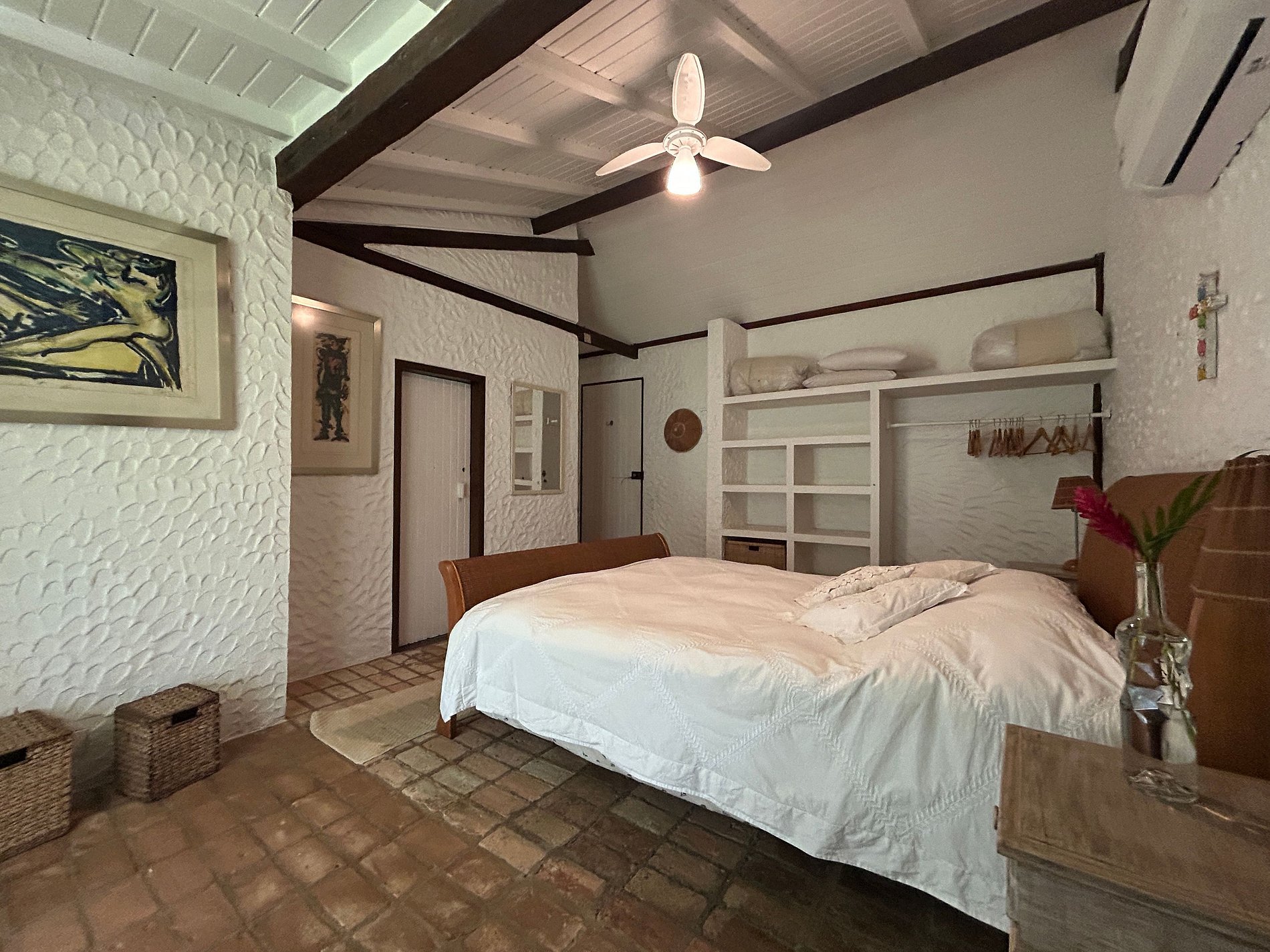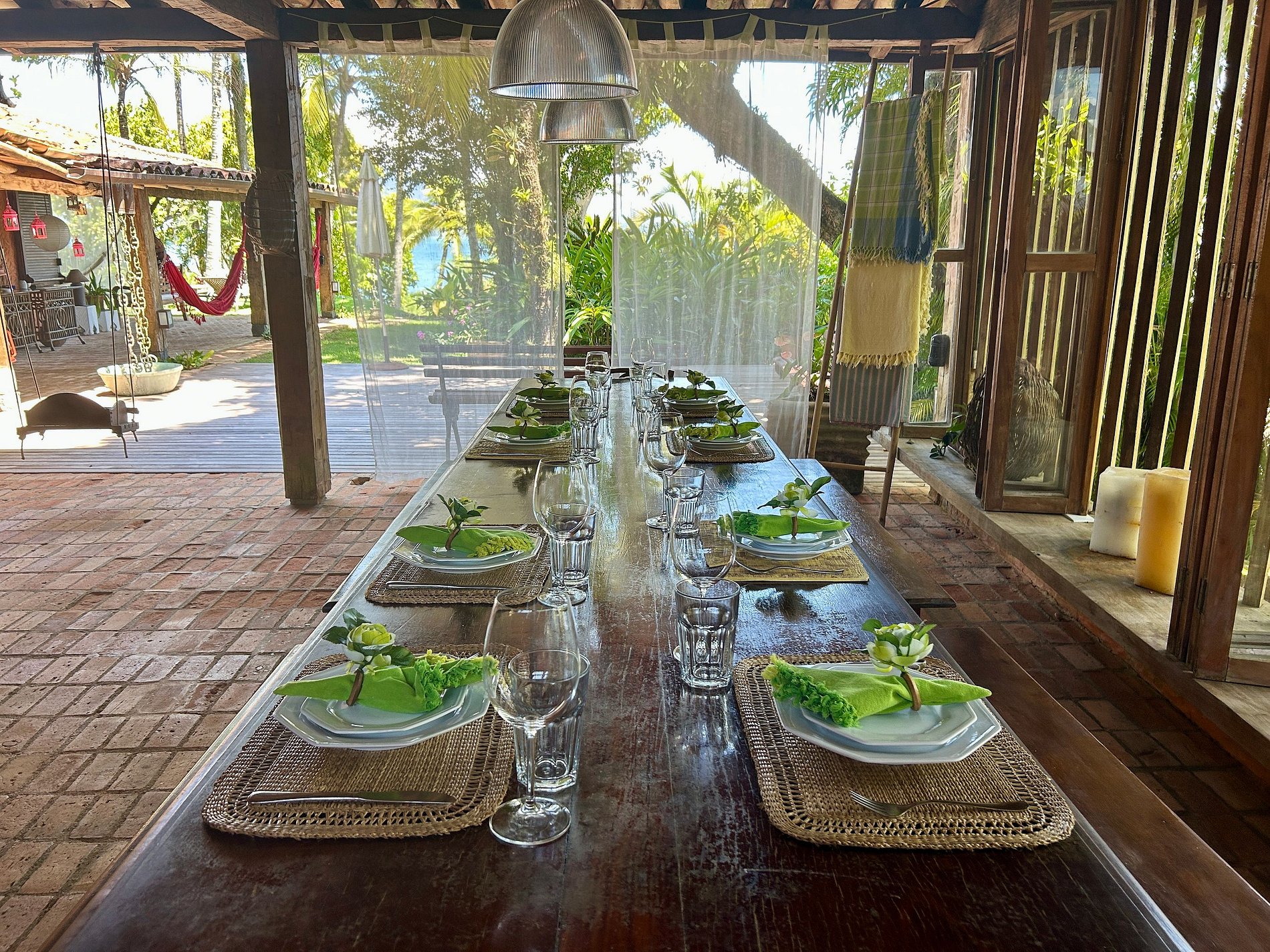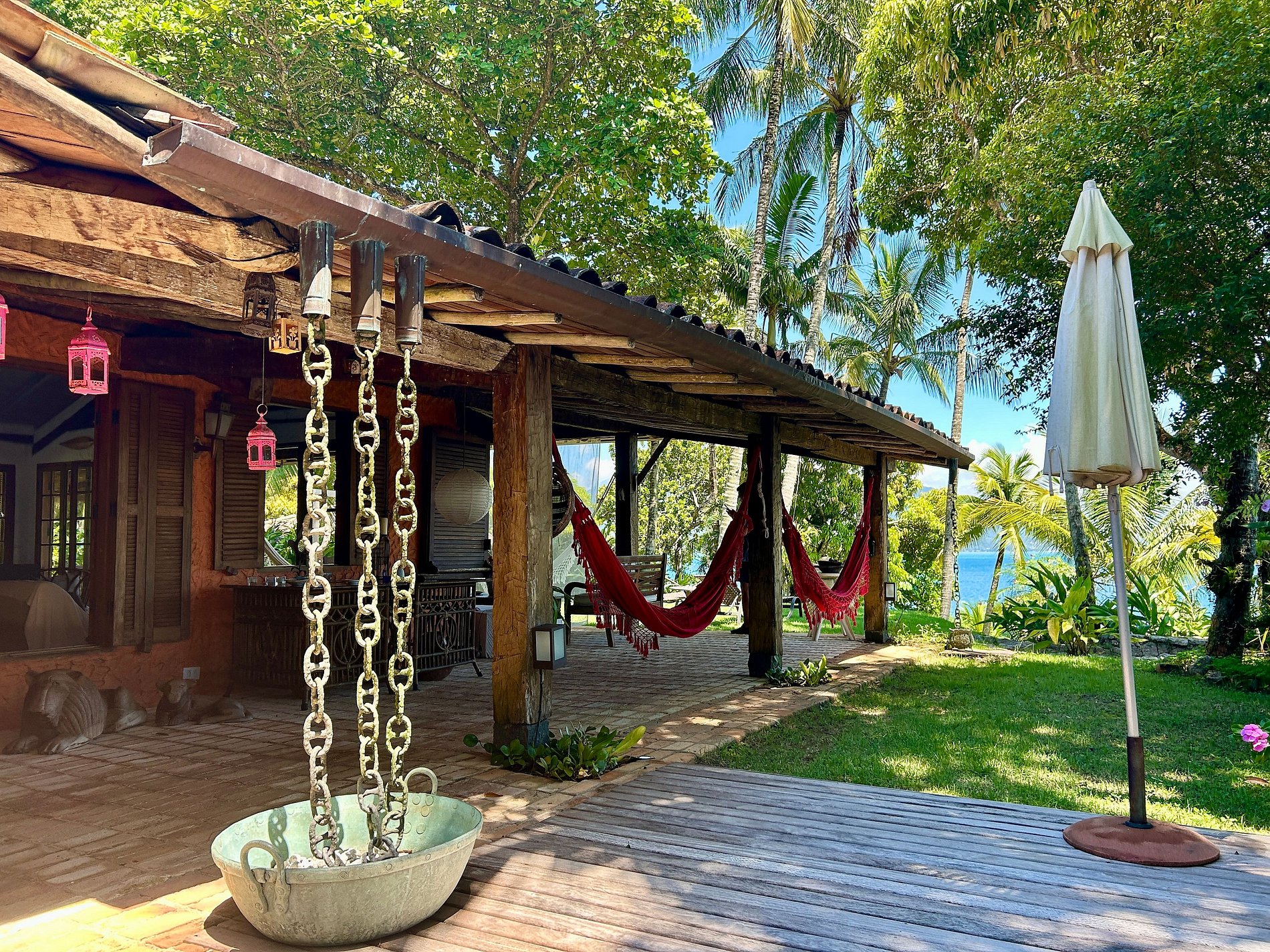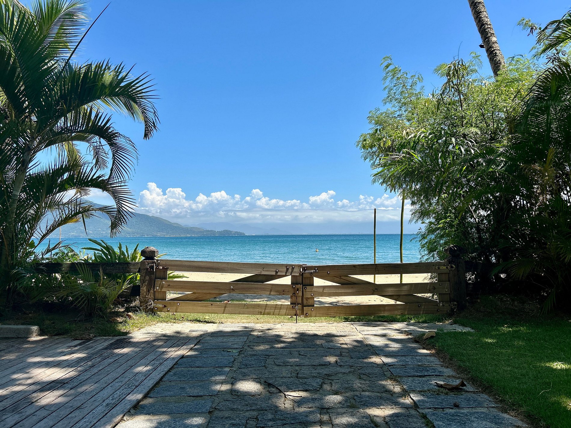 Bela casa, em um pequeno condomínio pé na areia, em frente à bela praia do Pinto, ao Norte de Ilhabela, com vista deslumbrante do mar. Ideal para 10 pessoas. São 3 suítes com ar-condicionado e 2 quartos com ventiladores. Área externa com jardim, espaço gourmet com churrasqueira, forno a lenha, forno de pizza, varandas bem mobiliadas e uma escada que dá acesso direto à praia. Smart TV e Wi-fi. Salas de estar e jantar com bela decoração e cozinha completa. Seu pet de pequeno porte é bem-vindo!
