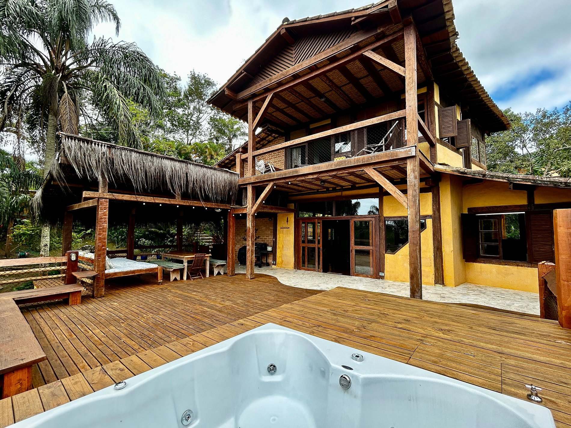 Linda e aconchegante casa em meio à Mata Atlântica, com vista para as montanhas e o mar. Localizada no tranquilo e seguro bairro da Cocaia, um dos mais charmosos de Ilhabela. Um confortável refúgio para se desconectar da rotina. Acomoda até 8 pessoas. São 4 suítes com ar-condicionado. Deliciosa área social, com sala de estar, lareira, TV, canais a cabo, Wi-fi, cozinha, forno a lenha, ampla varanda, jacuzzi aquecida, mesa para refeições ao ar livre e churrasqueira. Seu pet é bem-vindo!