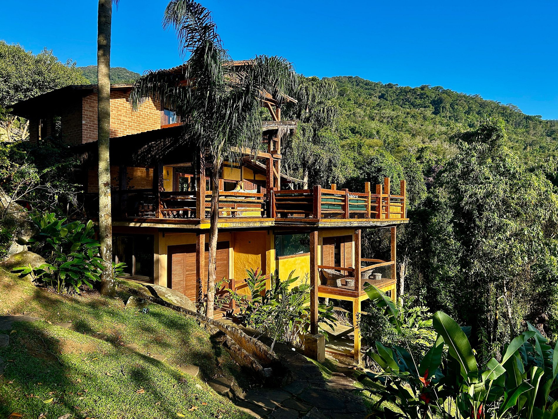 Linda e aconchegante casa em meio à Mata Atlântica, com vista para as montanhas e o mar. Localizada no tranquilo e seguro bairro da Cocaia, um dos mais charmosos de Ilhabela. Um confortável refúgio para se desconectar da rotina. Acomoda até 8 pessoas. São 4 suítes com ar-condicionado. Deliciosa área social, com sala de estar, lareira, TV, canais a cabo, Wi-fi, cozinha, forno a lenha, ampla varanda, jacuzzi aquecida, mesa para refeições ao ar livre e churrasqueira. Seu pet é bem-vindo!