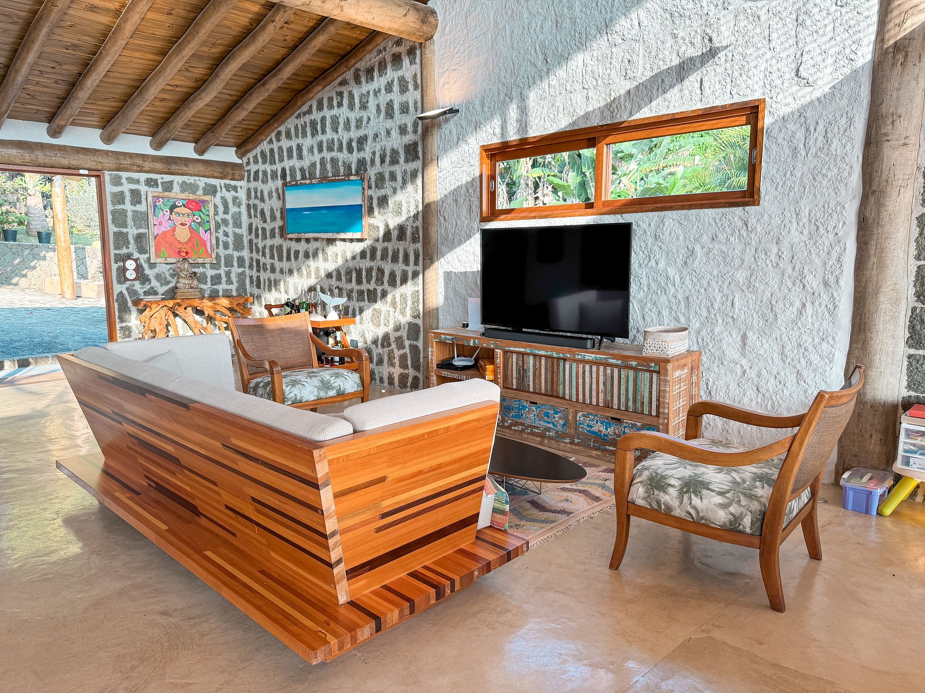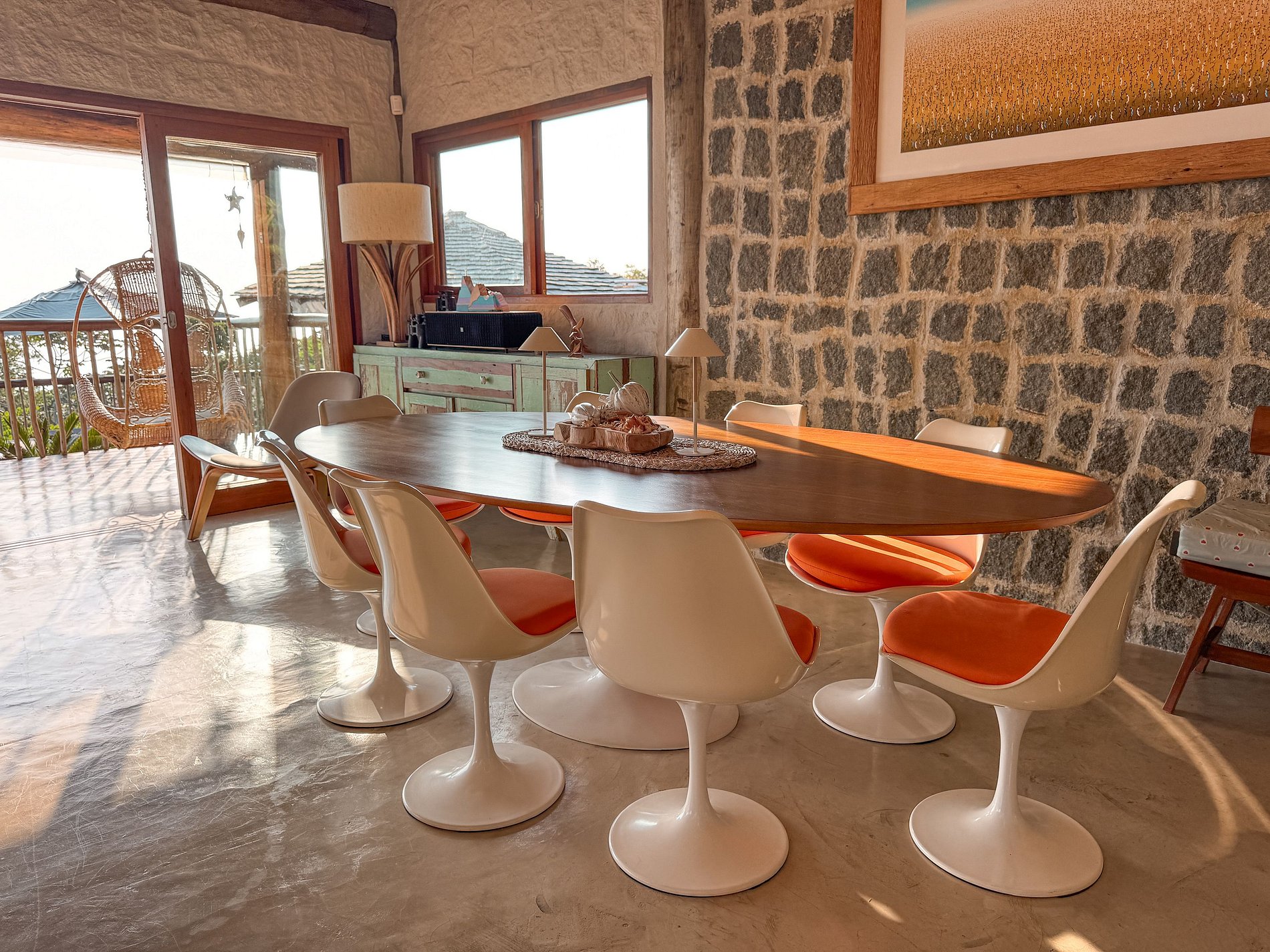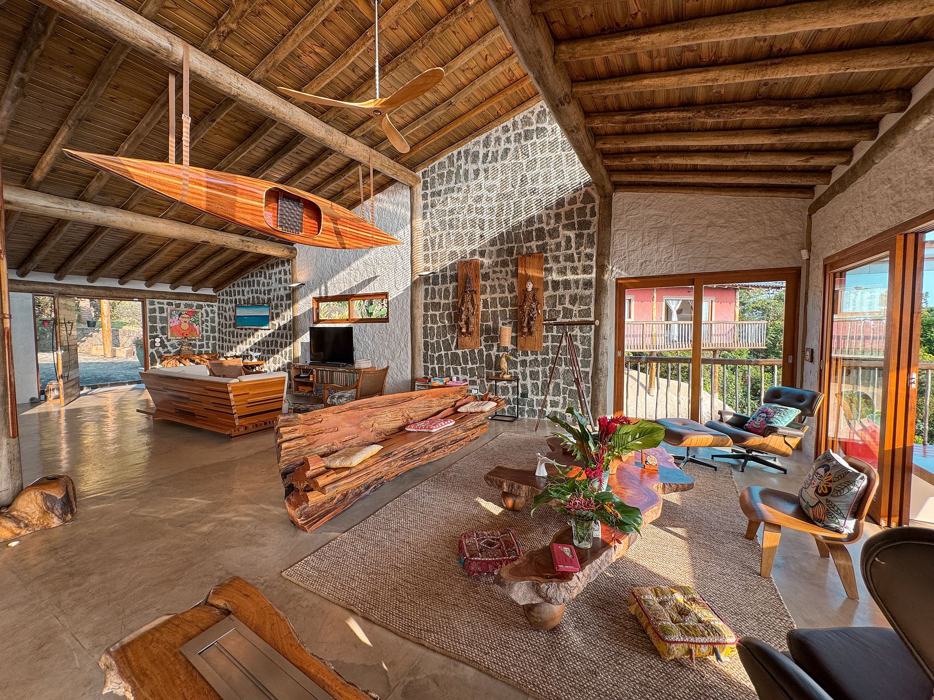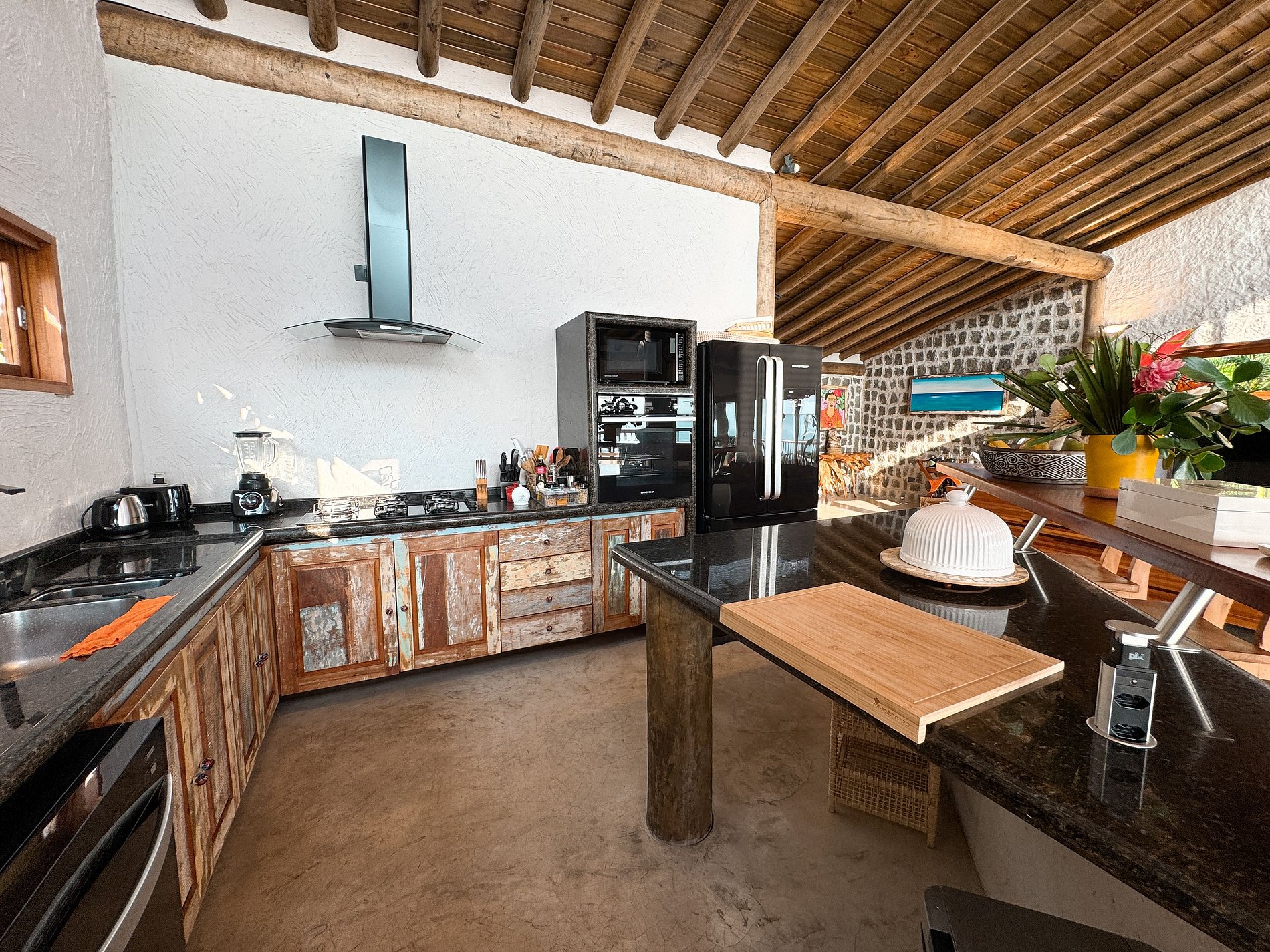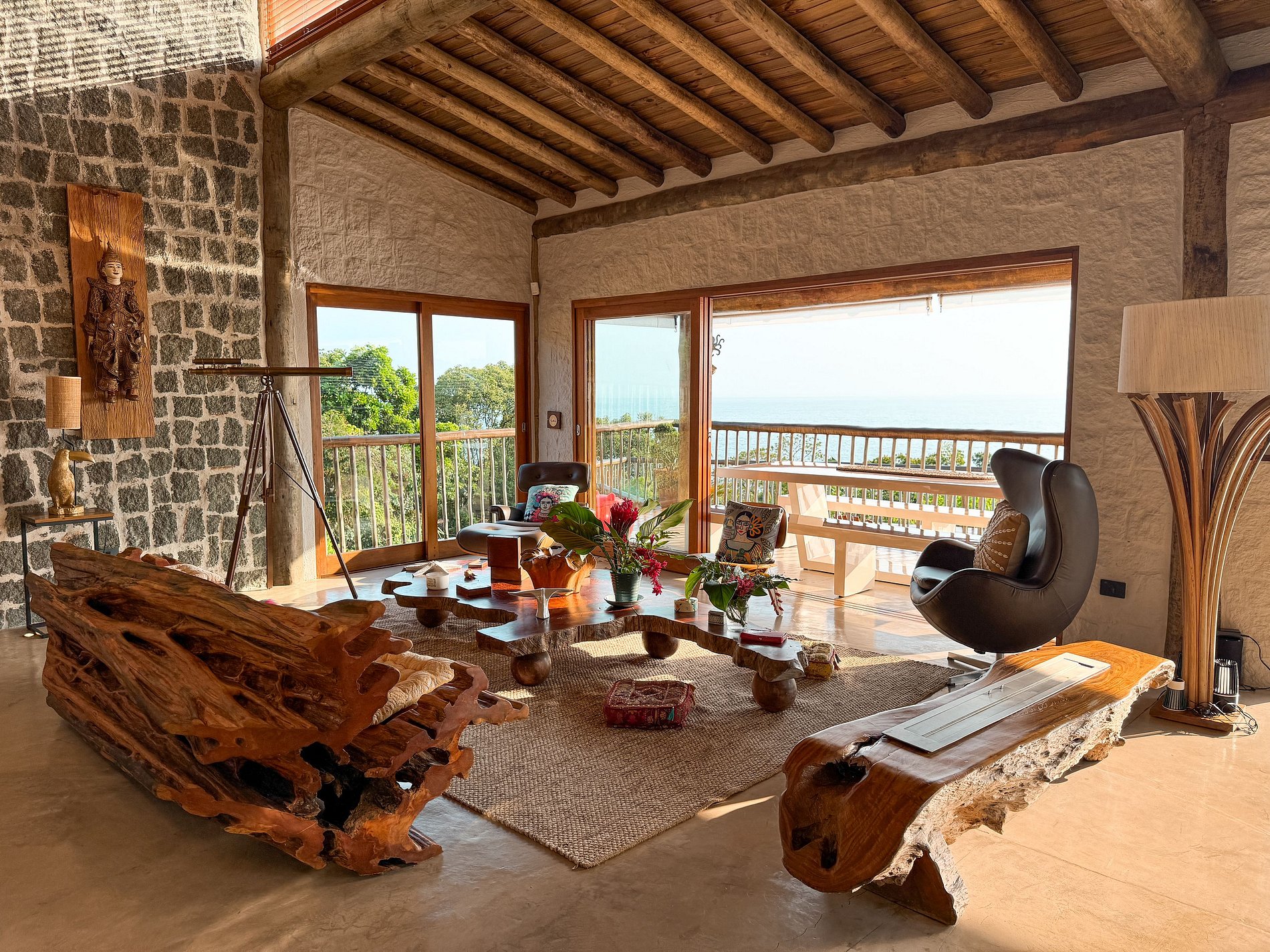 - Área interna ampla, arejada e iluminada, toda voltada para o mar, com salas de estar, TV, jantar e cozinha em ambiente integrado, com lareira, ar-condicionado e uma decoração de muito bom gosto;