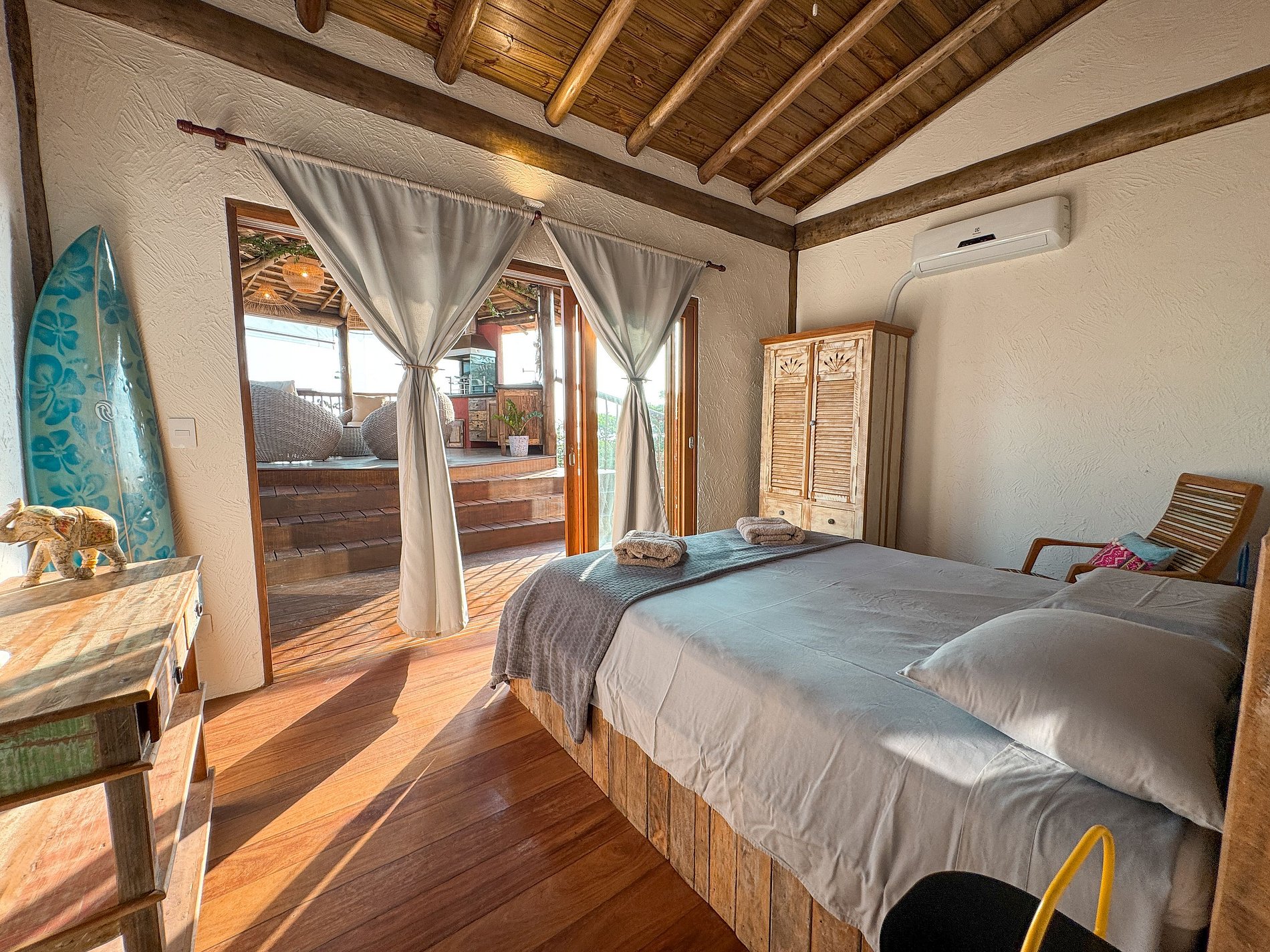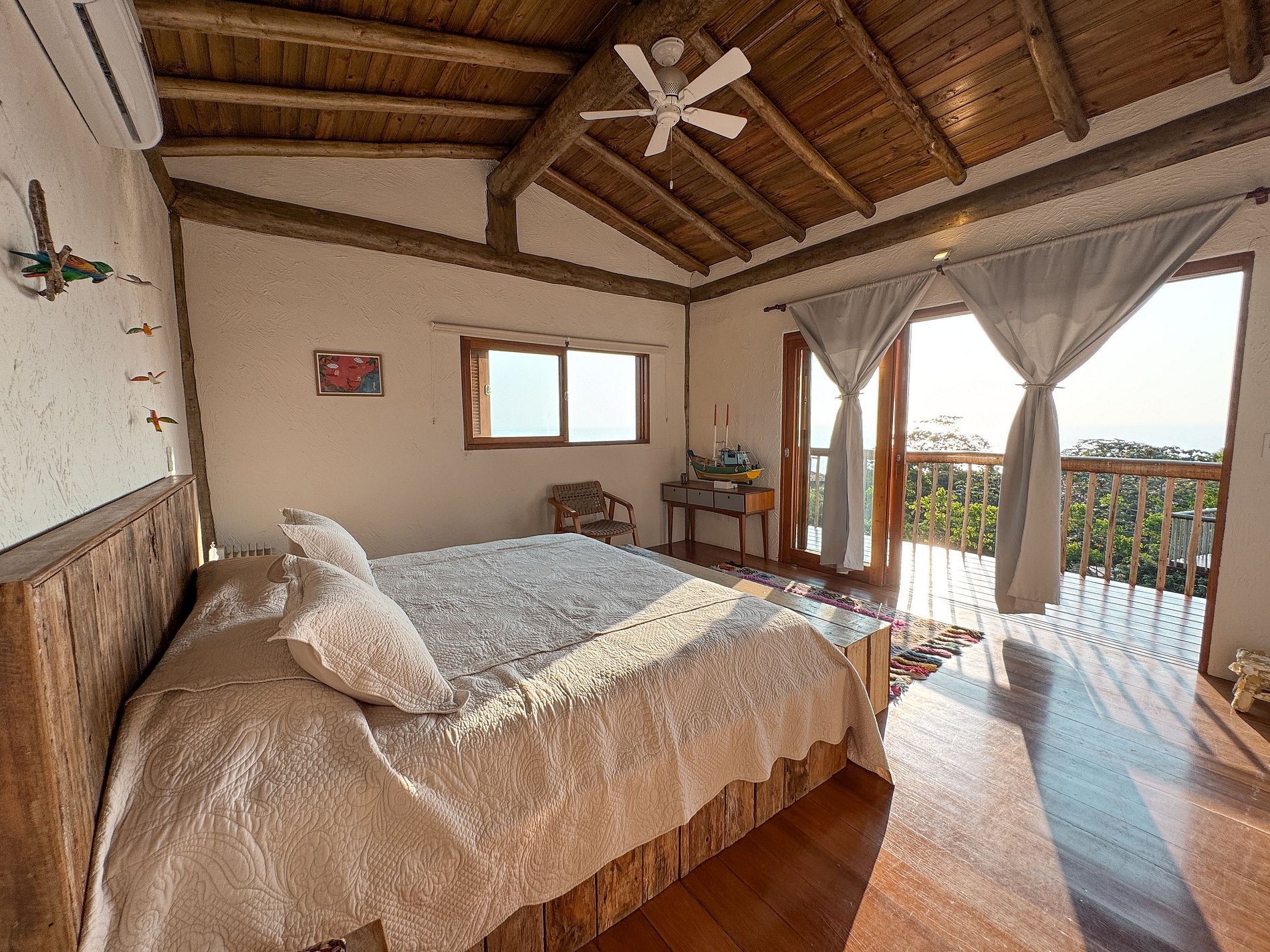 Quarto 2 (anexo à casa) - 1 cama de casal queen, com vista para o mar;