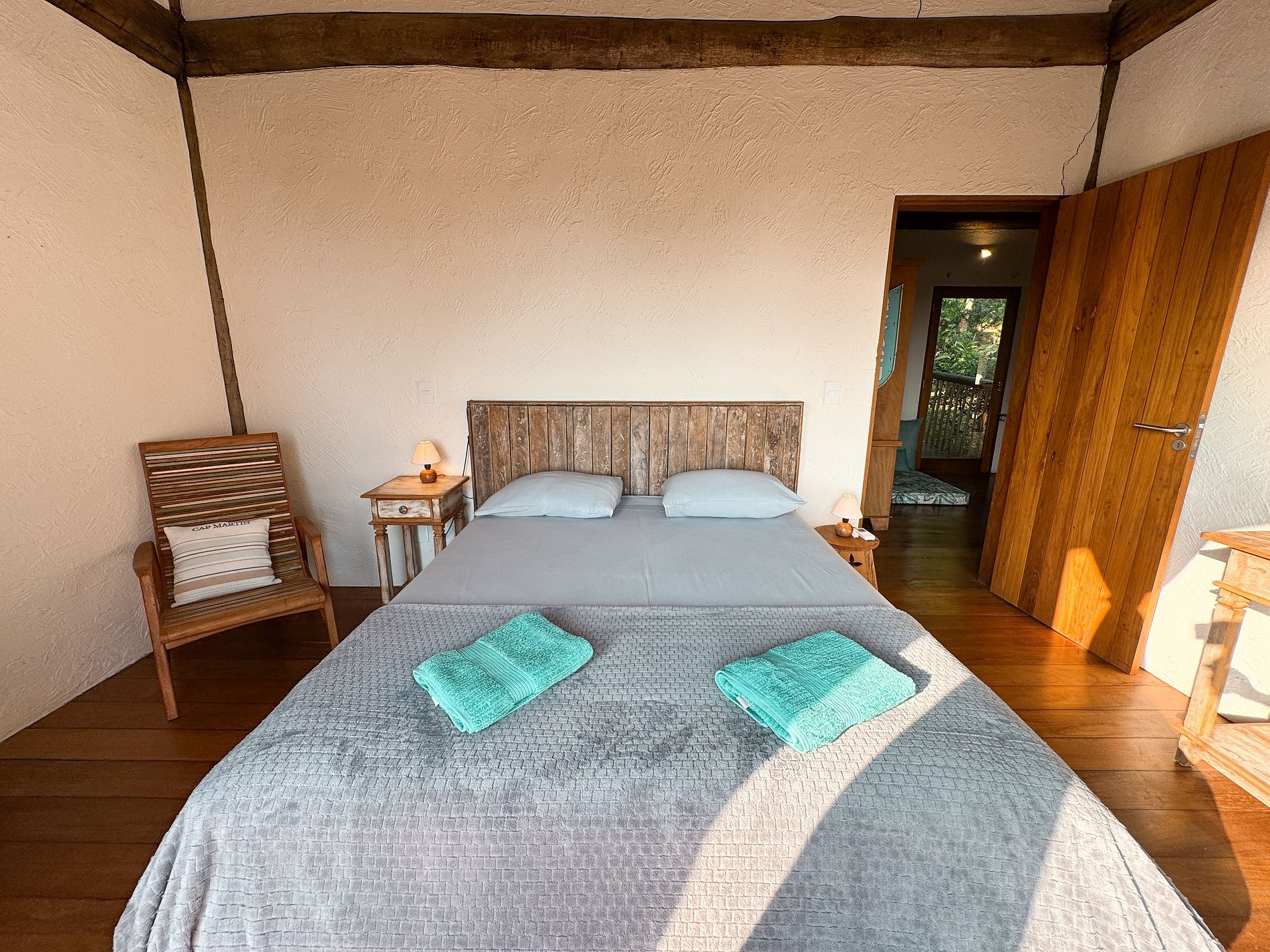 Quarto 1 (anexo à casa) - 1 cama de casal queen, com vista para o mar;