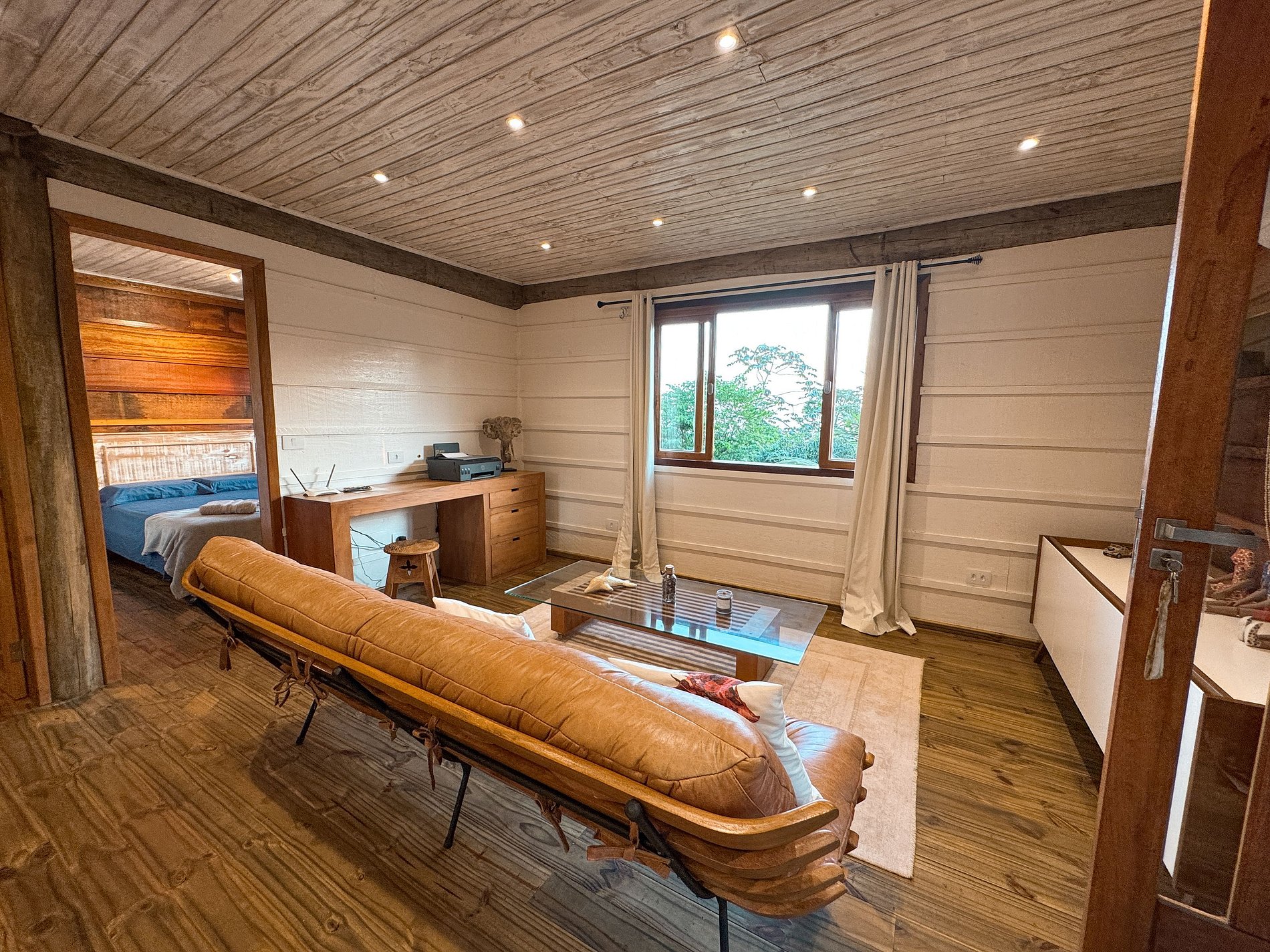 Quarto 3 (externo à casa) - 1 cama de solteiro, pequena sala com espaço home office e mini cozinha.