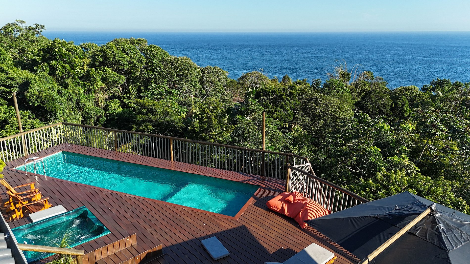 - São 500m2 de área construída, totalmente integrada à natureza, cercada pela exuberante Mata Atlântica e de frente para o mar;