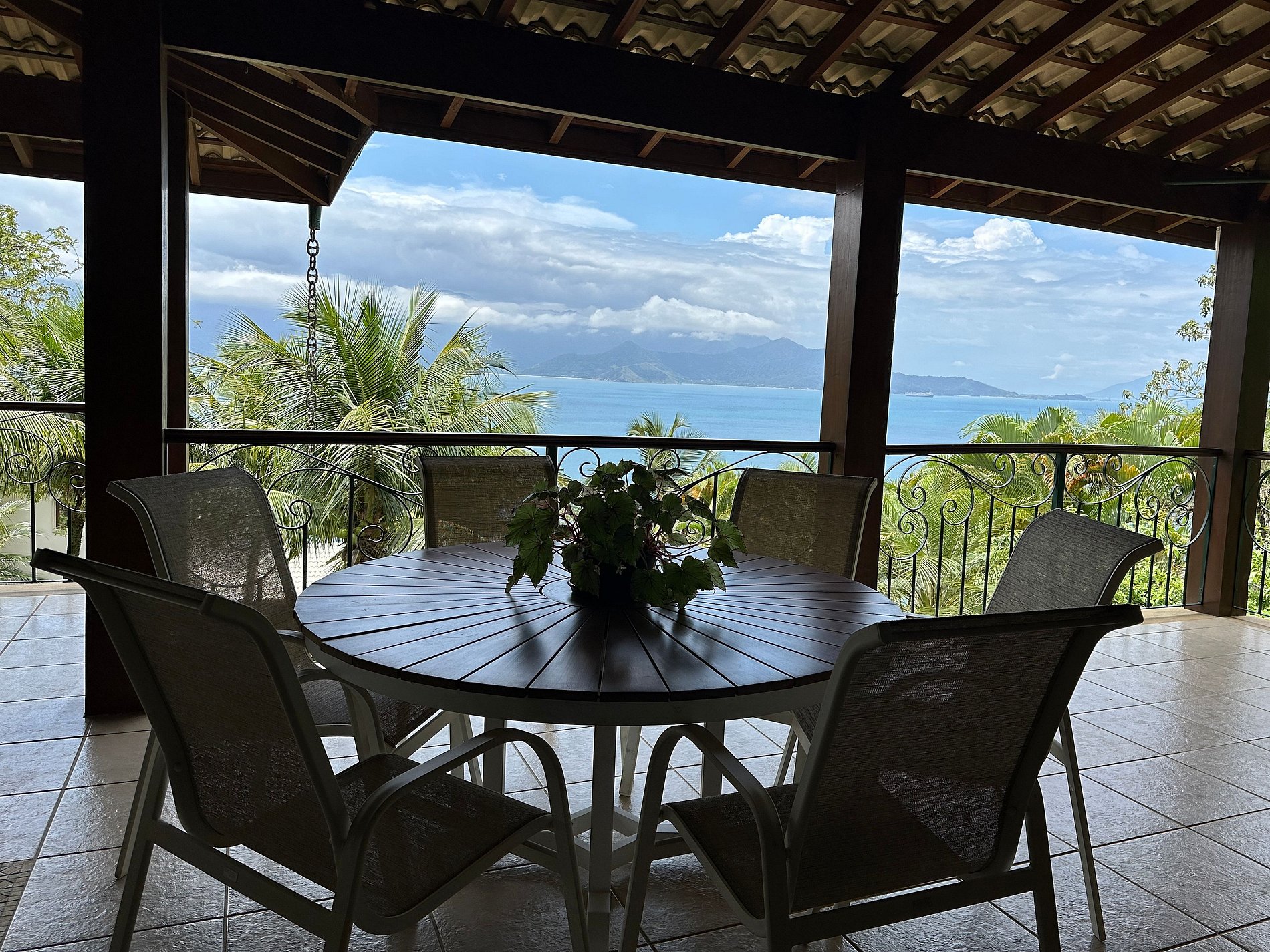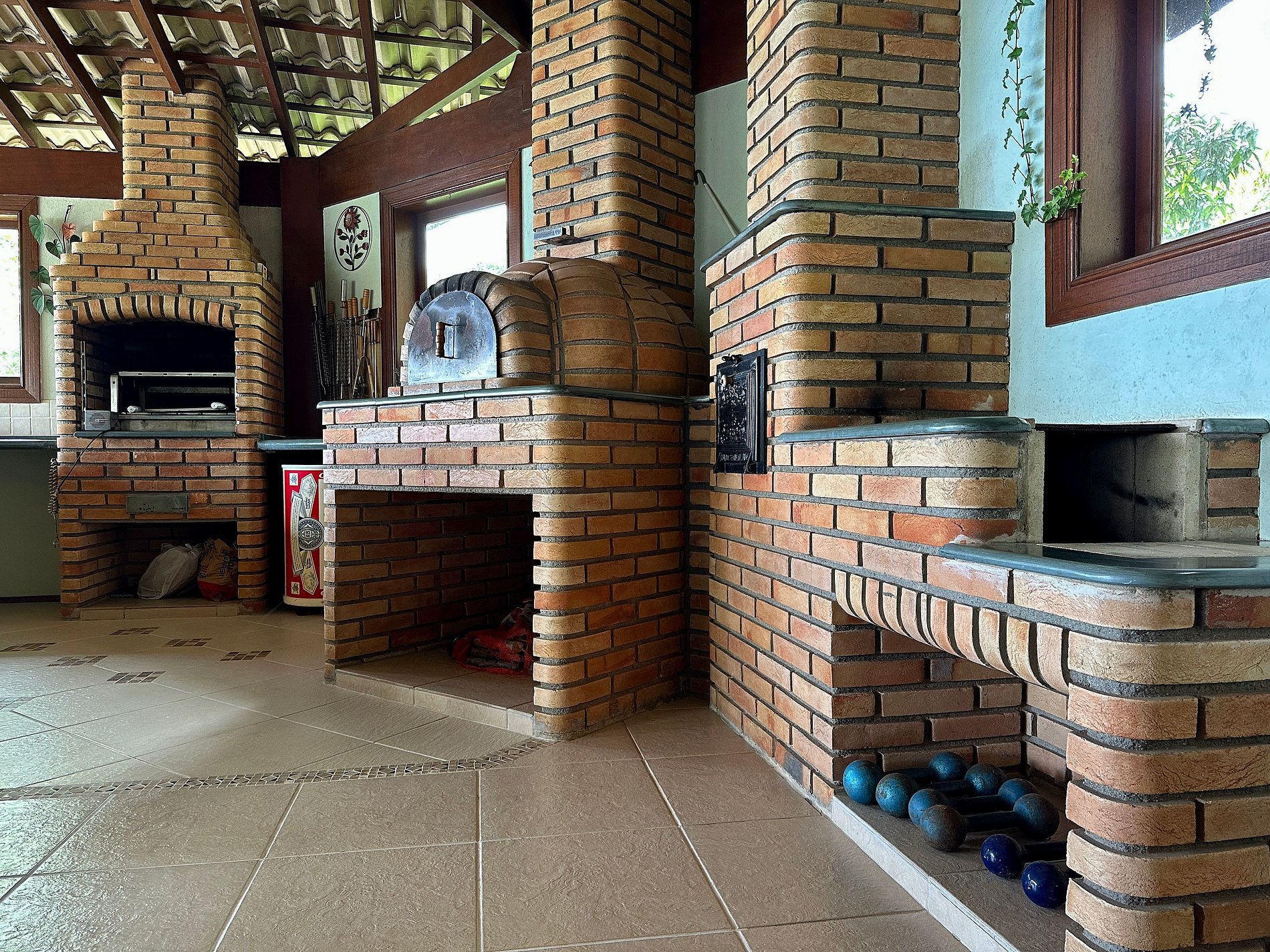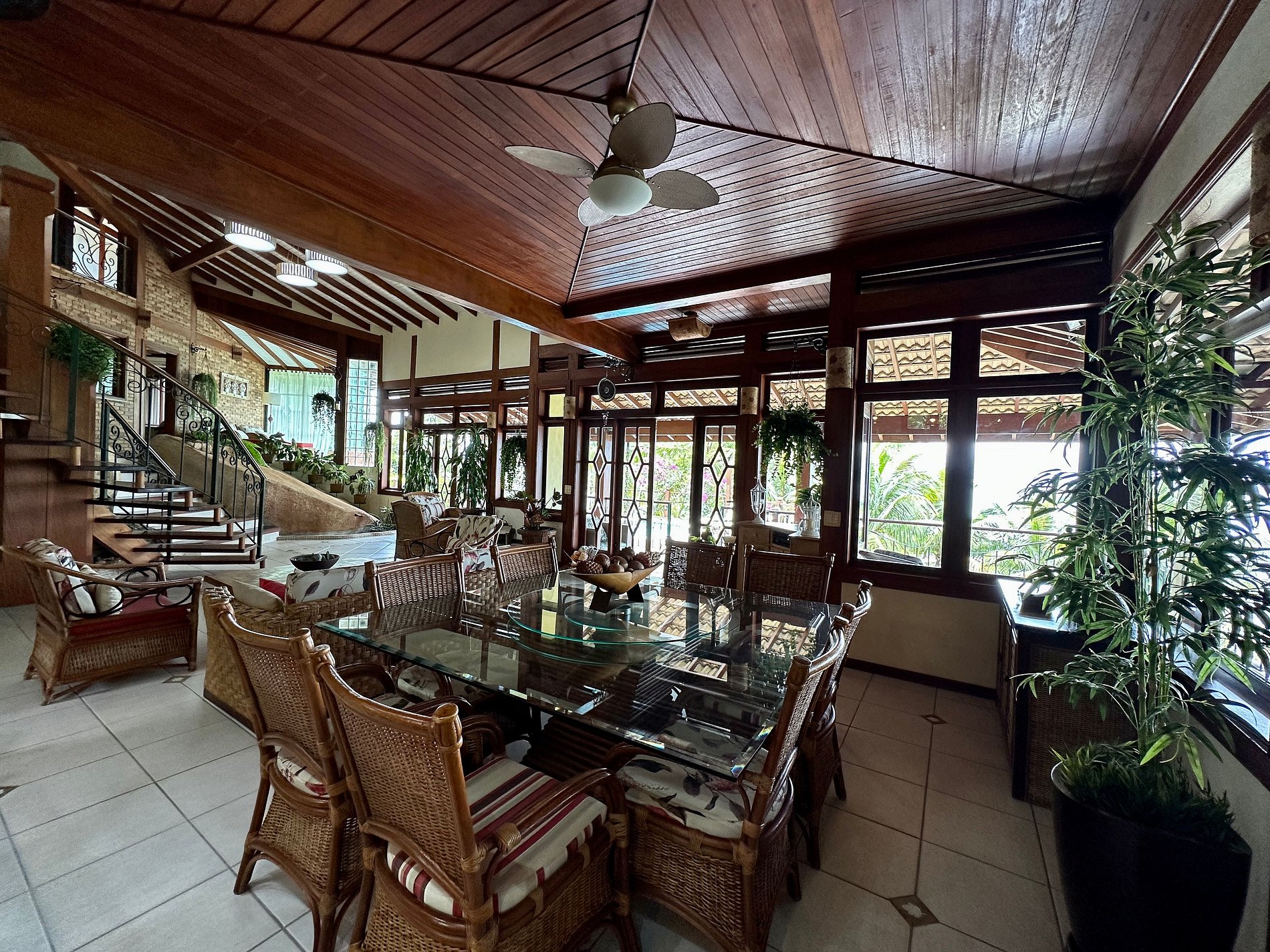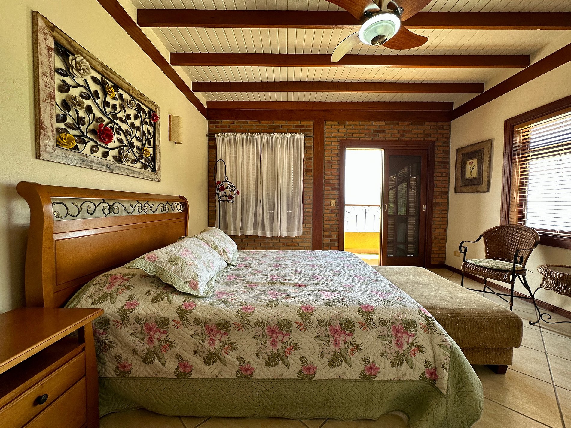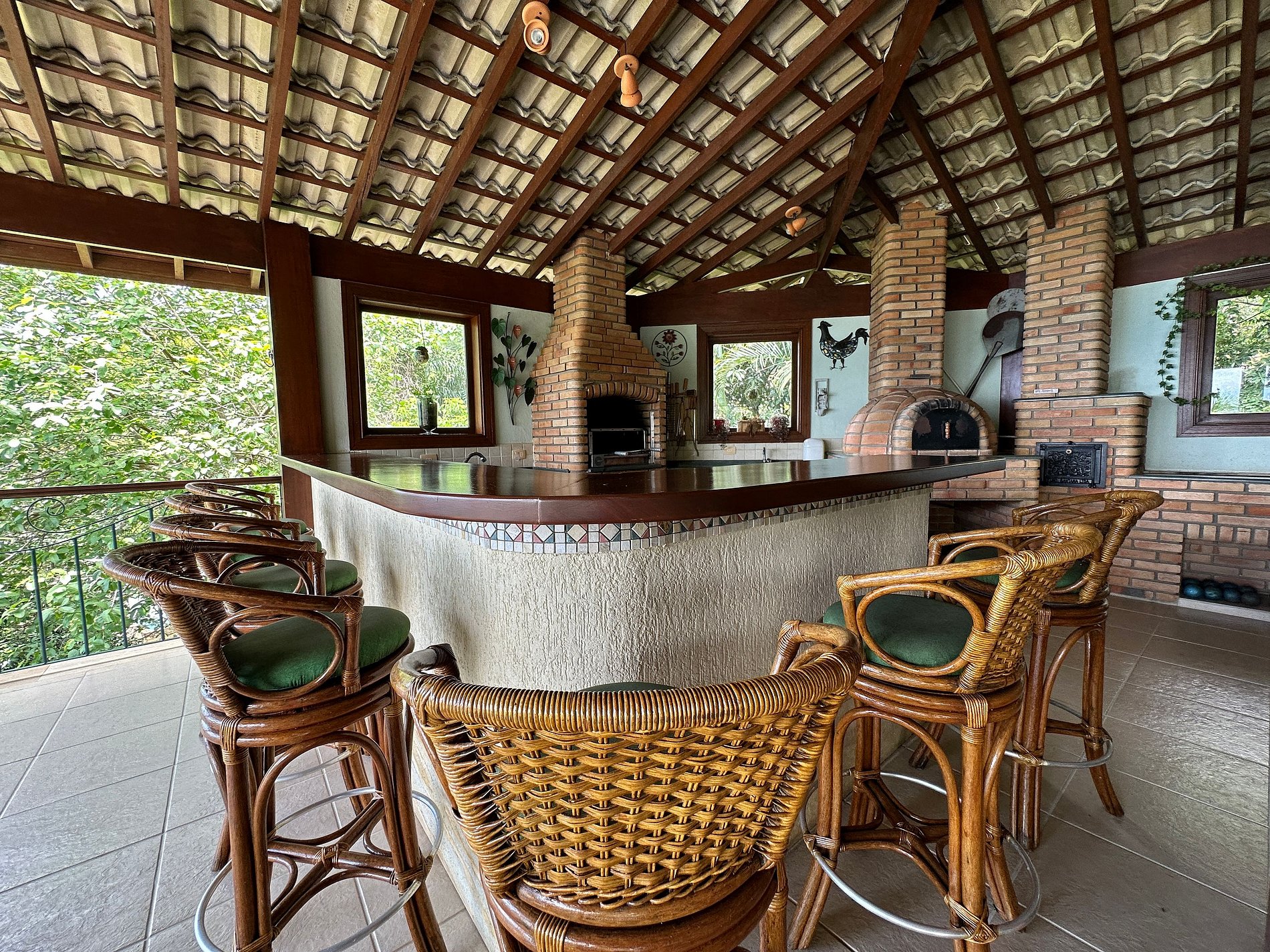 - A área externa conta com varanda gourmet com churrasqueira, forno a lenha e de pizza, piscina com deck de madeira, espreguiçadeiras e uma vista deslumbrante para o mar, com direito a um dos mais belos fins de tarde da ilha;