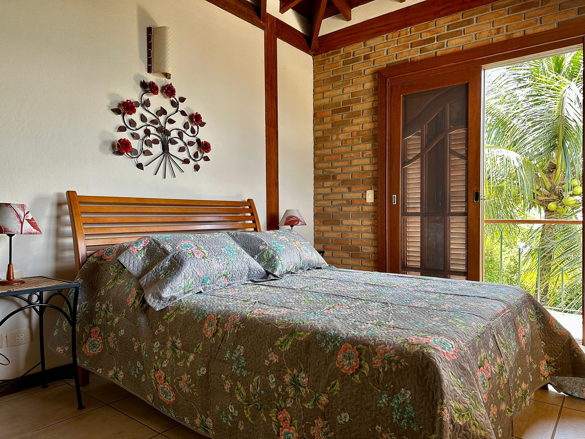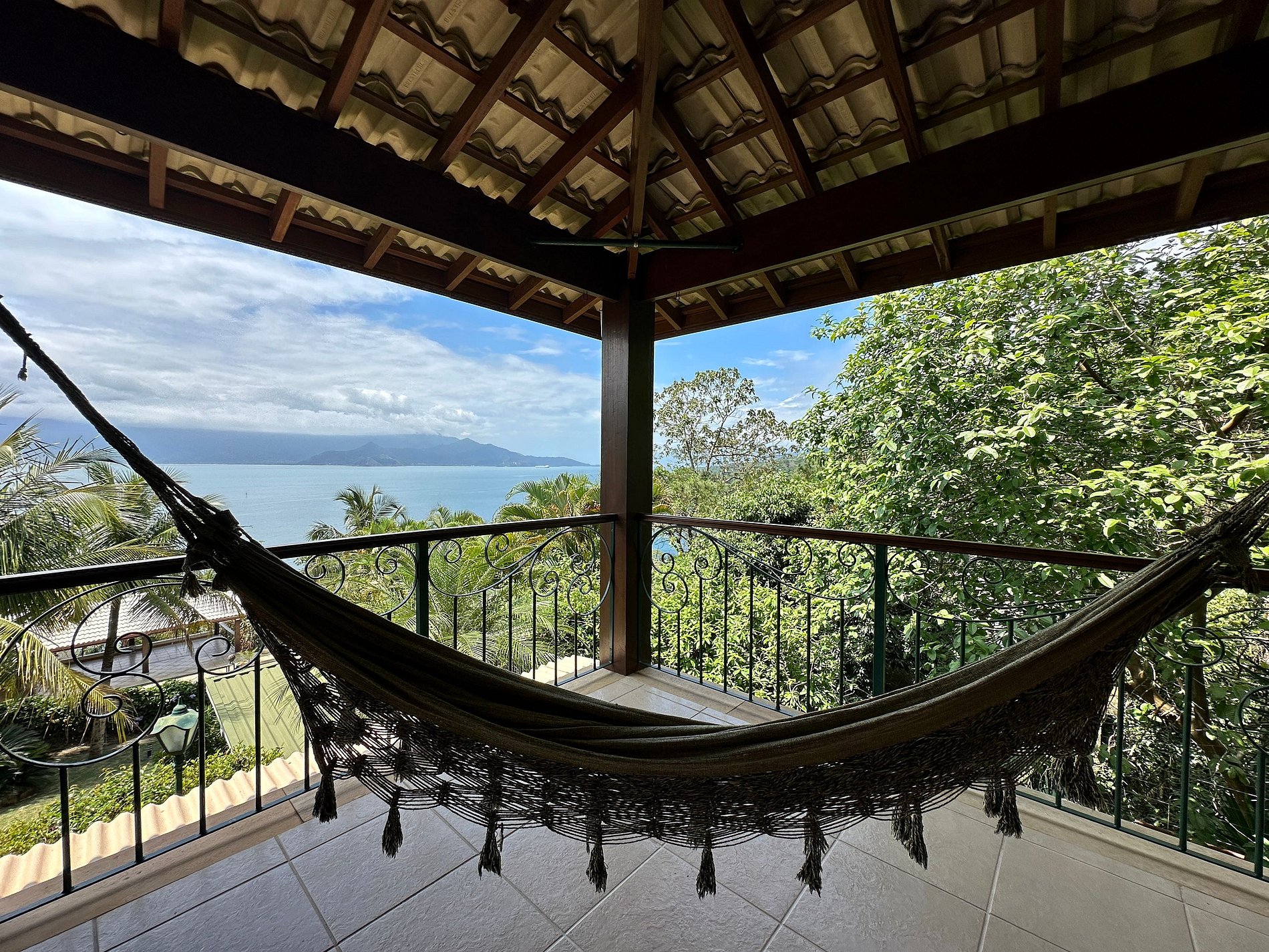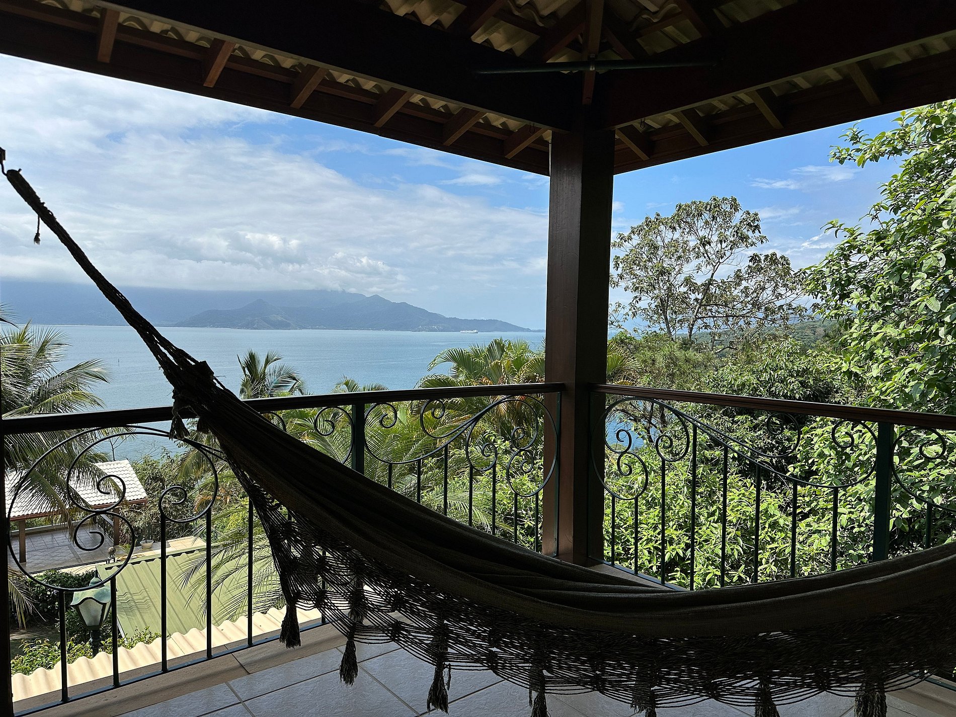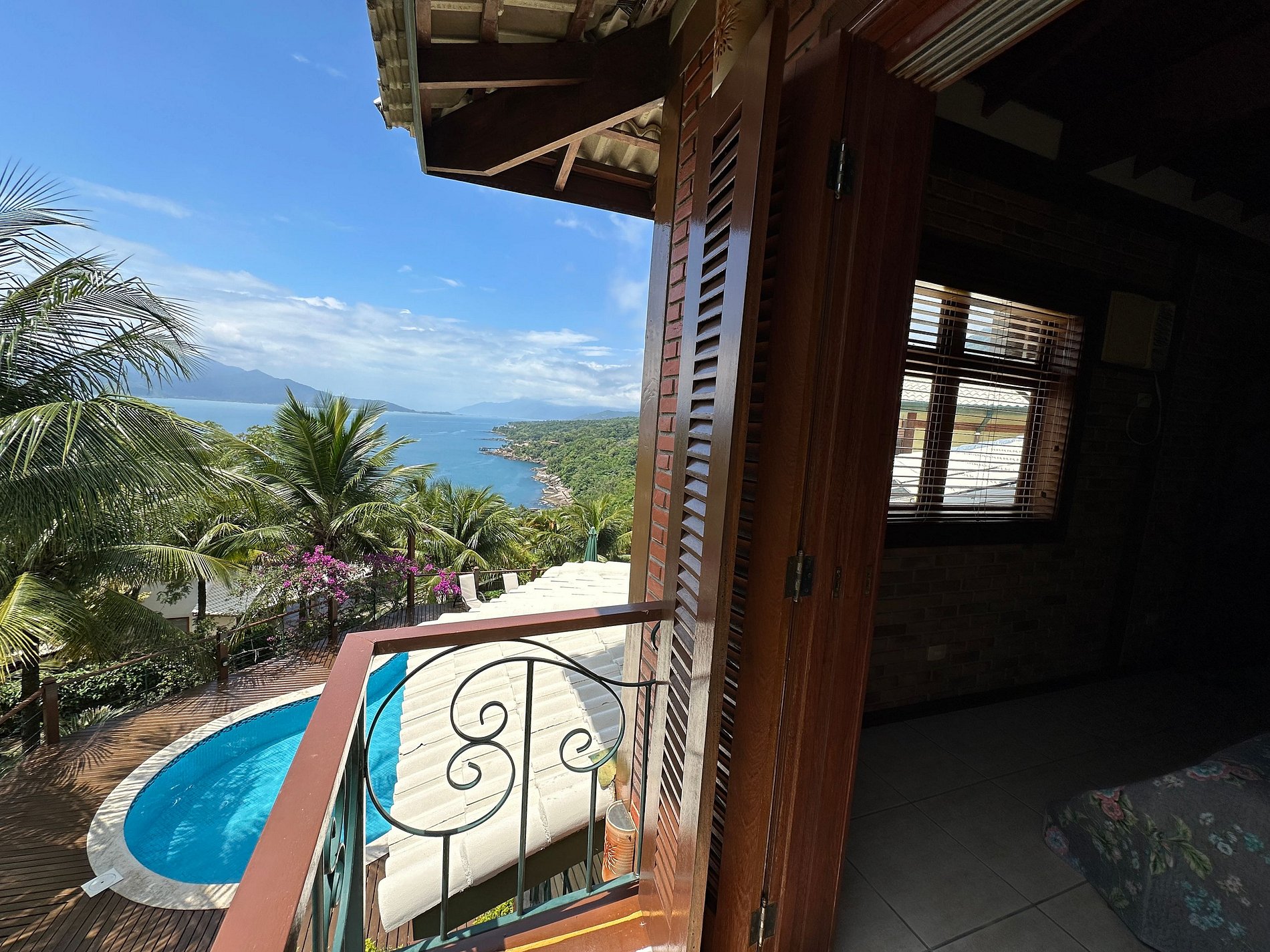 Imersão completa na natureza, com toda segurança e o charme de um pequeno condomínio, localizado no extremo Sul de Ilhabela! Casa linda e confortável, com uma vista de tirar o fôlego. Local tranquilo, perfeito para relaxar, a 6 minutos das praias Veloso e Curral! Ideal para 8 pessoas. São 3 suítes com ar-condicionado. Área externa com varanda, piscina com deck de madeira, churrasqueira, forno a lenha e de pizza. Salas de estar e jantar integradas. Wi-fi, TV e canais a cabo. Seu pet é bem-vindo!