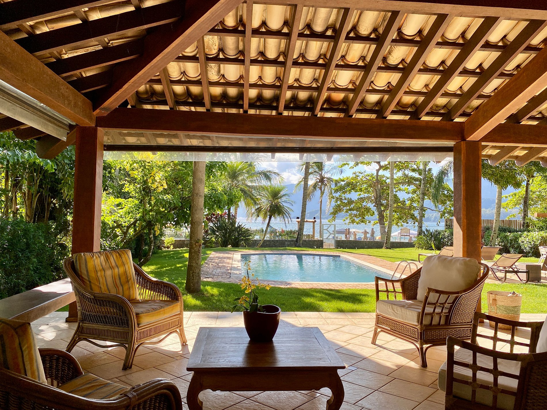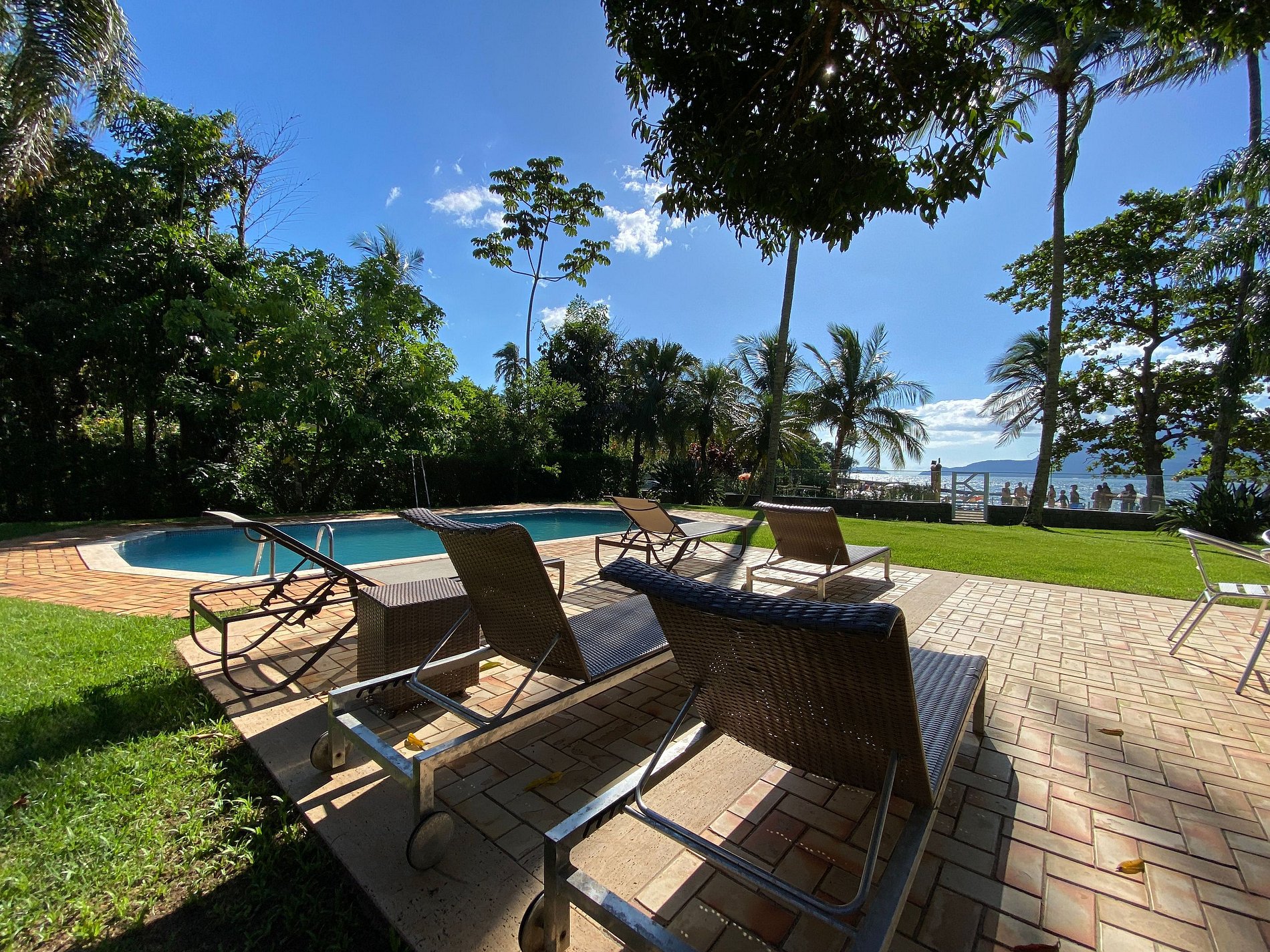 Viva essa experiência incrível em Ilhabela! Casa pé na areia no condomínio São Mathias, em frente à praia da Feiticeira. Basta abrir o portão e está no mar. Acomoda até 10 pessoas. São 5 suítes, todas com ar-condicionado. Amplas, arejadas e iluminadas salas de estar e jantar, além de cozinha completa. Área externa com bela piscina aquecida, ducha, varanda gourmet com churrasqueira, mesa para refeições ao ar livre e redes. Escritório para home office, TV, AppleTV e Wi-fi. É pet friendly!
