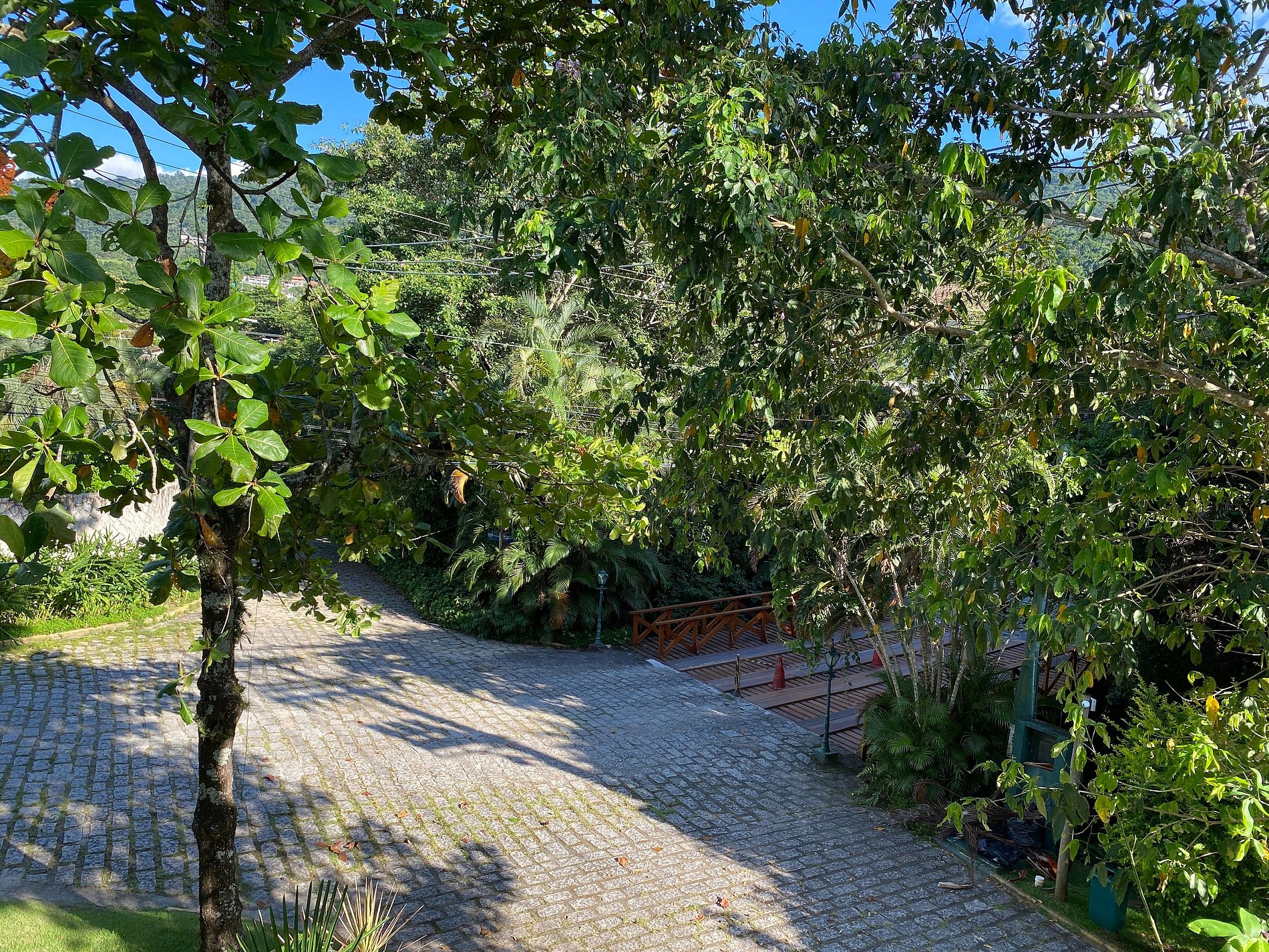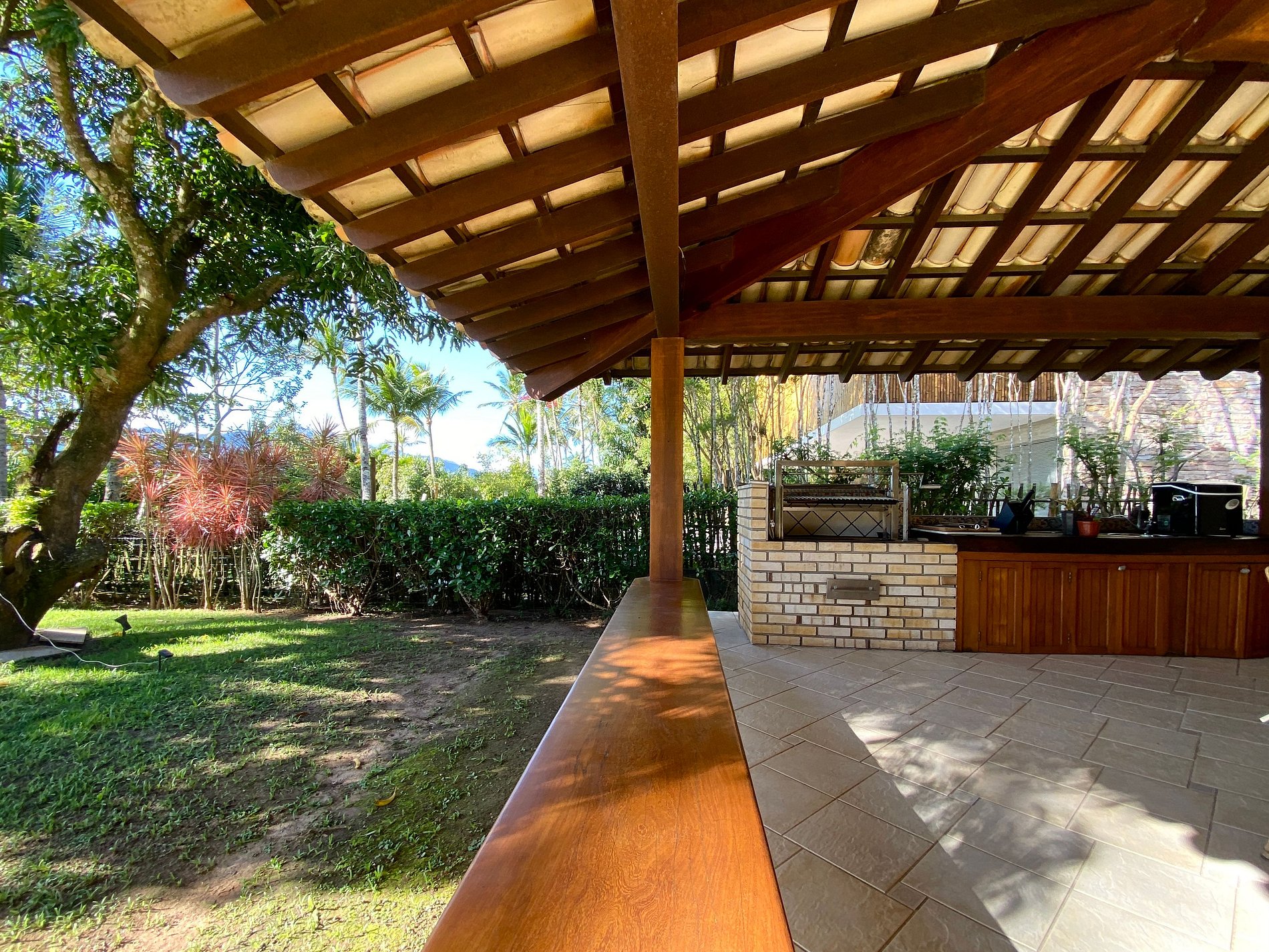 - Área externa sensacional, com uma bela piscina, jardim, ducha e varanda gourmet muito agradável, com churrasqueira, mesa para refeições ao ar livre, redes e vista para o mar e montanha;