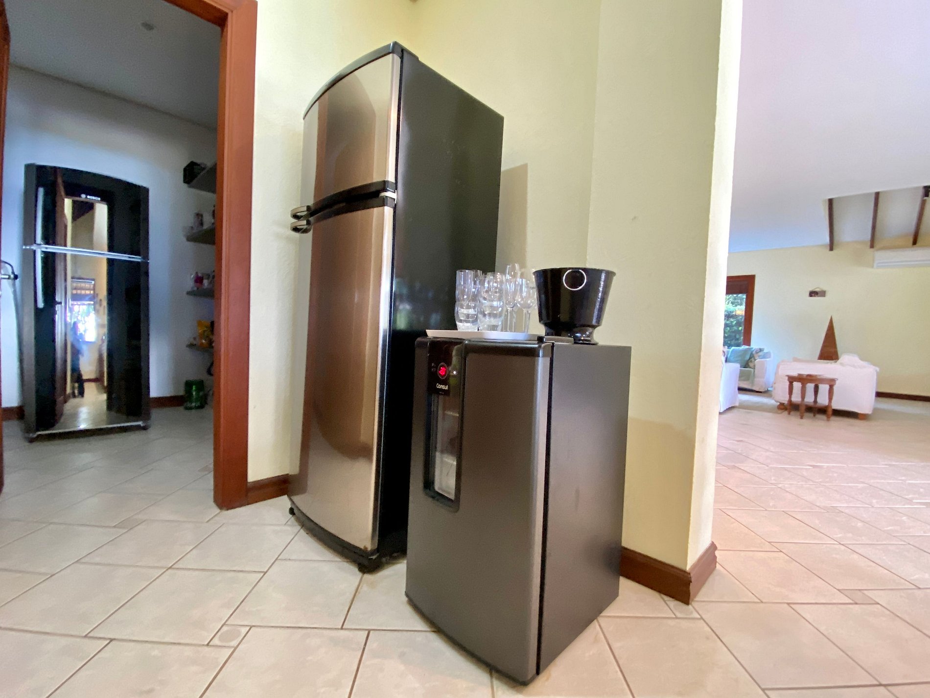 - A parte interna da casa é muito ampla e confortável, conta com lavabo, salas de estar, jantar e cozinha completa, com todos os utensílios necessários para uma estadia perfeita, cervejeira e máquina de gelo;