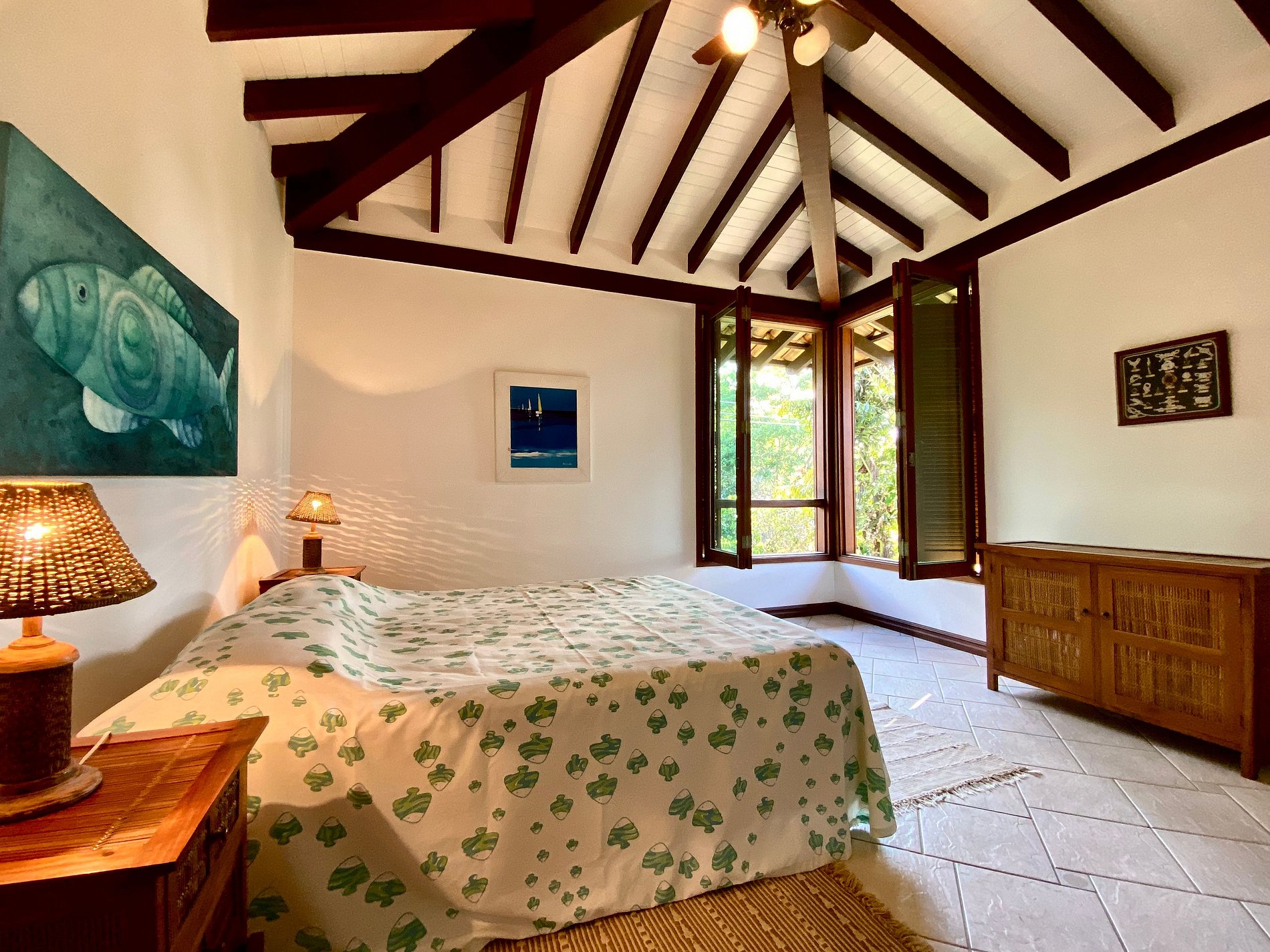 Suíte 2 - 1 cama de casal e vista para o jardim e o mar;