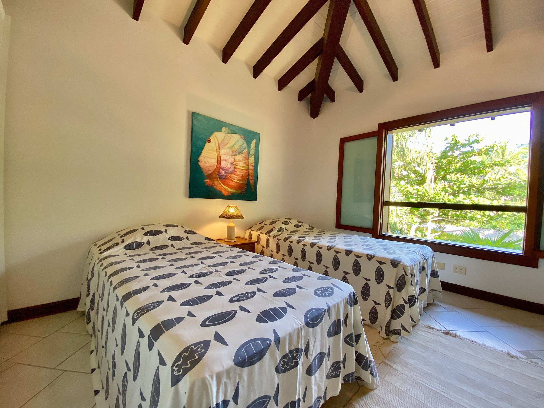 Suíte 3 - 2 camas de solteiro, reversíveis para 1 cama de casal, com vista para o jardim e o mar;