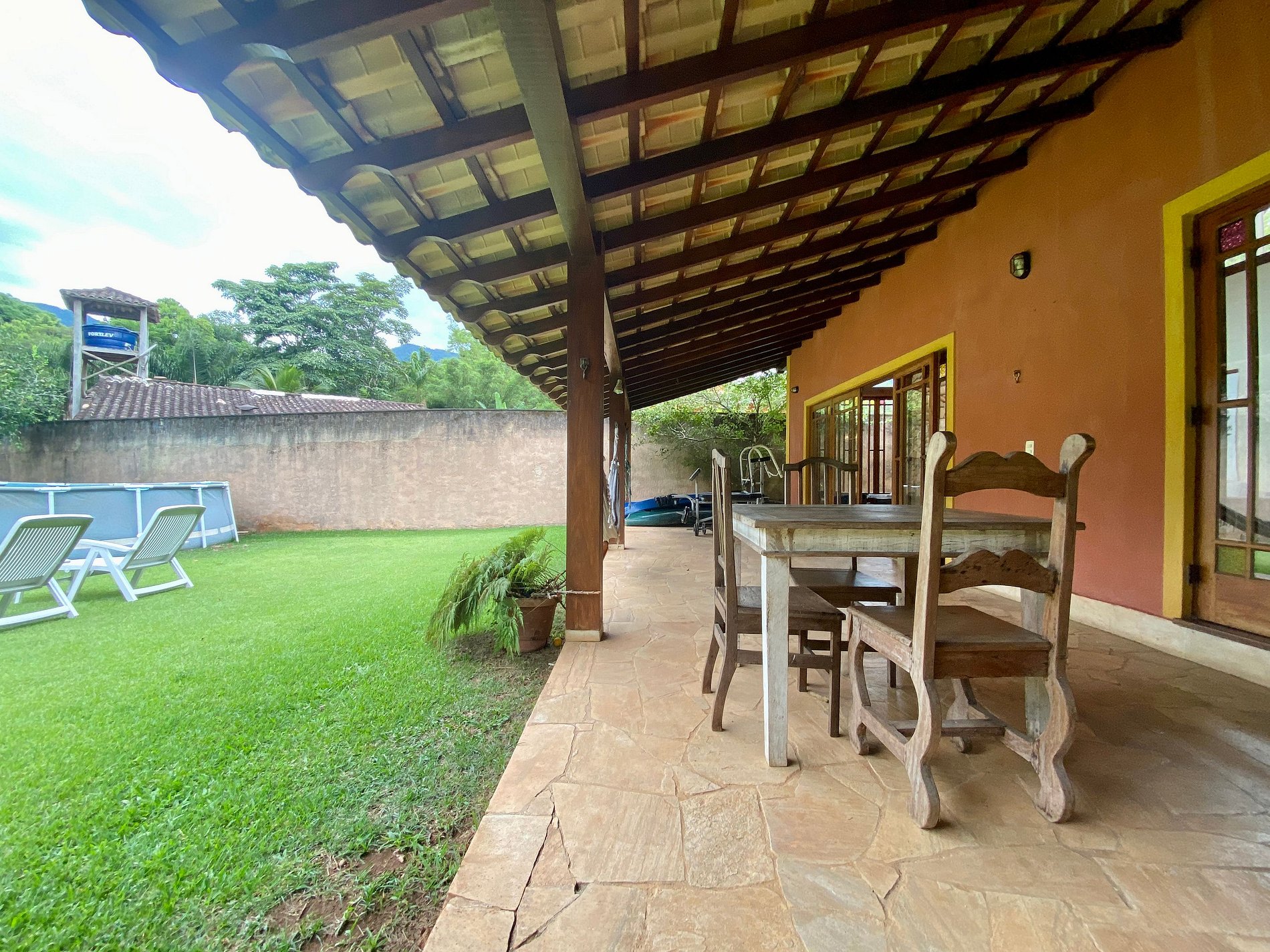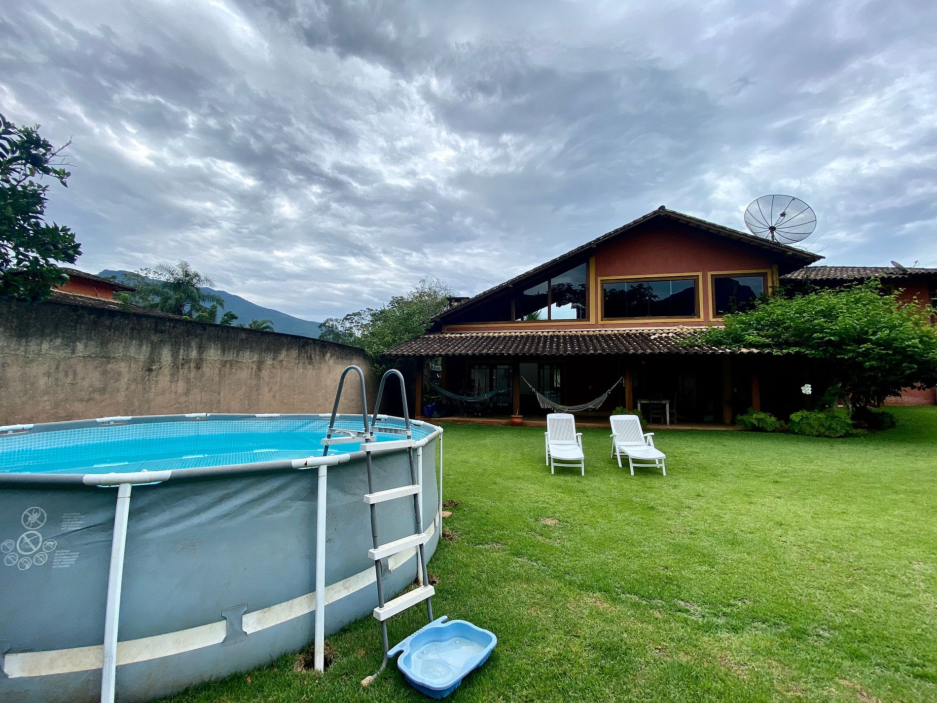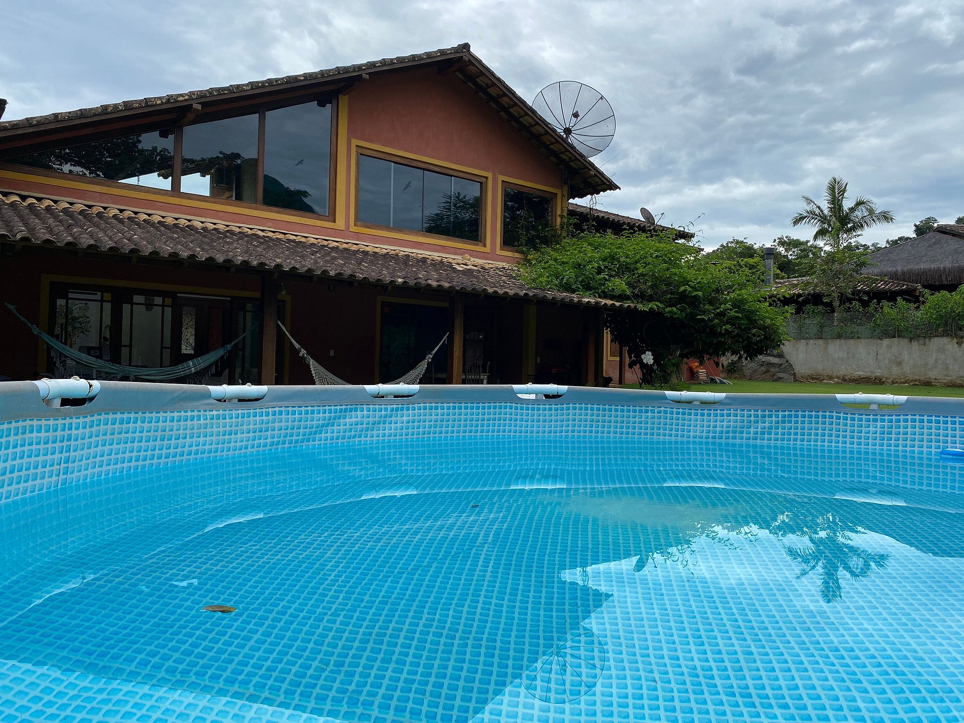 ATENÇÃO: A piscina é montável e estará preparada para uso dos hóspedes. Pedimos atenção no uso, para evitar danos à sua estrutura. Crianças devem estar sempre supervisionadas.