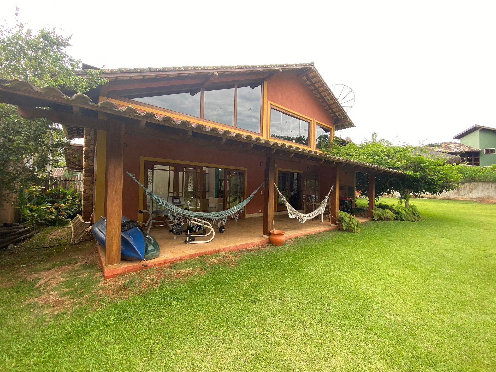 O imóvel é melhor e bem mais espaçoso que anunciado, os quartos bem espaçosos, lavabo ao lado da sala de jantar, iluminação natural, cozinha muito bem equipada, não houve nada que precisássemos e não houvesse disponível. Na área externa há redes perfeitas para relaxamento enquanto se ouve o rio ao fundo do quintal, inclusive o gramado estava muito bem cuidado e todo cercado. O bairro é muito bom com padaria e hortifruti próximos da casa, bem perto também de outros comércios e da orla da praia, inclusive é chegar em apenas 18 minutos a pé ao Pereque.