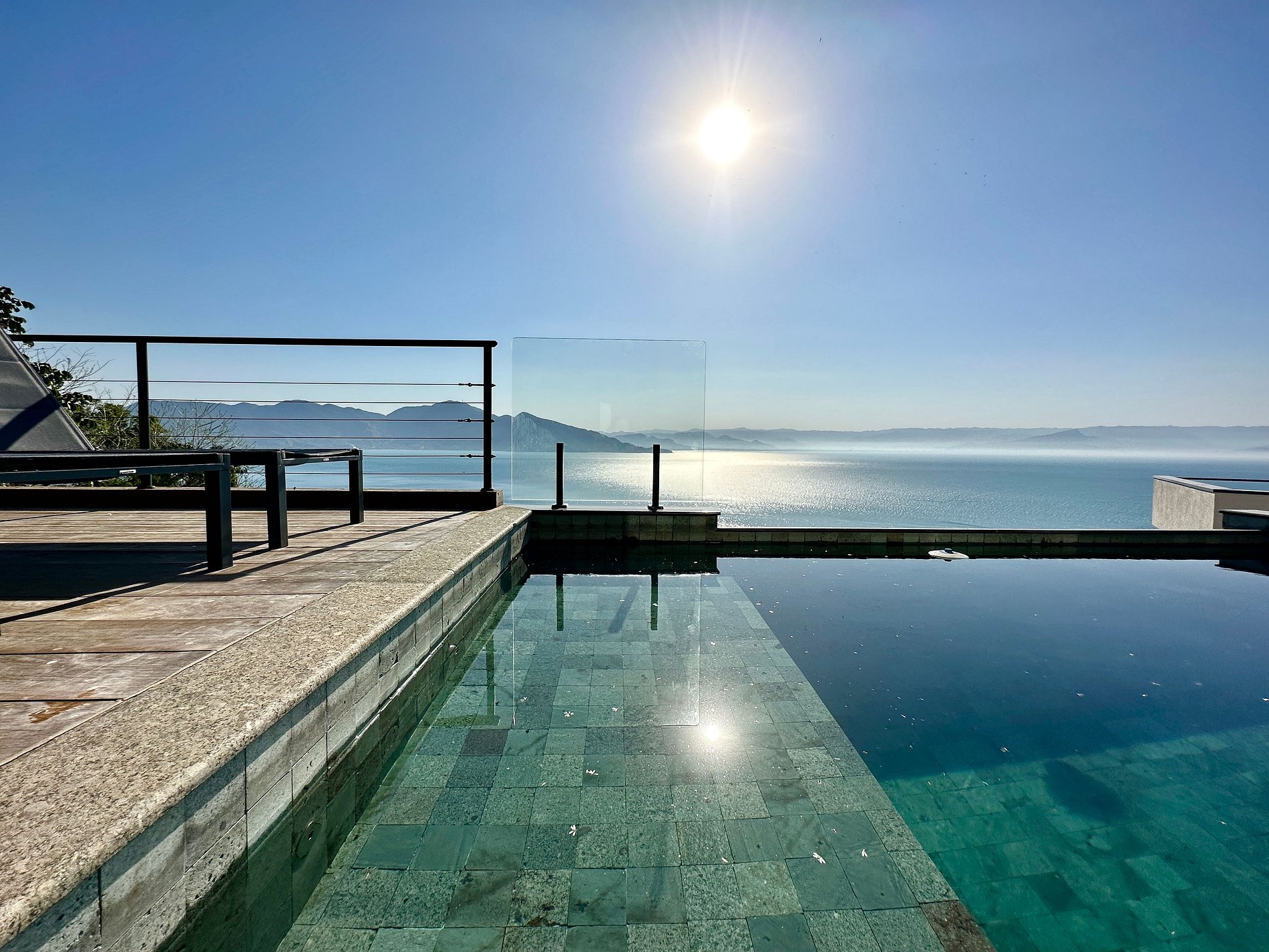 A piscina, apesar de ter aquecimento solar, não aqueceu em nenhum dos dias que ficamos - mesmo ao sol das 9am-5:30pm…