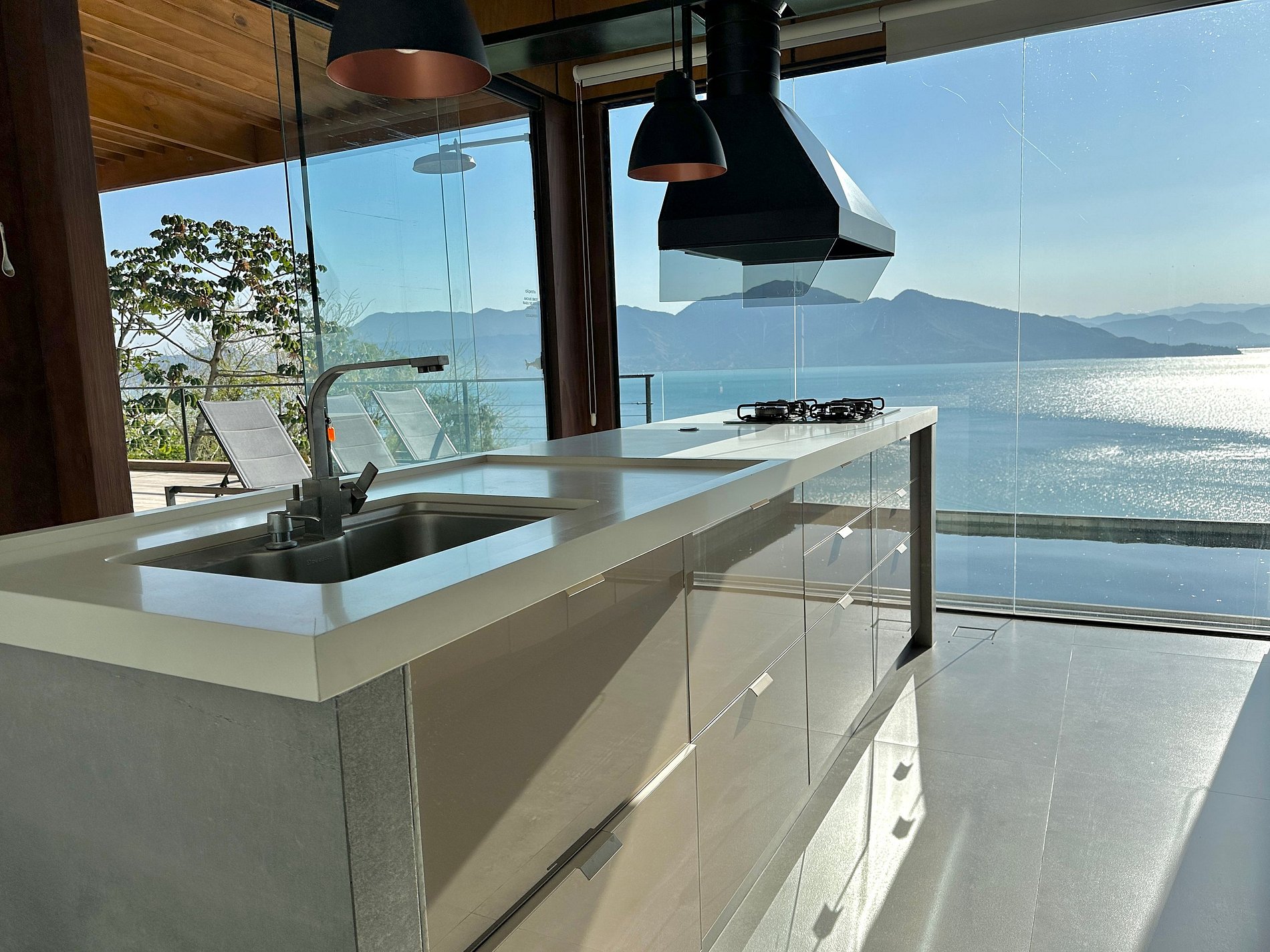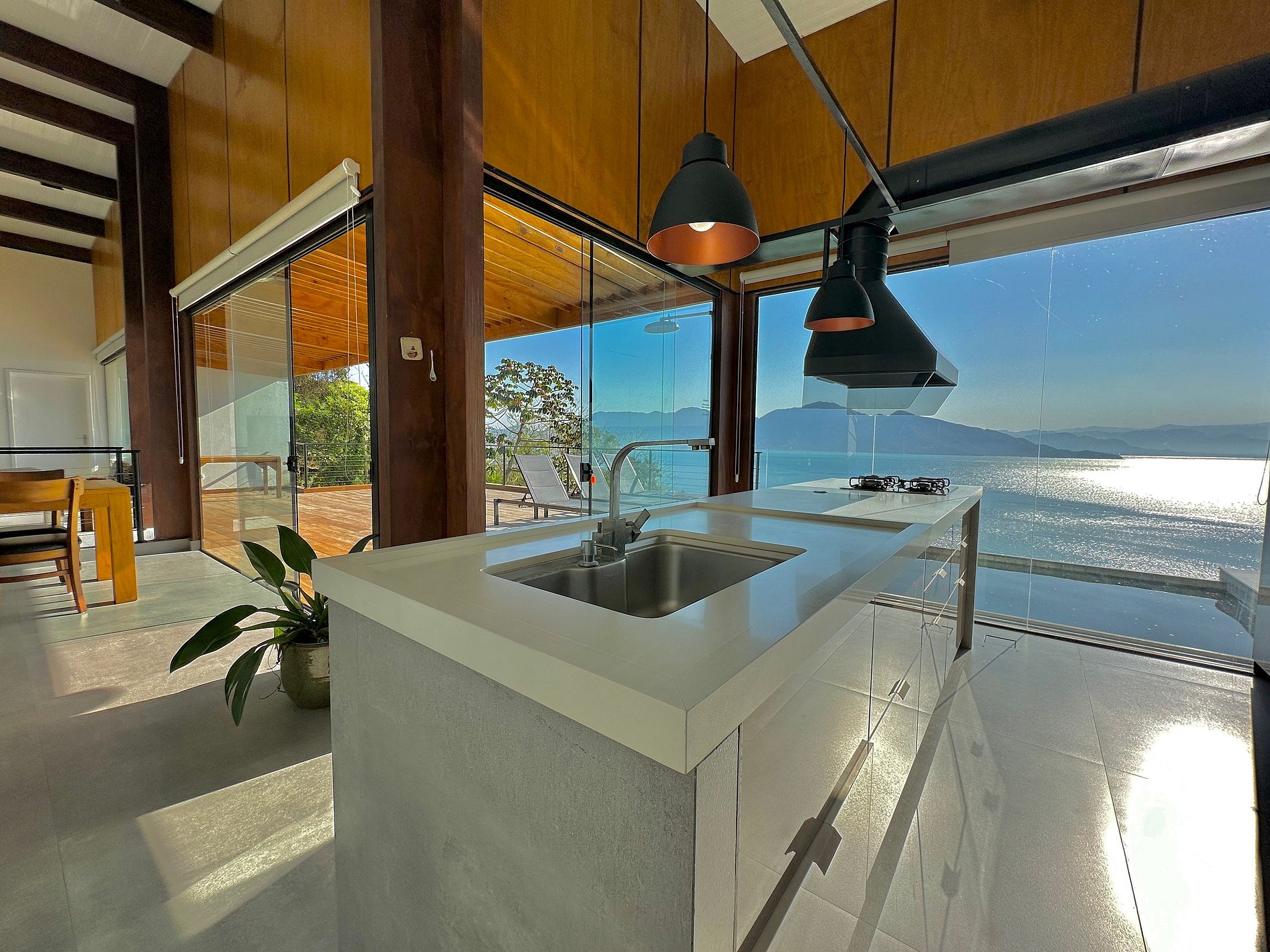 Casa espetacular! A vista é simplesmente incrível. Da sala, dos quartos, da cozinha… não importa onde você esteja, sempre verá o mar imenso à sua frente. Um espetáculo que faz toda a diferença!