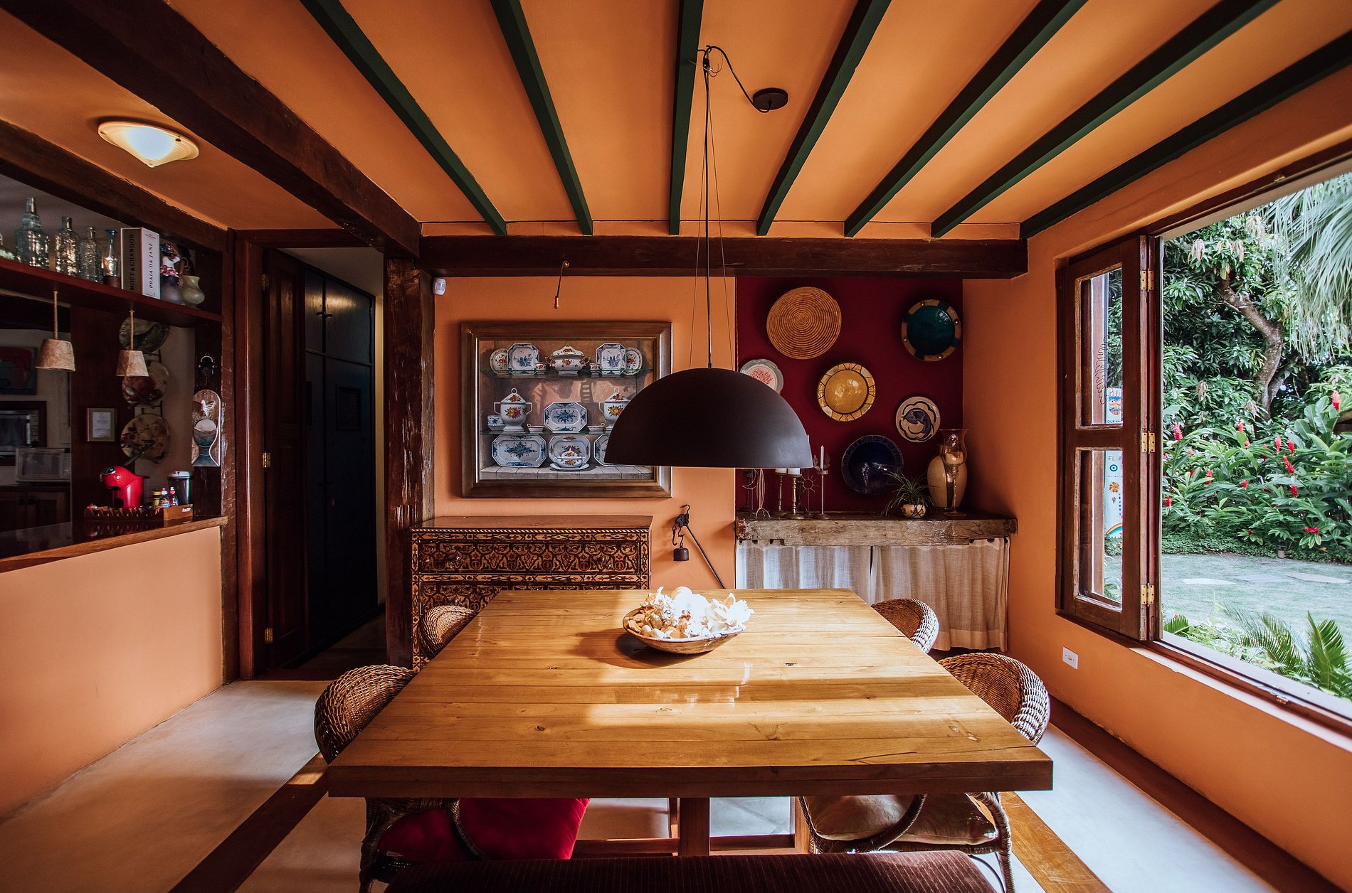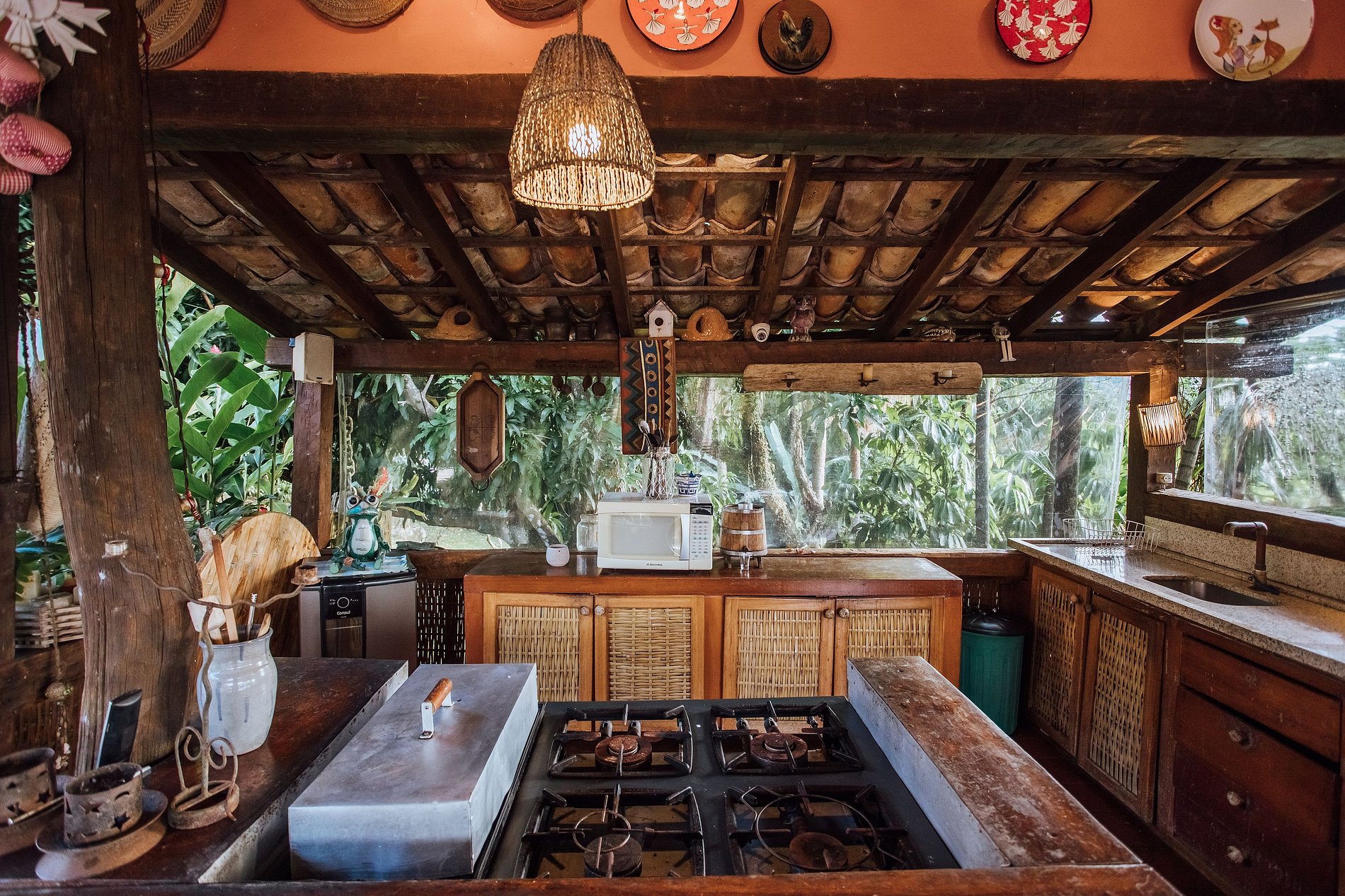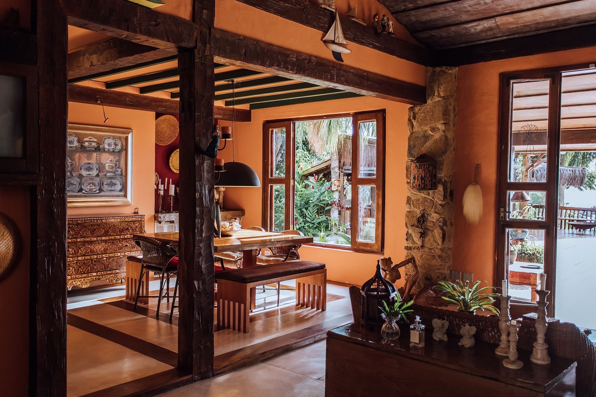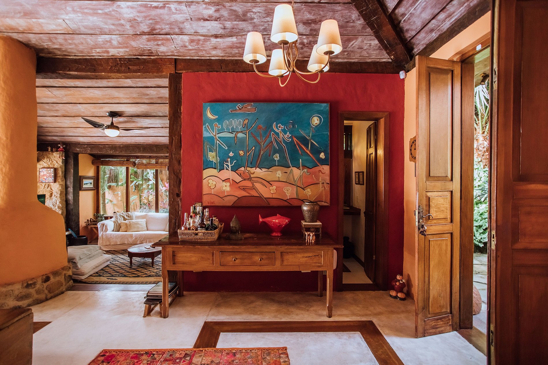 Todos os ambientes da casa são ricamente decorados e charmosos. Desde as salas internas até a enorme área externa que contempla a área de convivência, cozinha completa, mesas e bancos perfeitos para longas conversas.