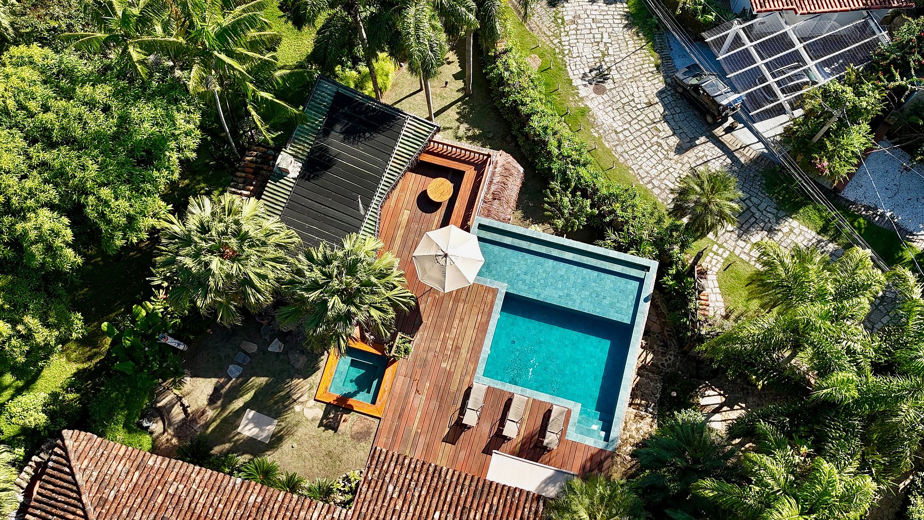 - O espaço externo proporciona um conforto em cada cantinho, conta com um deck extenso e coberto de muito verde. A piscina é um show à parte, com borda infinita e uma vista deslumbrante para o mar. Espreguiçadeiras dentro e fora d'água, SPA aquecido, área gourmet com mesa para refeições, fogão, chapa, cervejeira, um belo orquidário e lago com carpas para um momento de meditação;