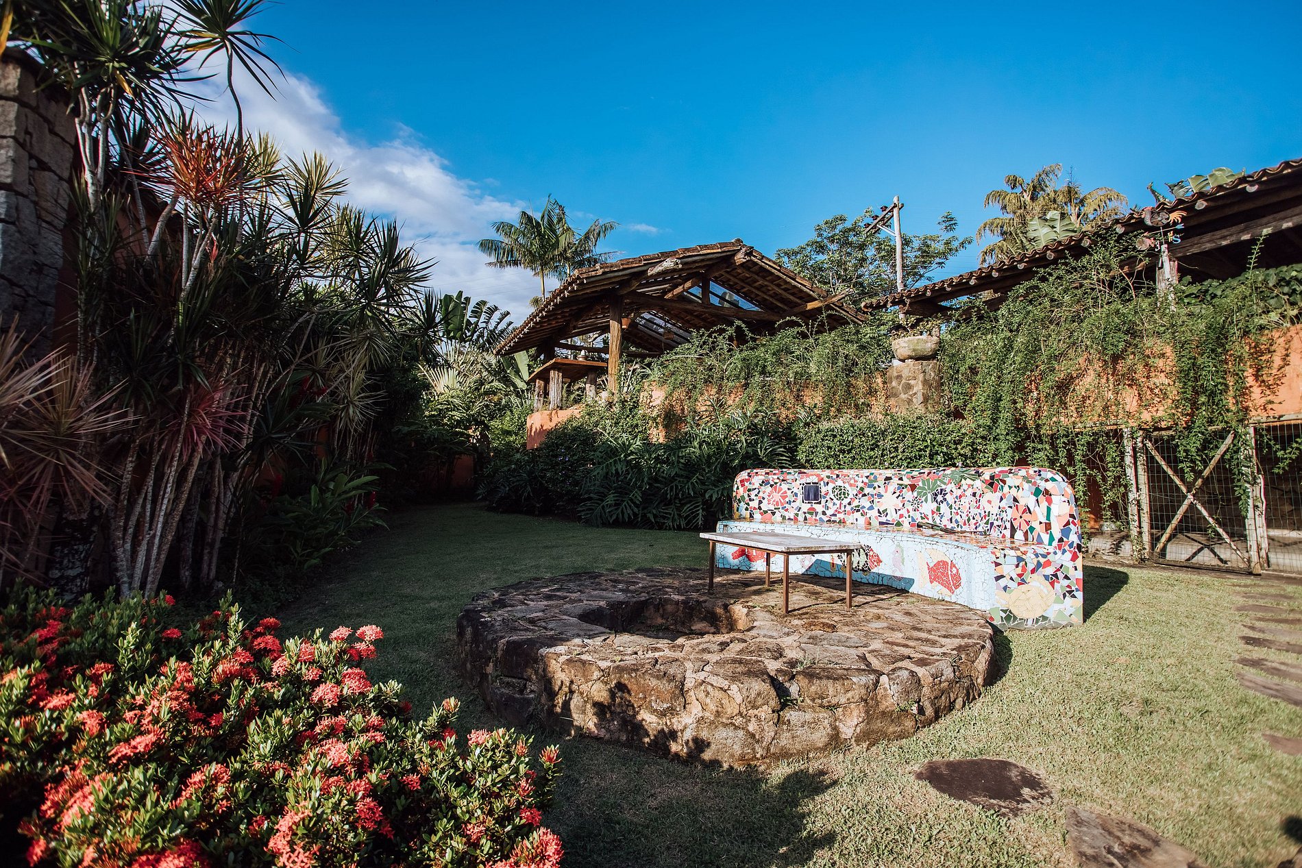 Todos os ambientes da casa são ricamente decorados e charmosos. Desde as salas internas até a enorme área externa que contempla a área de convivência, cozinha completa, mesas e bancos perfeitos para longas conversas.