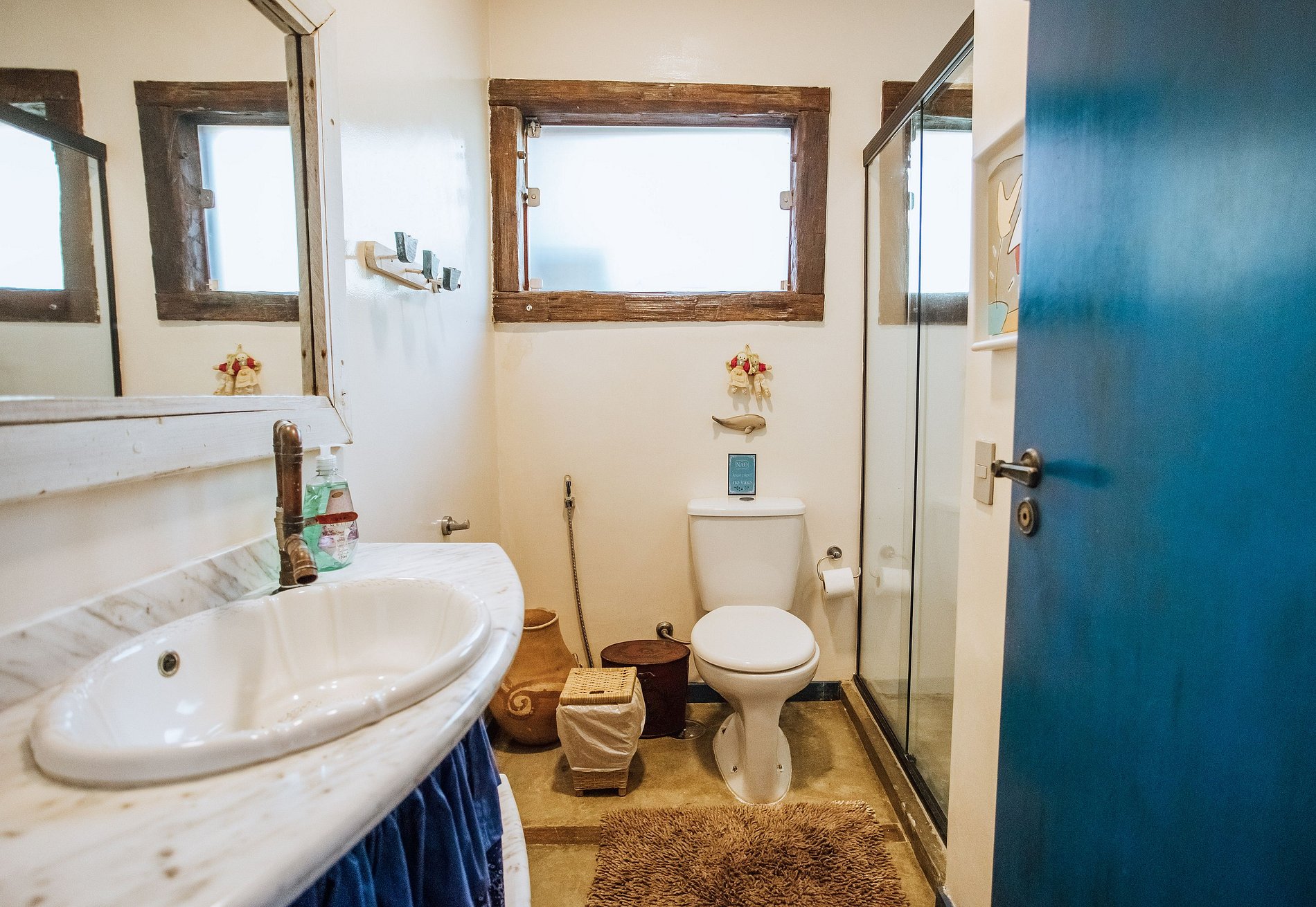 Todas as suítes possuem janelas, vista para a área externa com muito verde, banheiros arejados e rústicos com paredes de pedra, proporcionando uma conexão com a natureza até na hora do banho. Estão na seguinte configuração: