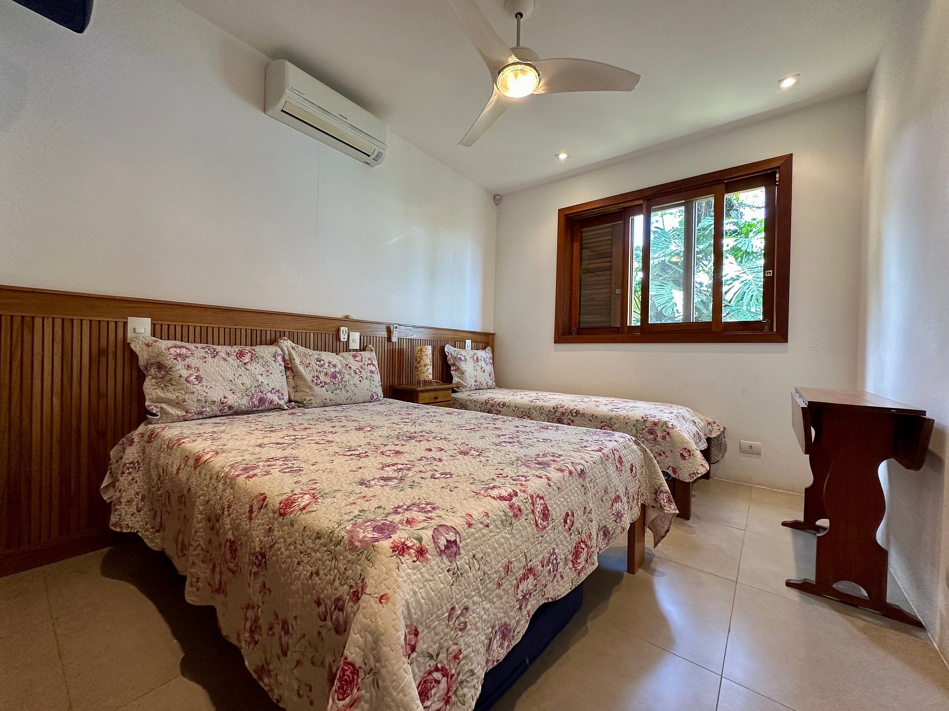 Suíte 3 (térrea) - 1 cama de casal queen com uma caminha adicional embaixo e 1 cama de solteiro;