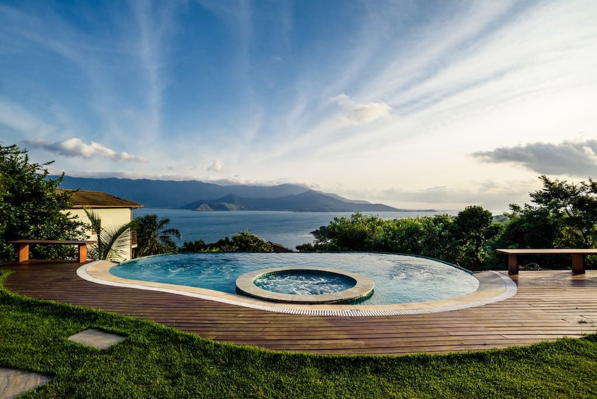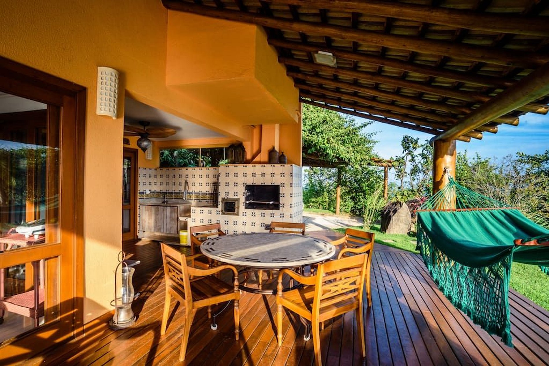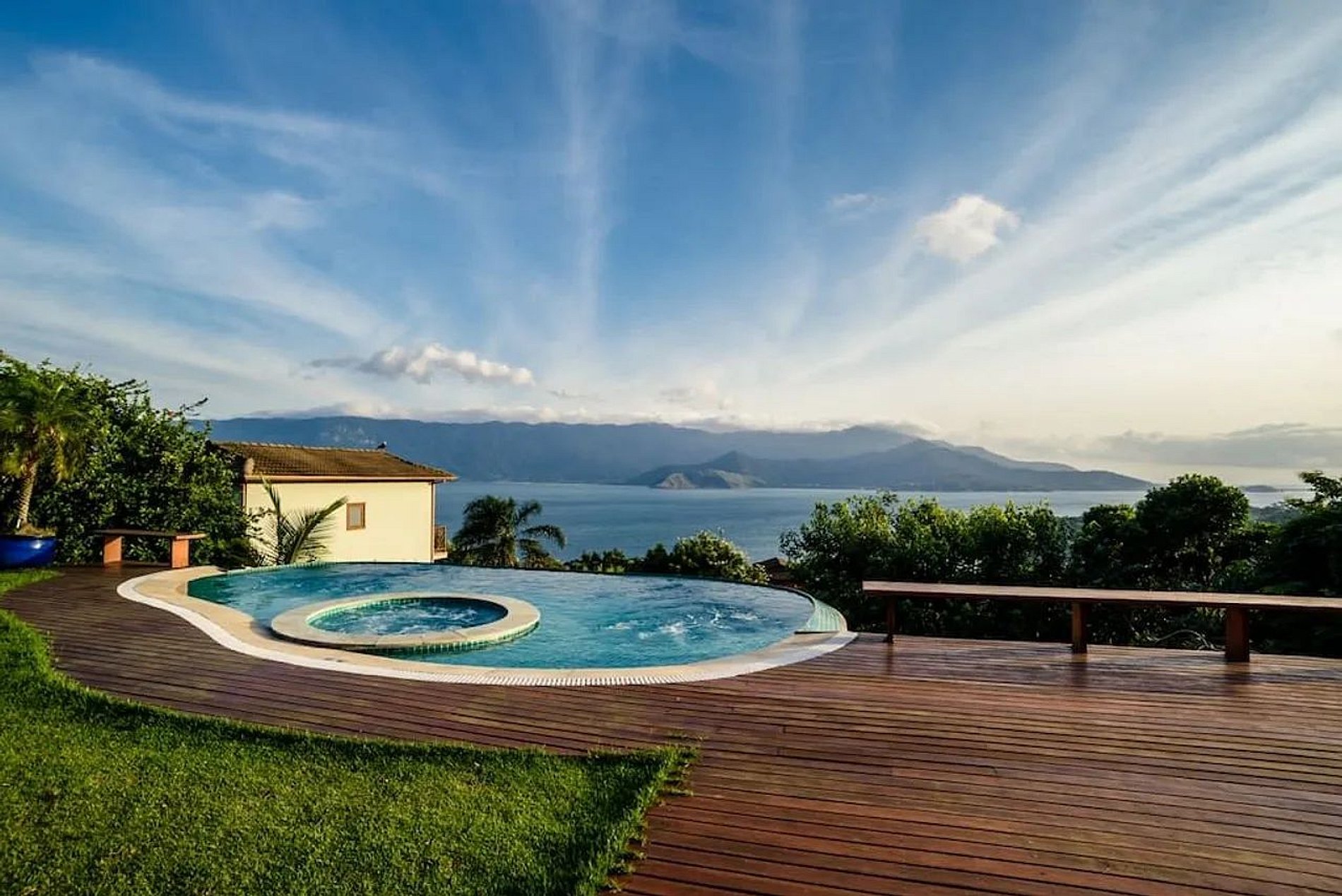 Linda casa com uma vista de tirar o fôlego e um pôr do sol deslumbrante, no luxuoso condomínio Yacamim, na Praia do Curral, a mais badalada ao Sul de Ilhabela. São 4 suítes, todas com ar-condicionado. Área externa sensacional, jardim, amplo varanda com deck de madeira, pit fire, piscina borda infinita, jacuzzi, cromoterapia e vista para o mar, espaço gourmet com churrasqueira, pia de apoio e mesa para refeições ao ar livre. Conta com salas de estar, jantar e TV, além de uma cozinha bem equipada. Dispõe de todos os acessos para TVs a cabo e ótimo sinal de Wi-fi. Garagem para 4 veículos.