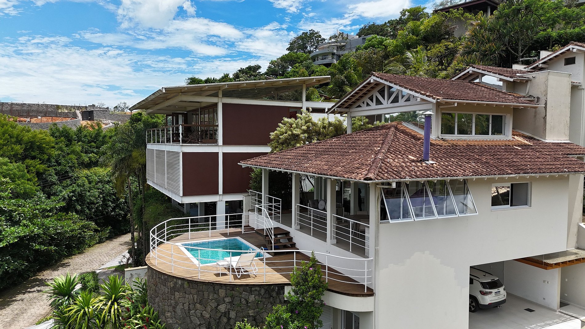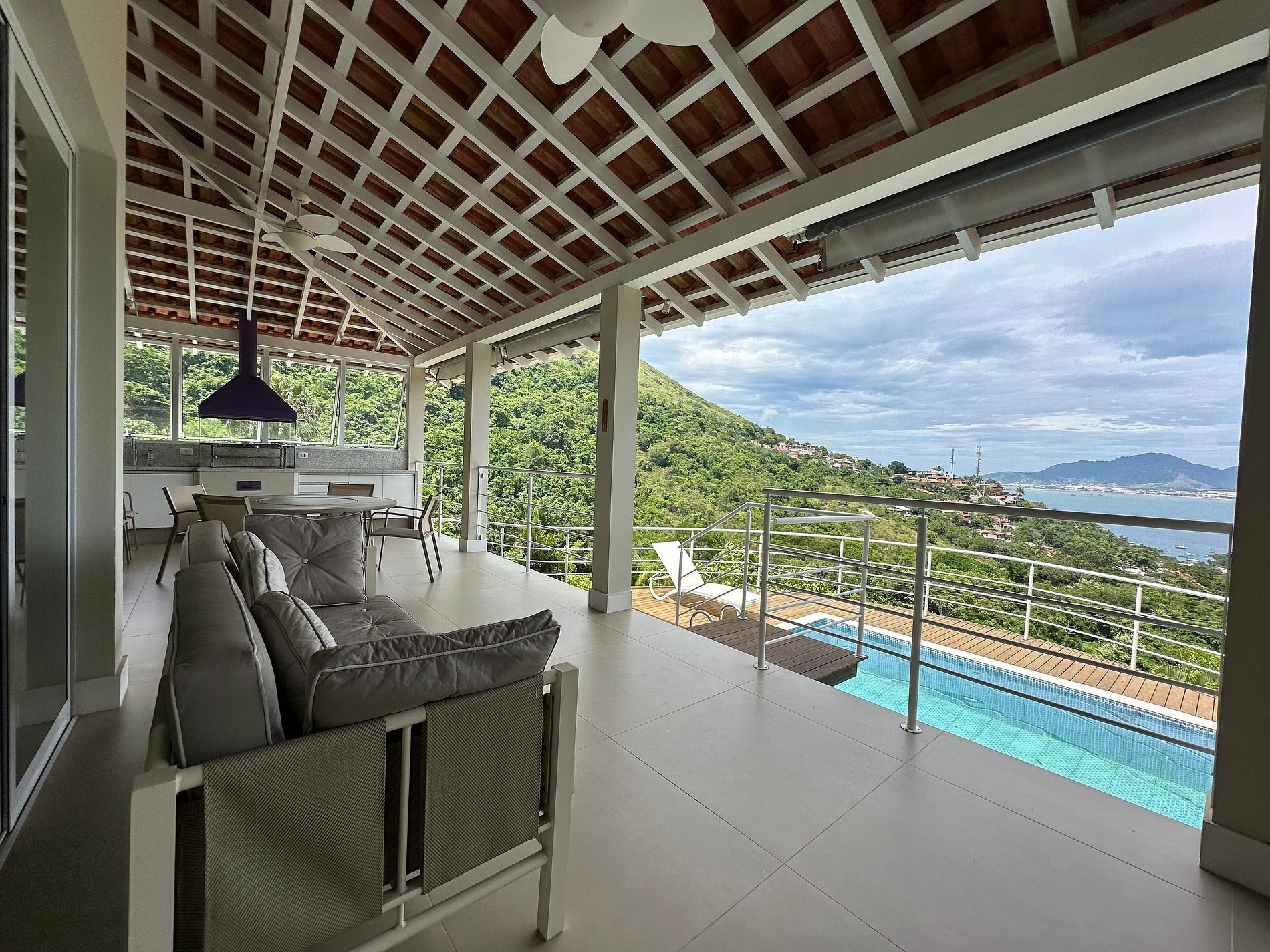 - A área de lazer é muito completa, conta com piscina com vista para o mar, varanda gourmet com churrasqueira, em um ambiente completamente integrado à casa. Espaço delicioso para confraternizar entre familiares e amigos;