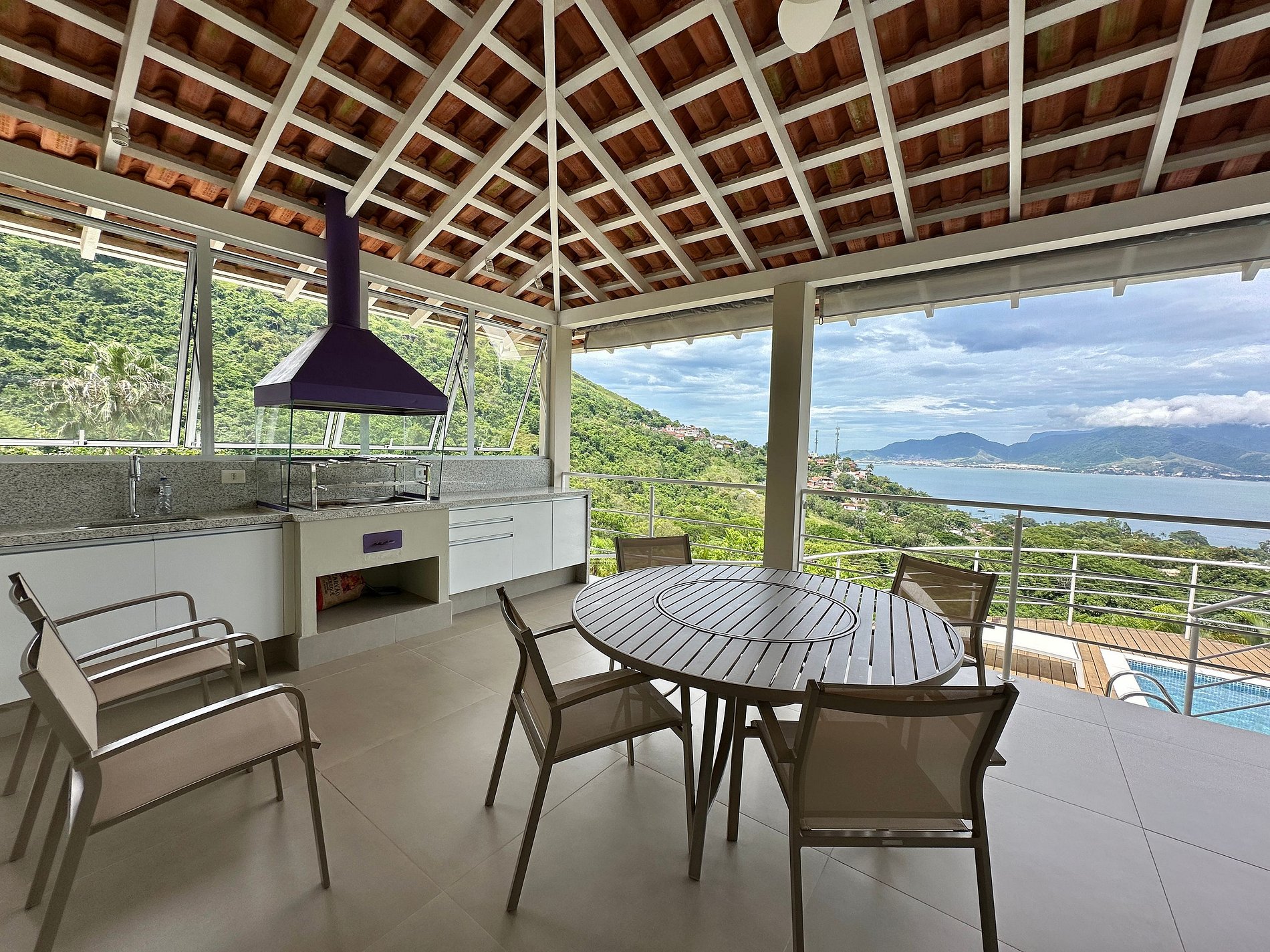 - Toda a propriedade é incrível e super bem equipada, tem tudo para uma estadia perfeita! Arquitetura integrada à natureza. As portas das salas e cozinha com abertura para área externa, integram o espaço interno e tornam o ambiente muito arejado e iluminado, além de garantir uma vista de tirar o fôlego;
