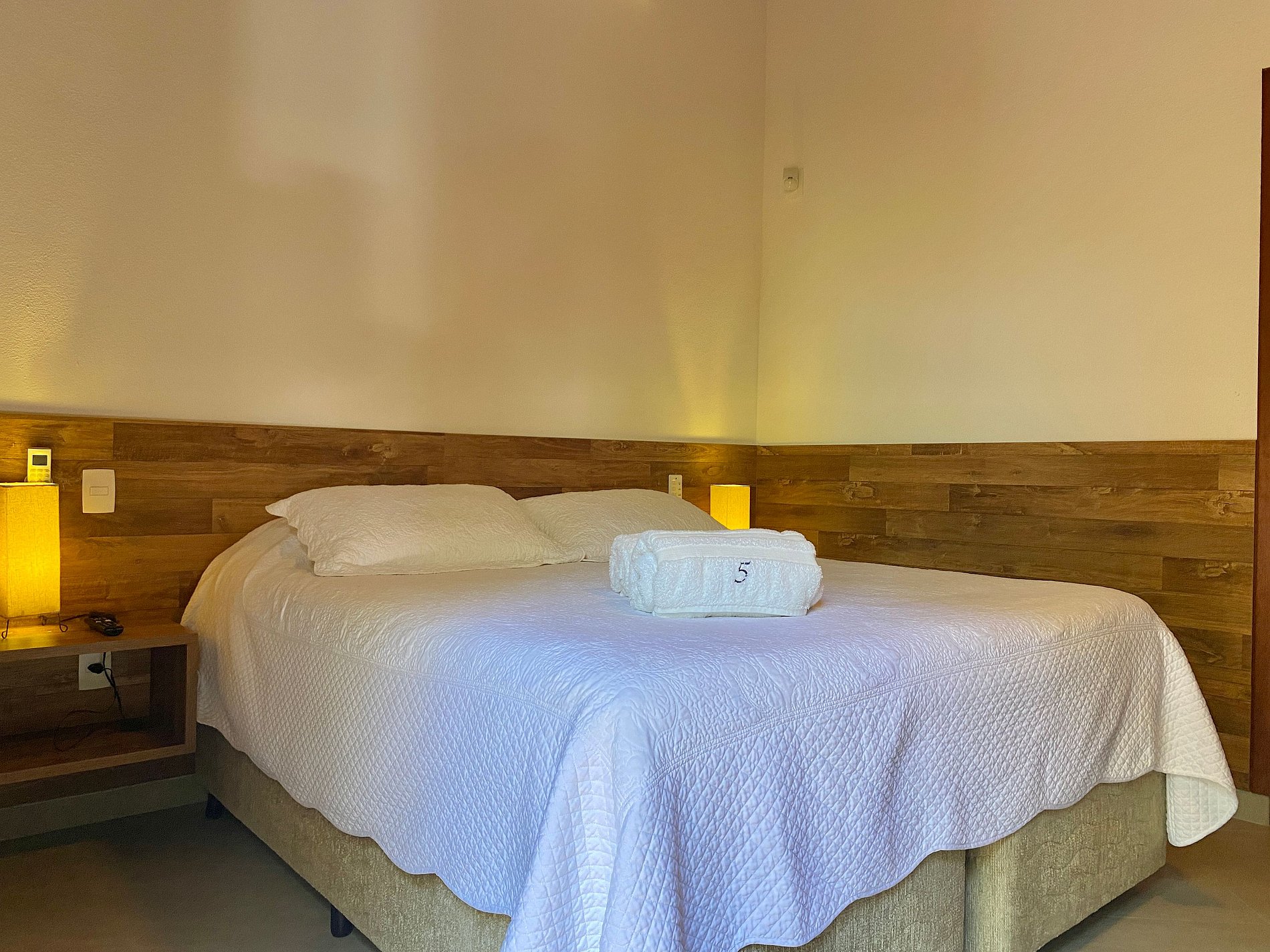 - São 2 suítes, ambas com ar-condicionado, enxoval completo, na seguinte configuração: