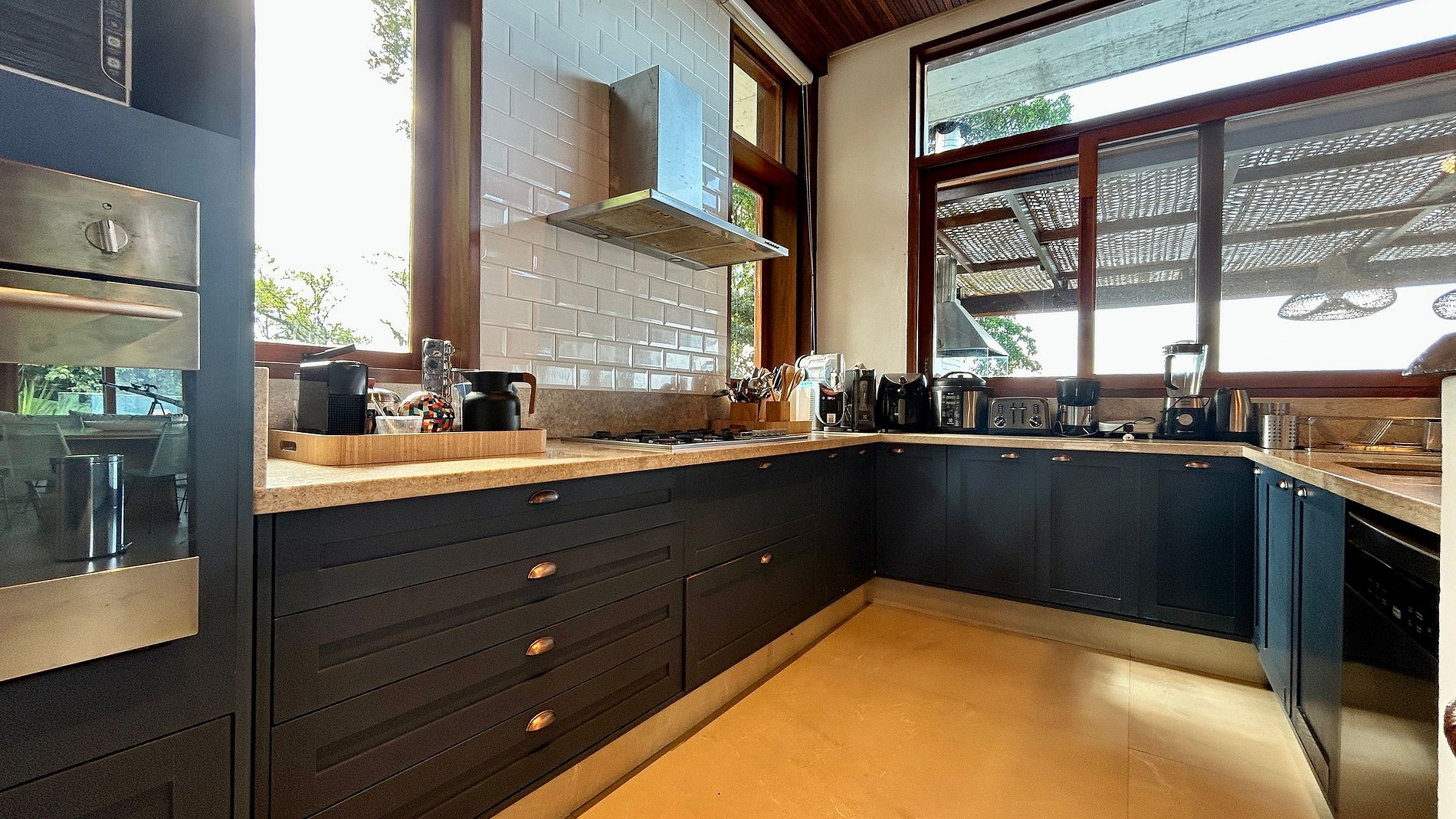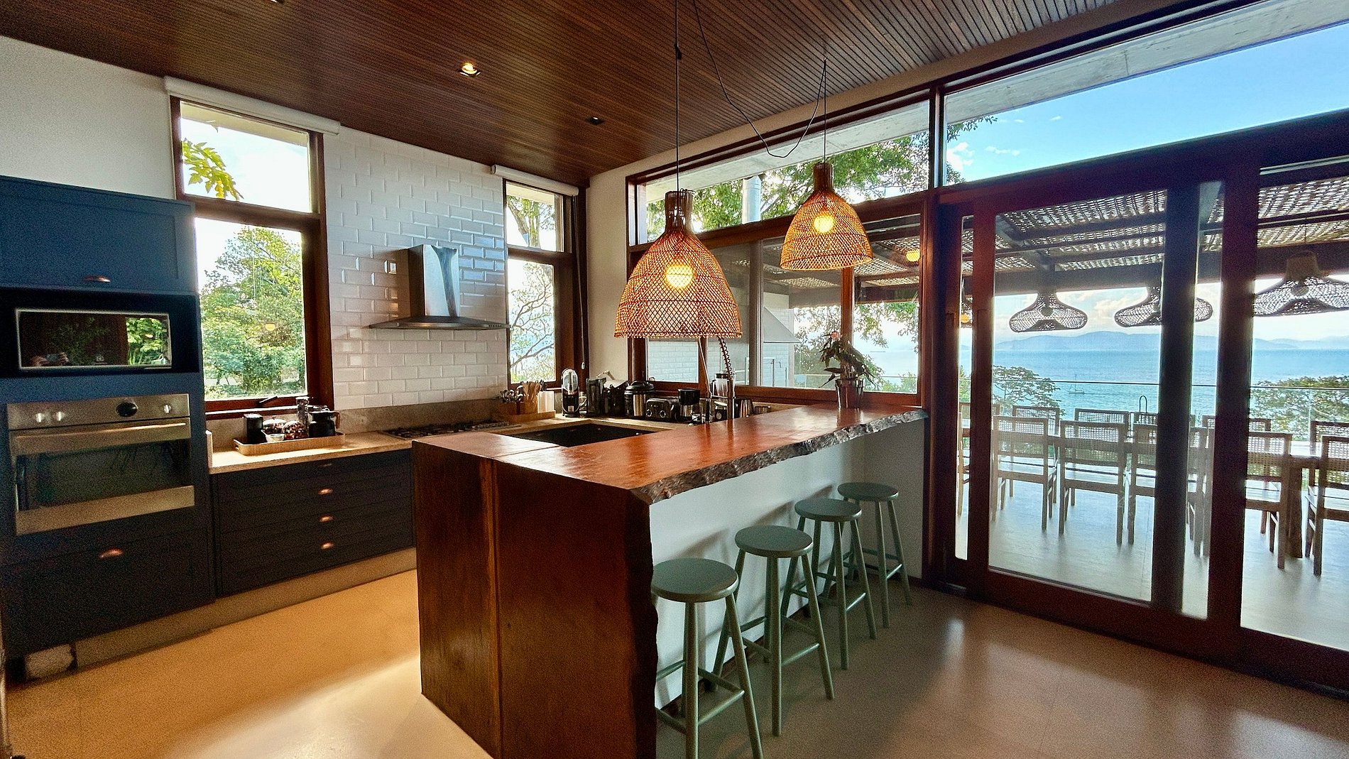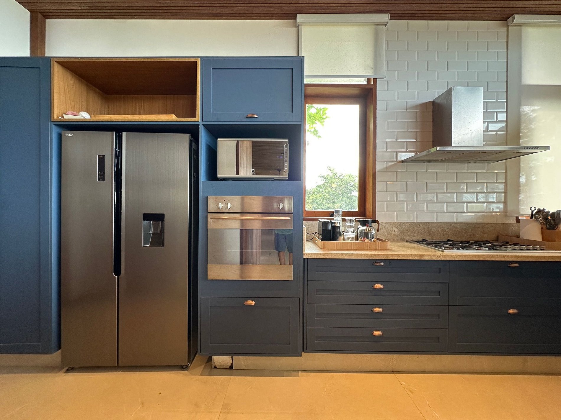 - Cozinha bem equipada com fogão, forno, geladeira, freezer, micro-ondas, filtro de água, liquidificador, torradeira, Airfryer, cafeteira, louças, máquina de gelo, talheres e todos os utensílios necessários para uma ótima estadia;