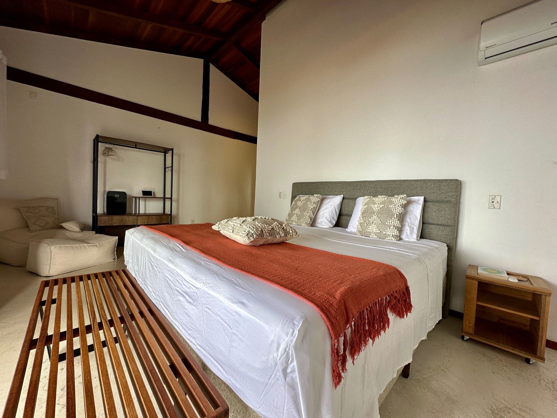 Suíte 2 (superior) - 1 cama de casal king e 1 cama de solteiro, com acesso à varanda;