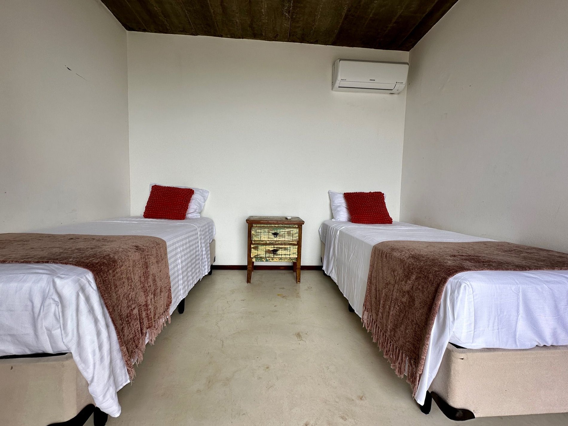 Suíte 4 (térrea) - 2 camas de solteiro, com acesso à varanda e à uma cama de para massagem ao ar-livre;