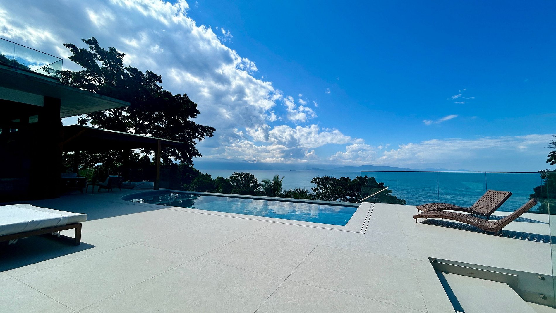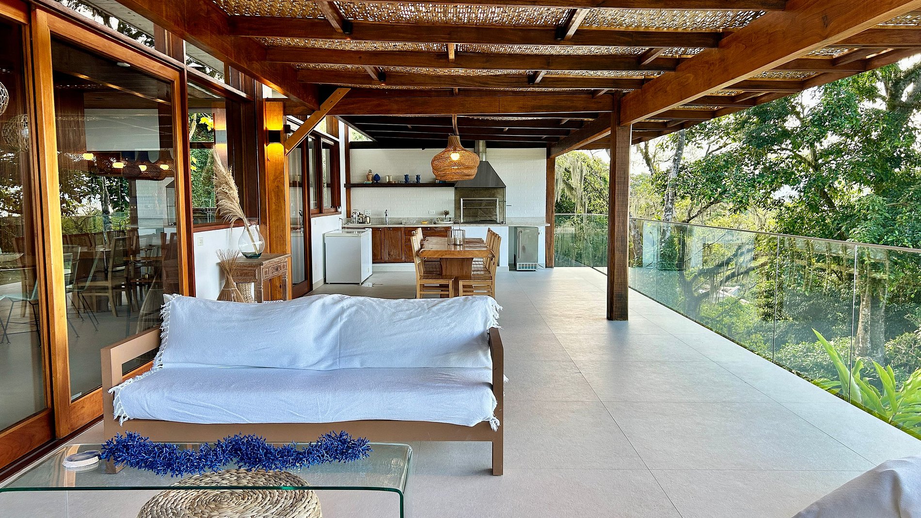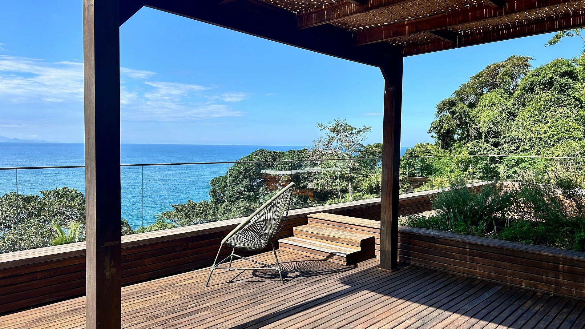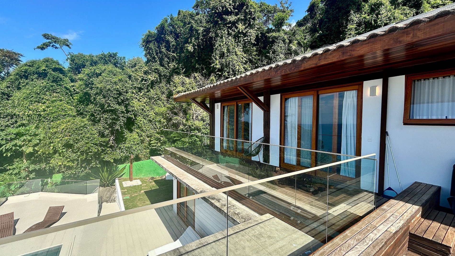 Experiência inesquecível no Norte de Ilhabela. Casa moderna, confortável, com vista panorâmica de todos os cômodos, no condomínio Praia de Pacuíba, que tem acesso direto e privativo à praia. Para até 10 pessoas. São 4 suítes com ar-condicionado. Integrada à natureza, área interna com salas de TV, estar, jantar e cozinha em conceito aberto. Smart TV e Wi-fi. Área externa, com ampla varanda gourmet, piscina aquecida com borda infinita, sauna, jacuzzi aquecida com deck de madeira. É pet friendly!